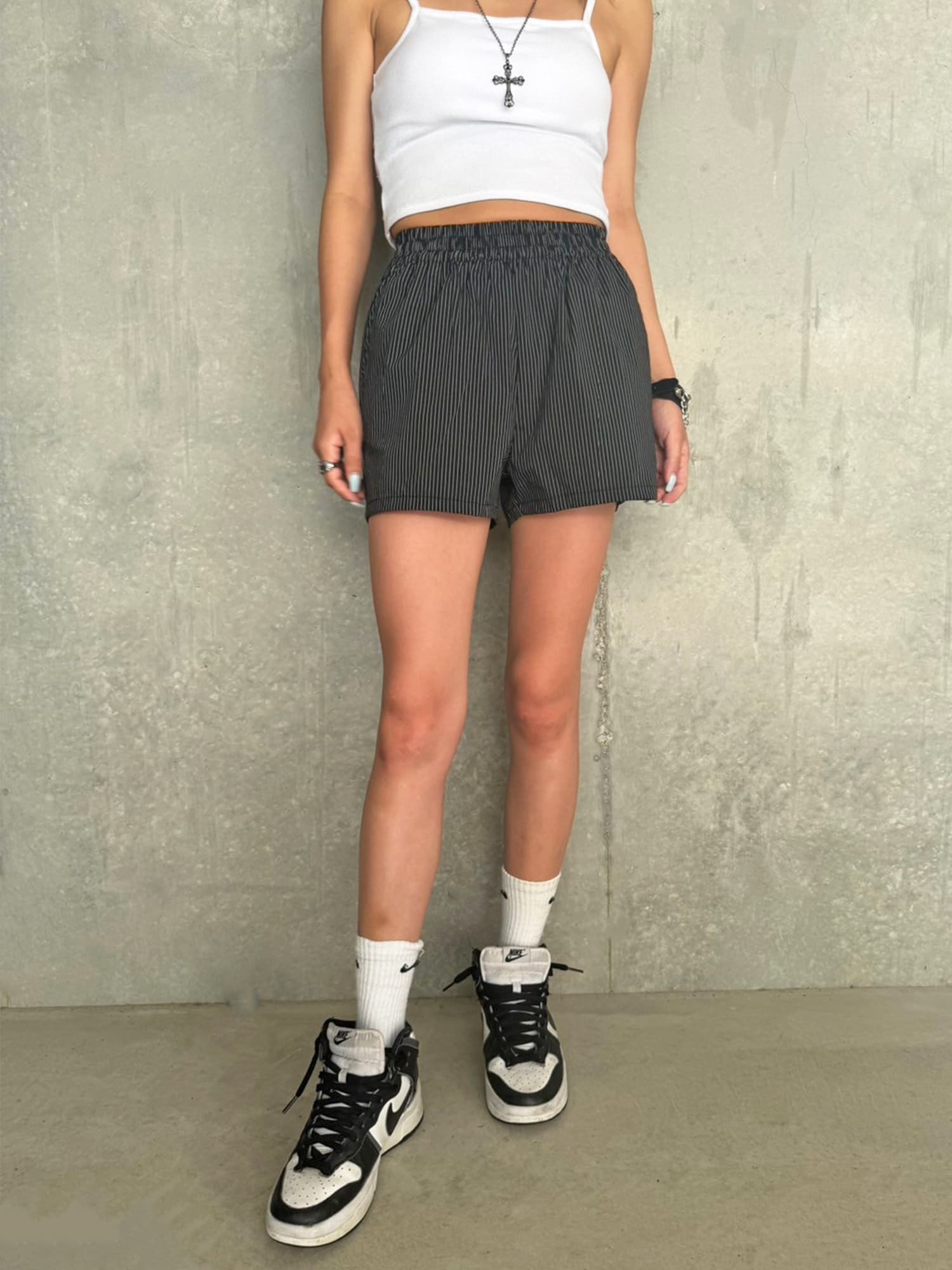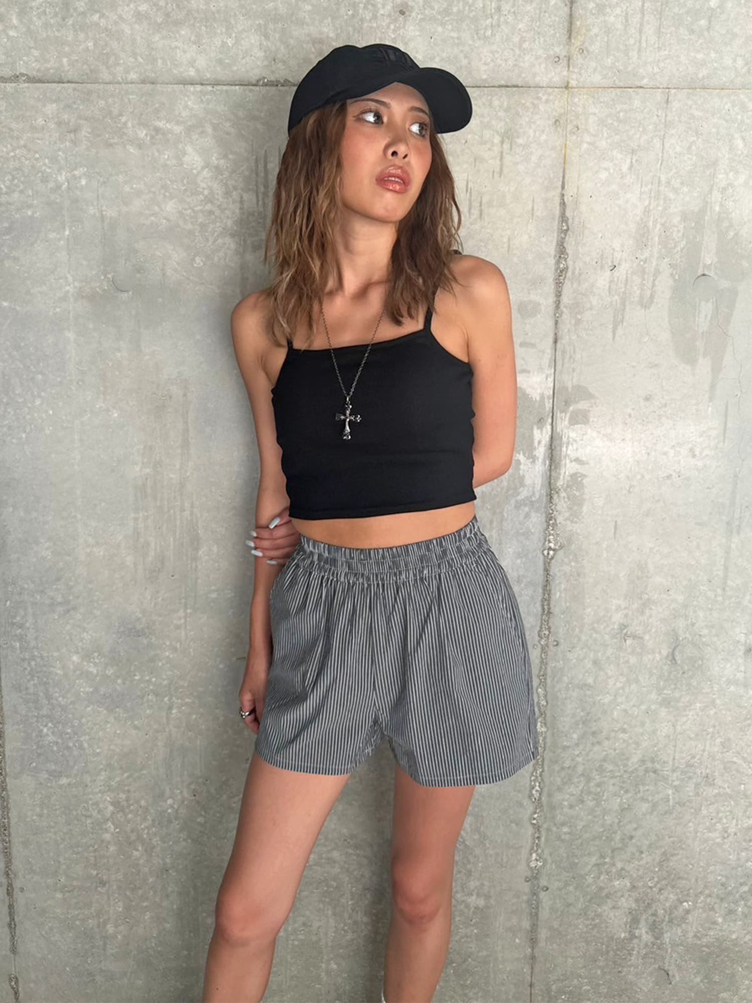 細めのピッチのストライプ柄を選んでいるので主張が強すぎず普段使いしやすいです。