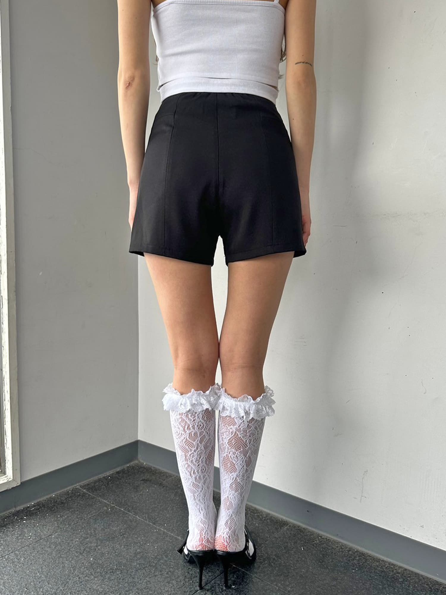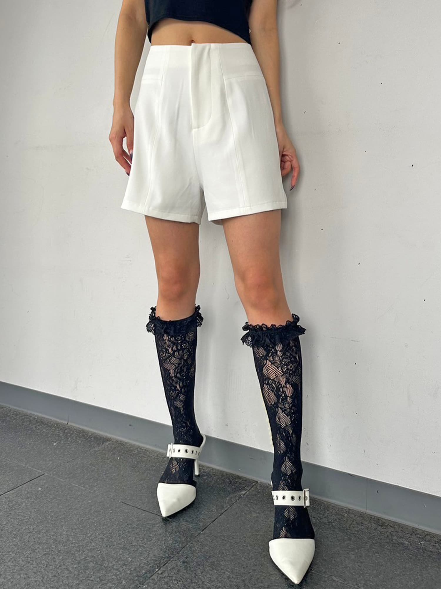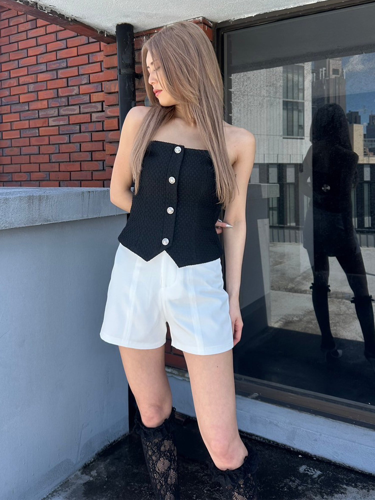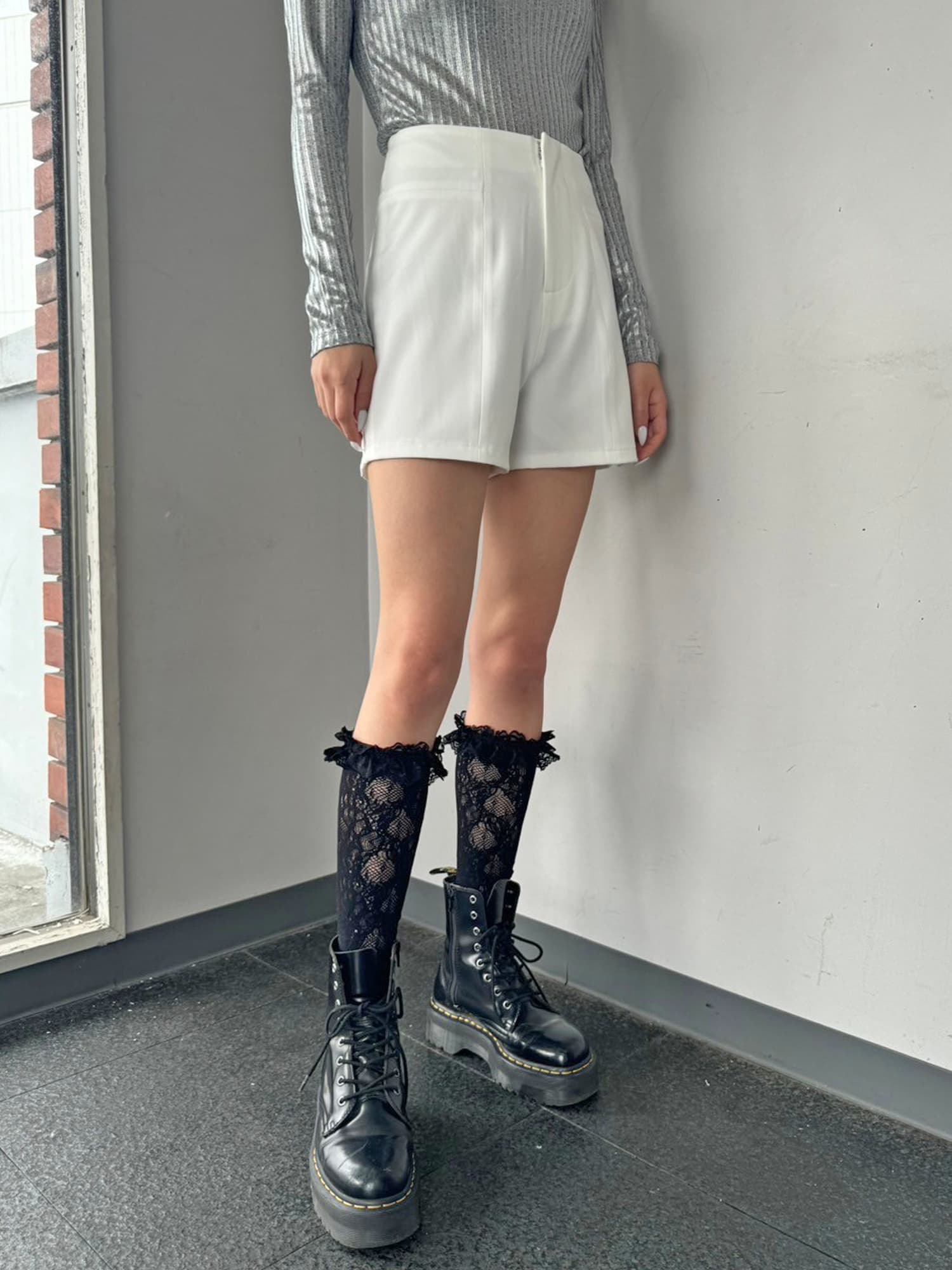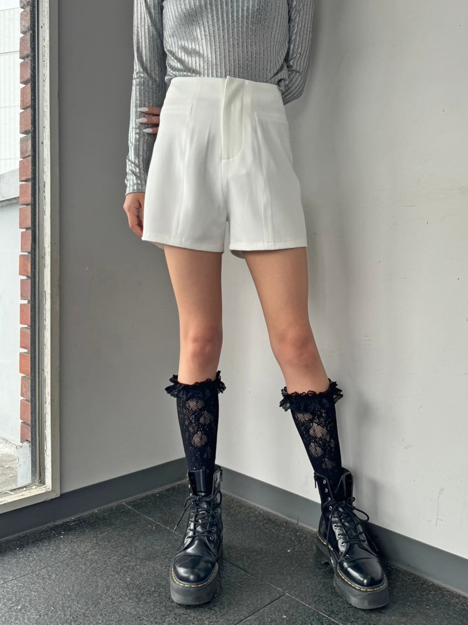素材感が際立つシンプルなデザインのハイウエストショートパンツ。