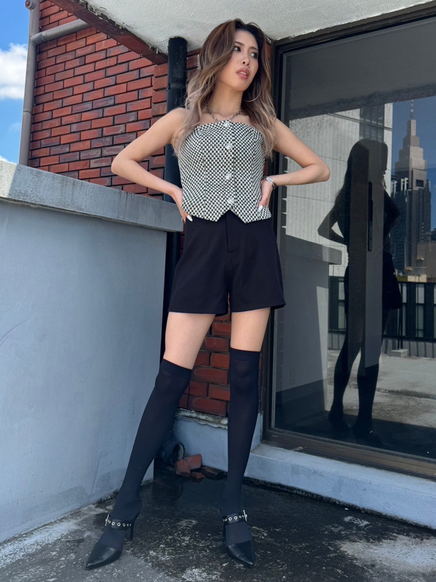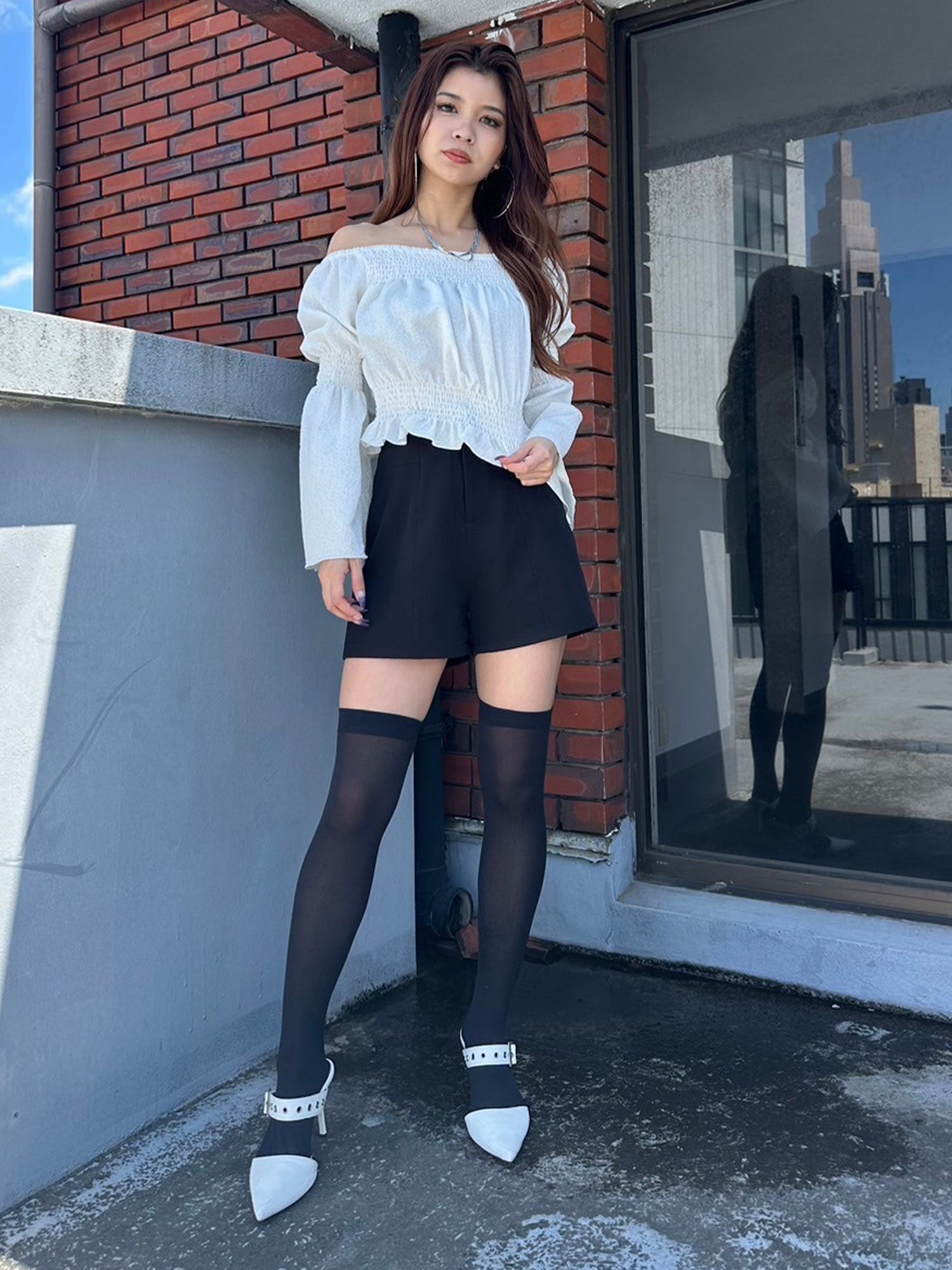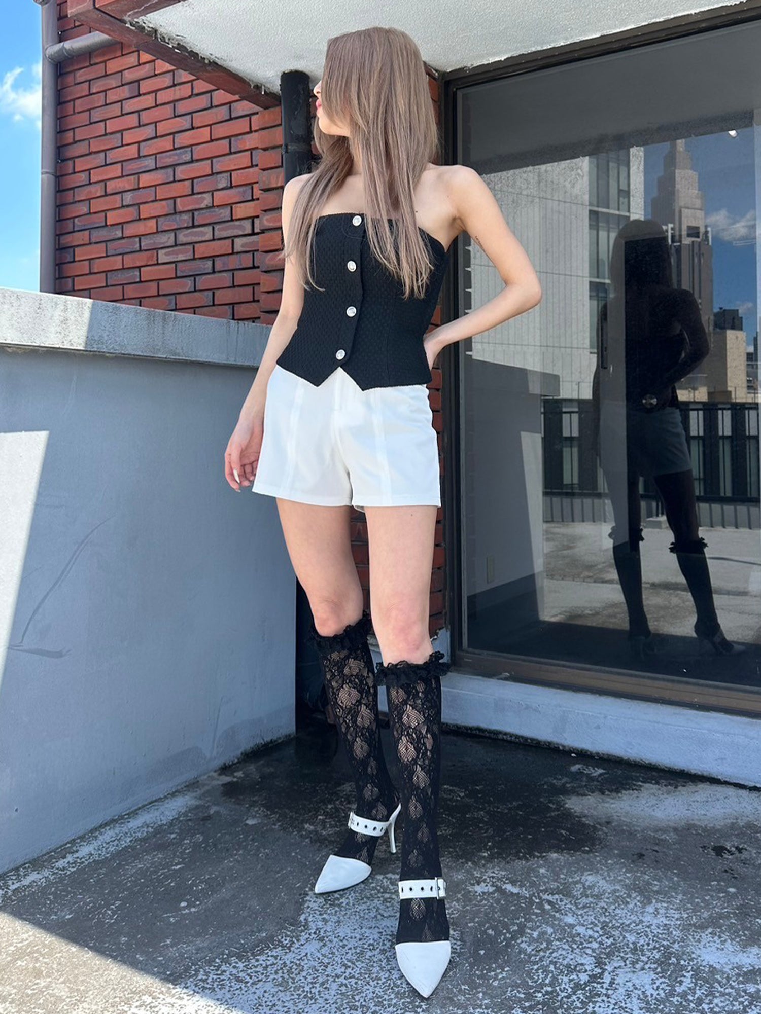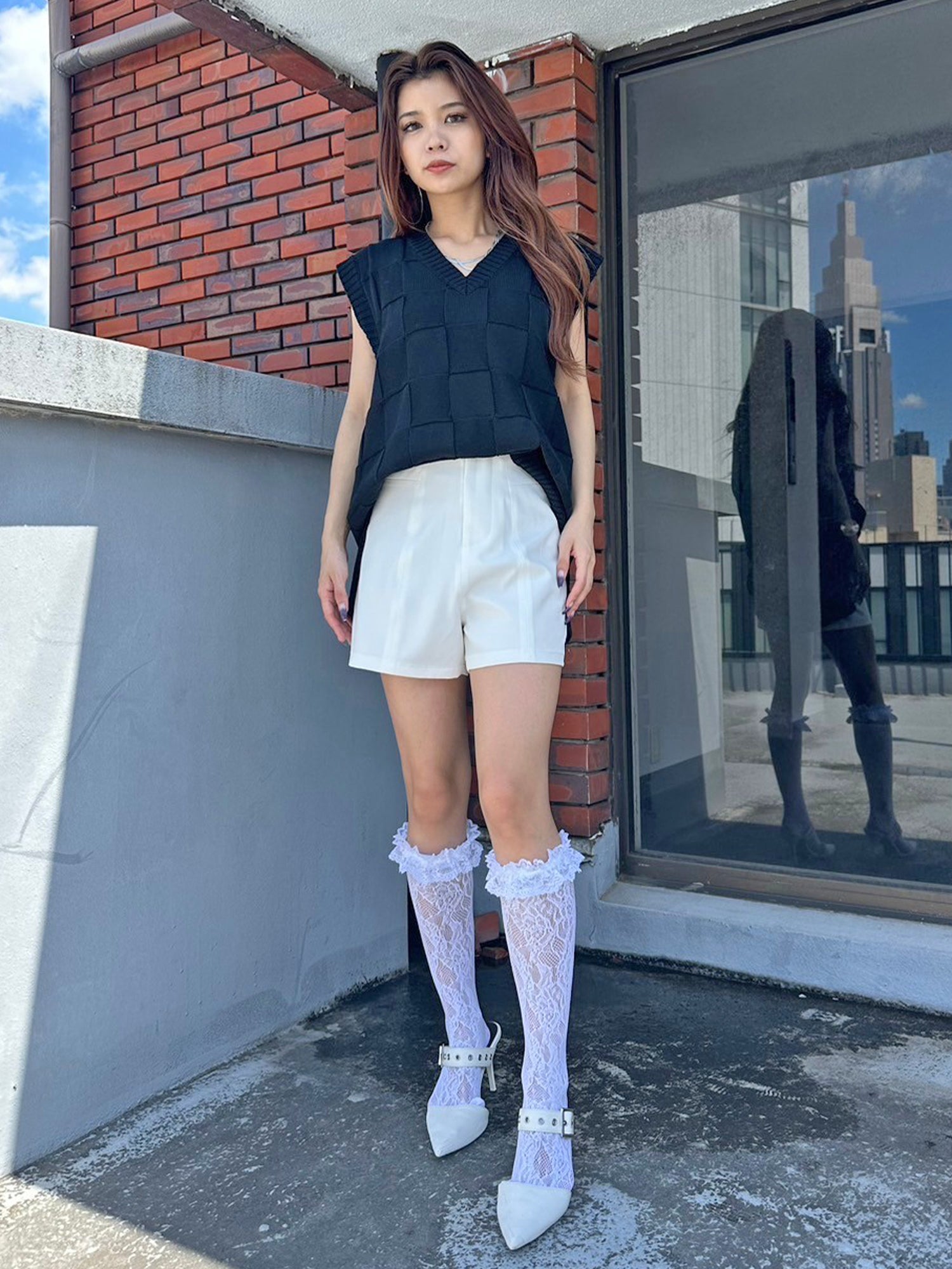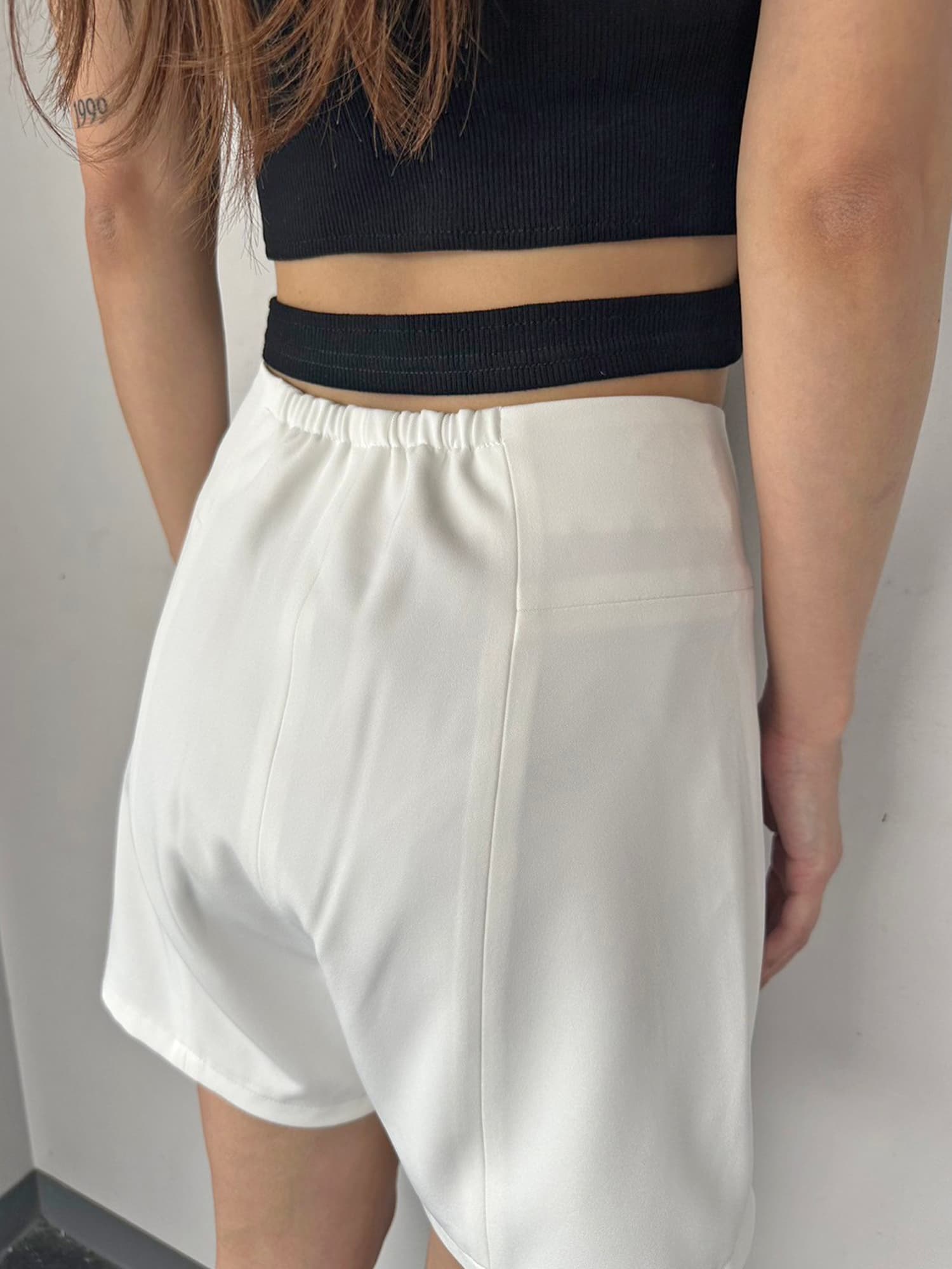 素材感が際立つシンプルなデザインのハイウエストショートパンツ。