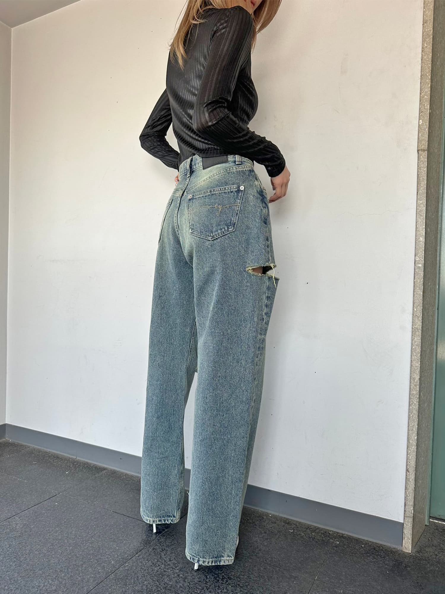 ずるっとルーズなストレートワイドシルエットでトレンド要素をプラスし、