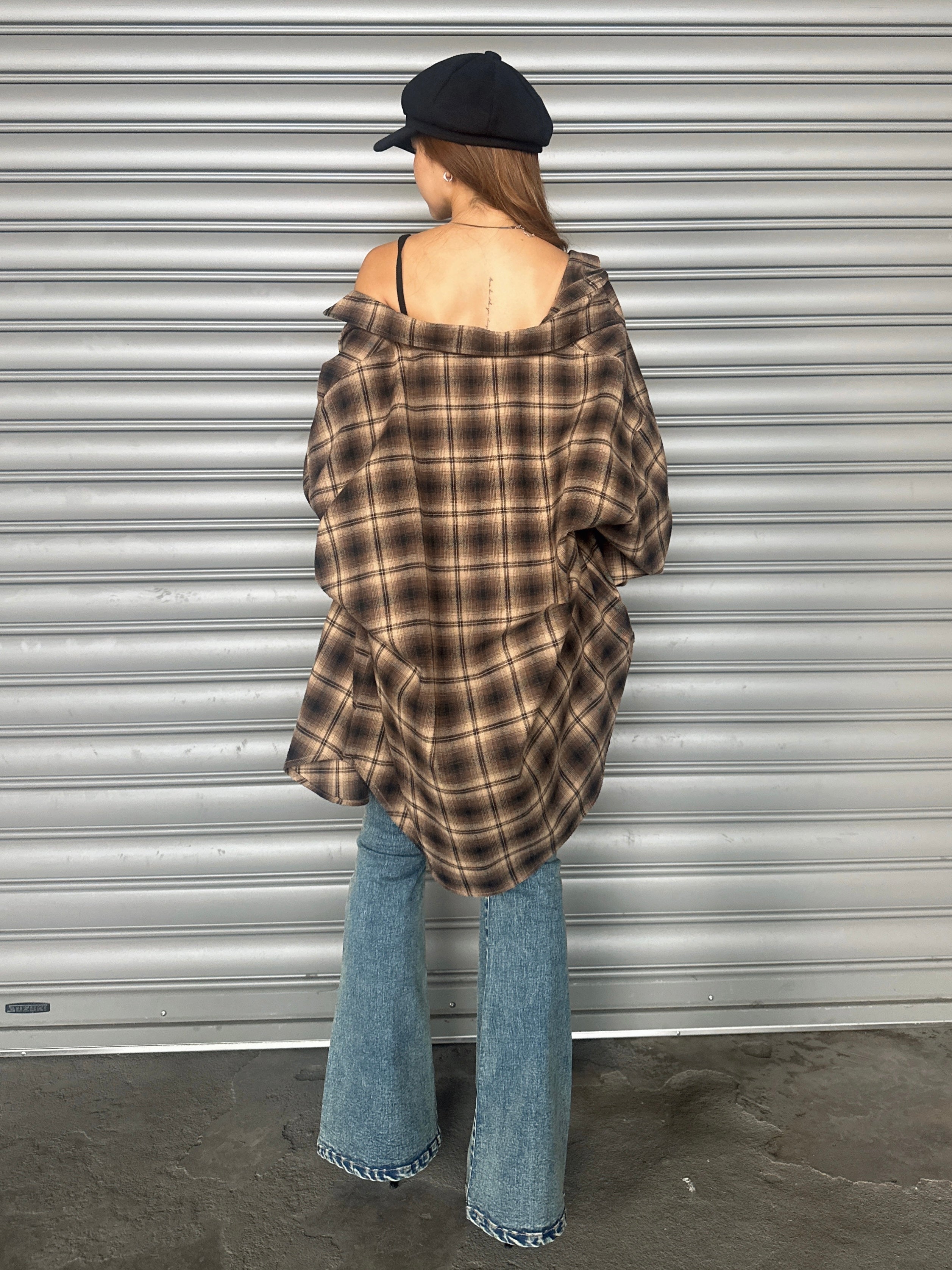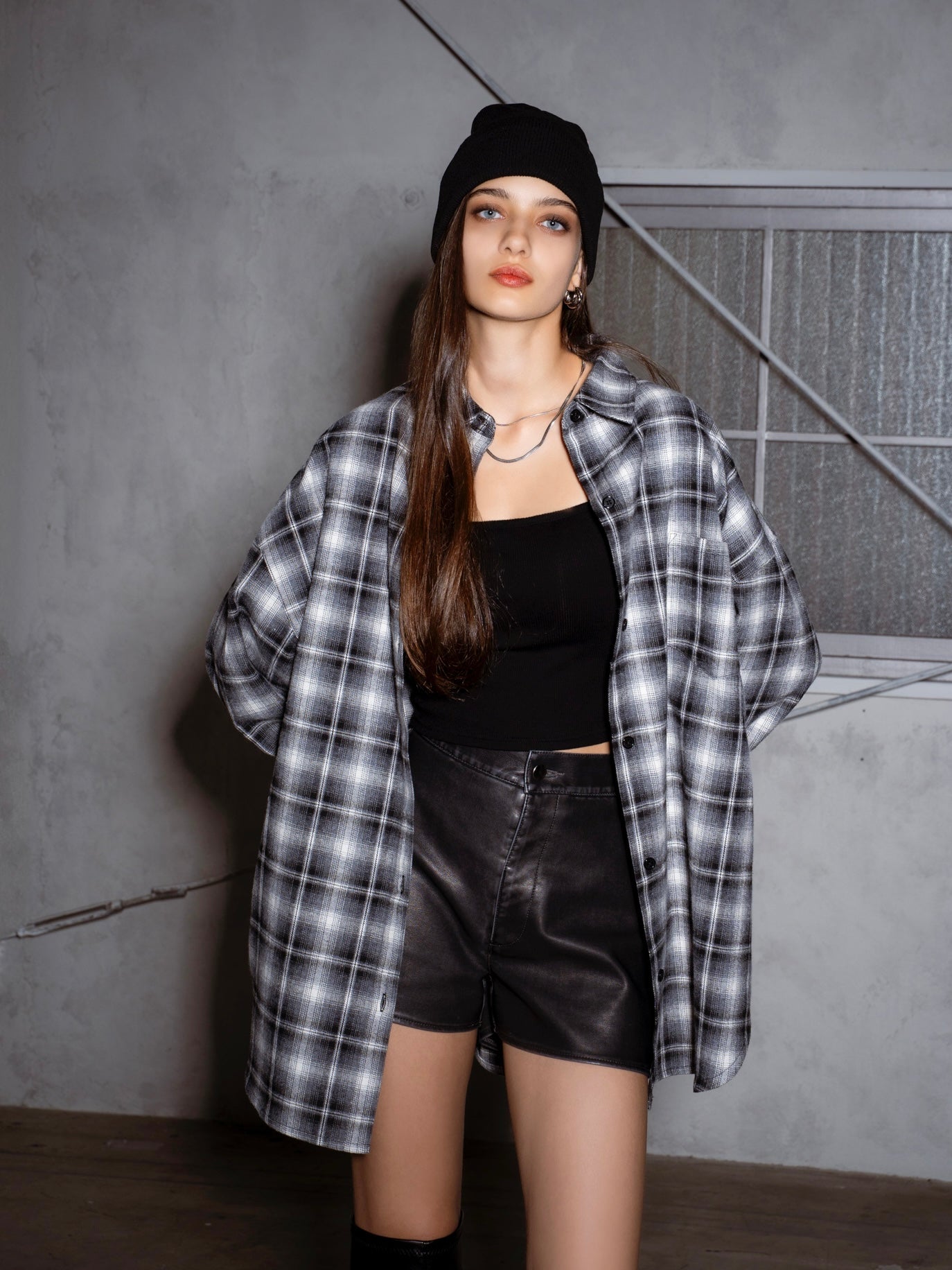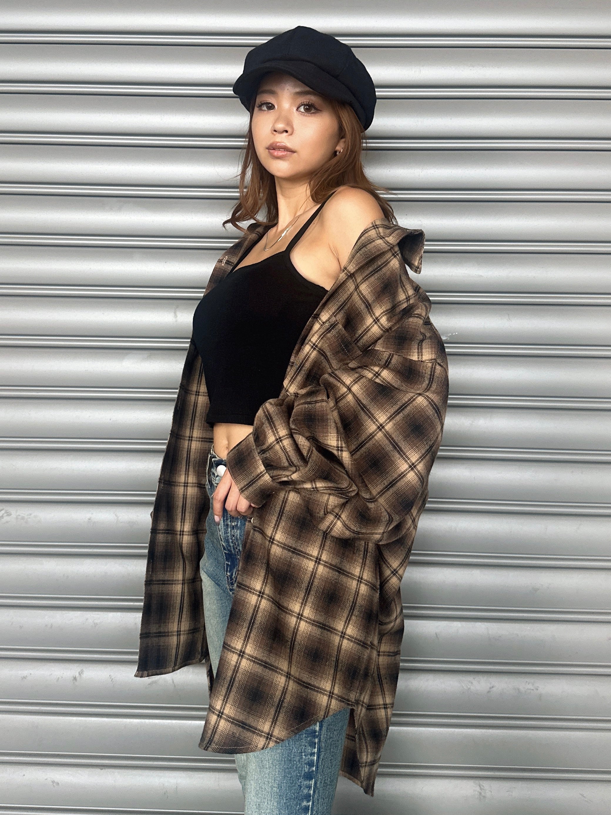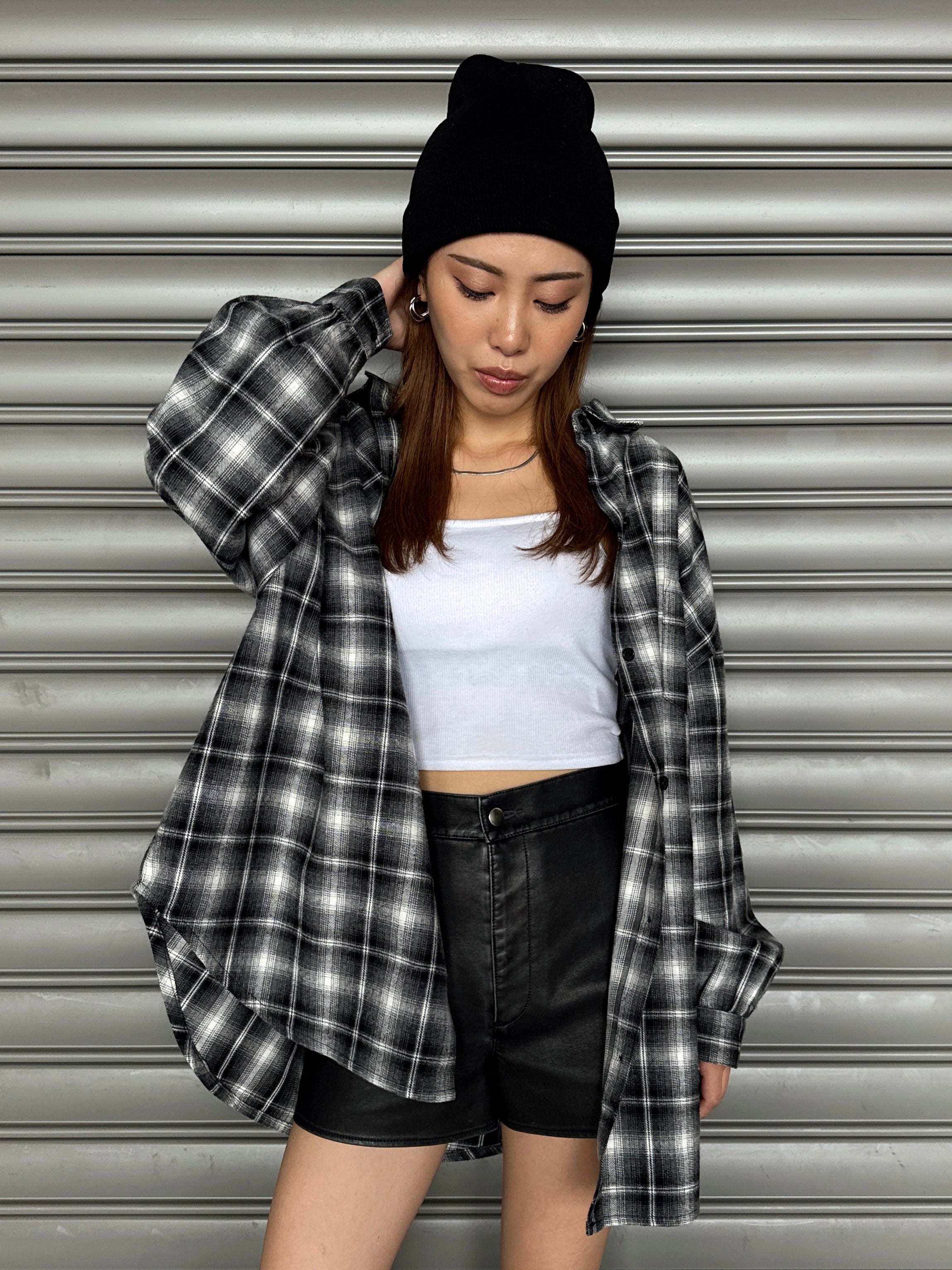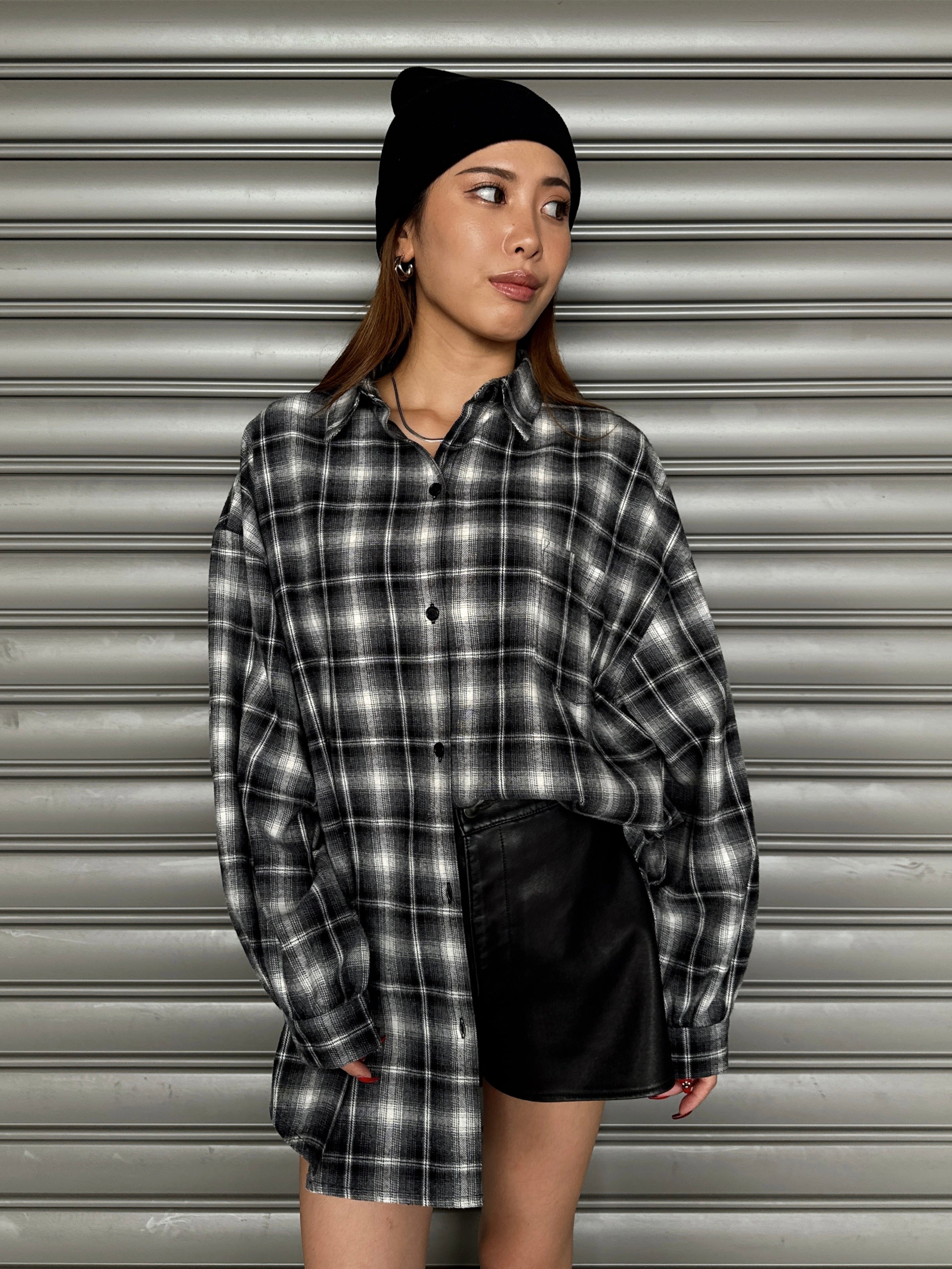 商品説明 ヒップまでしっかり隠れるBIGシルエットが今っぽいチェック柄シャツ。
