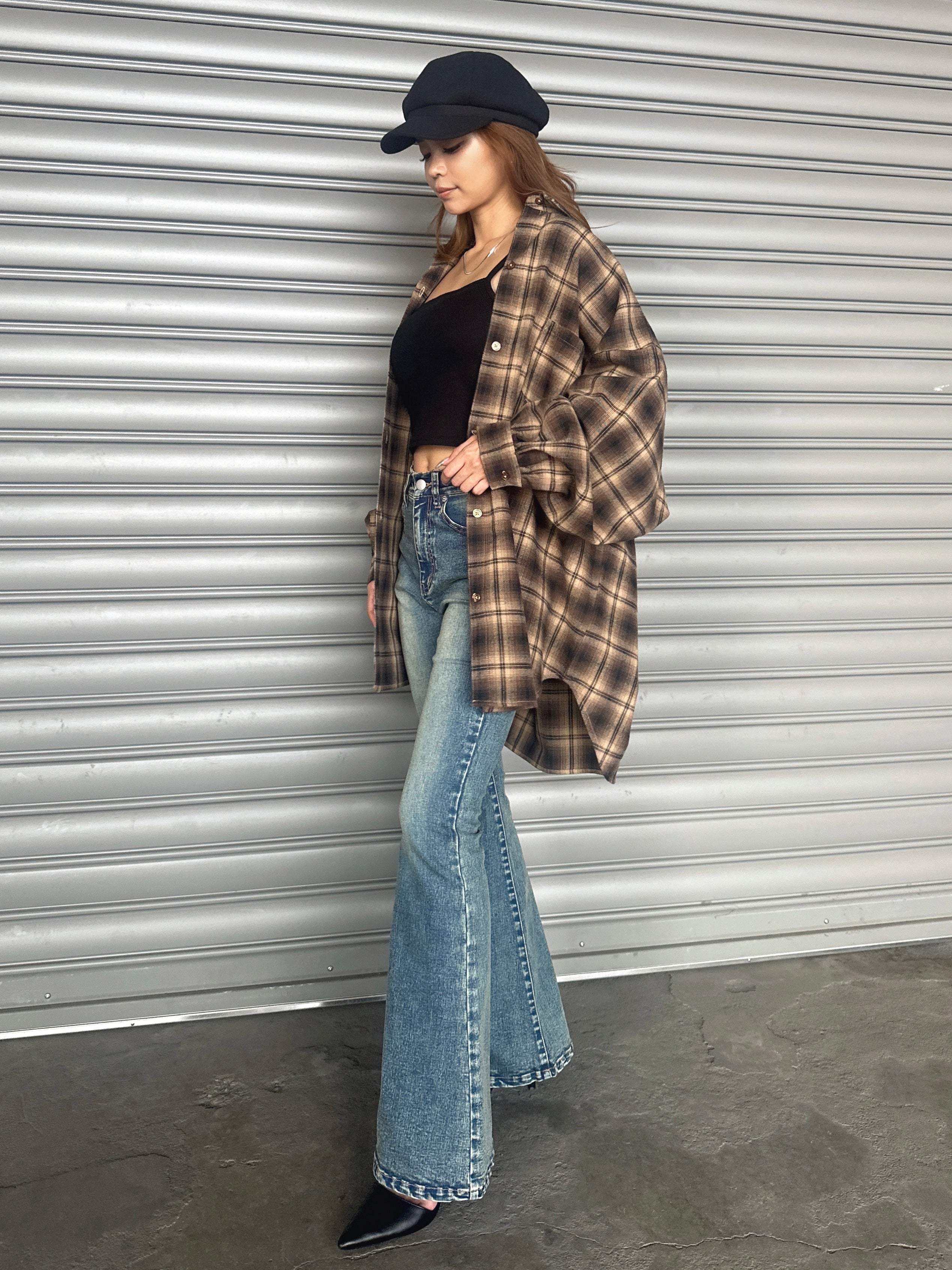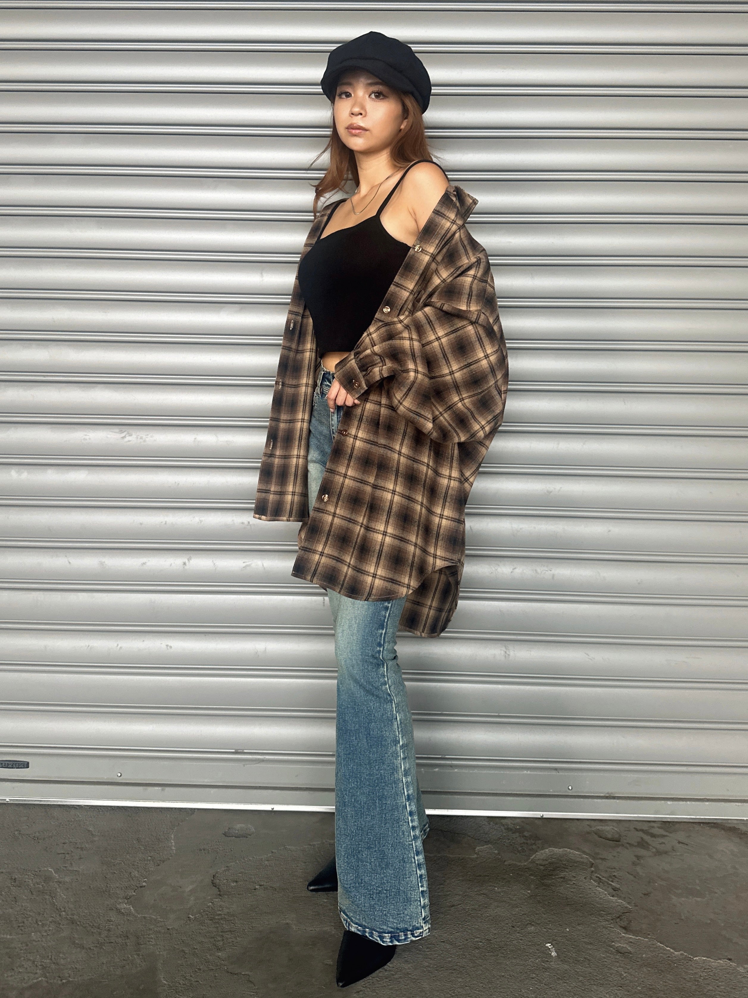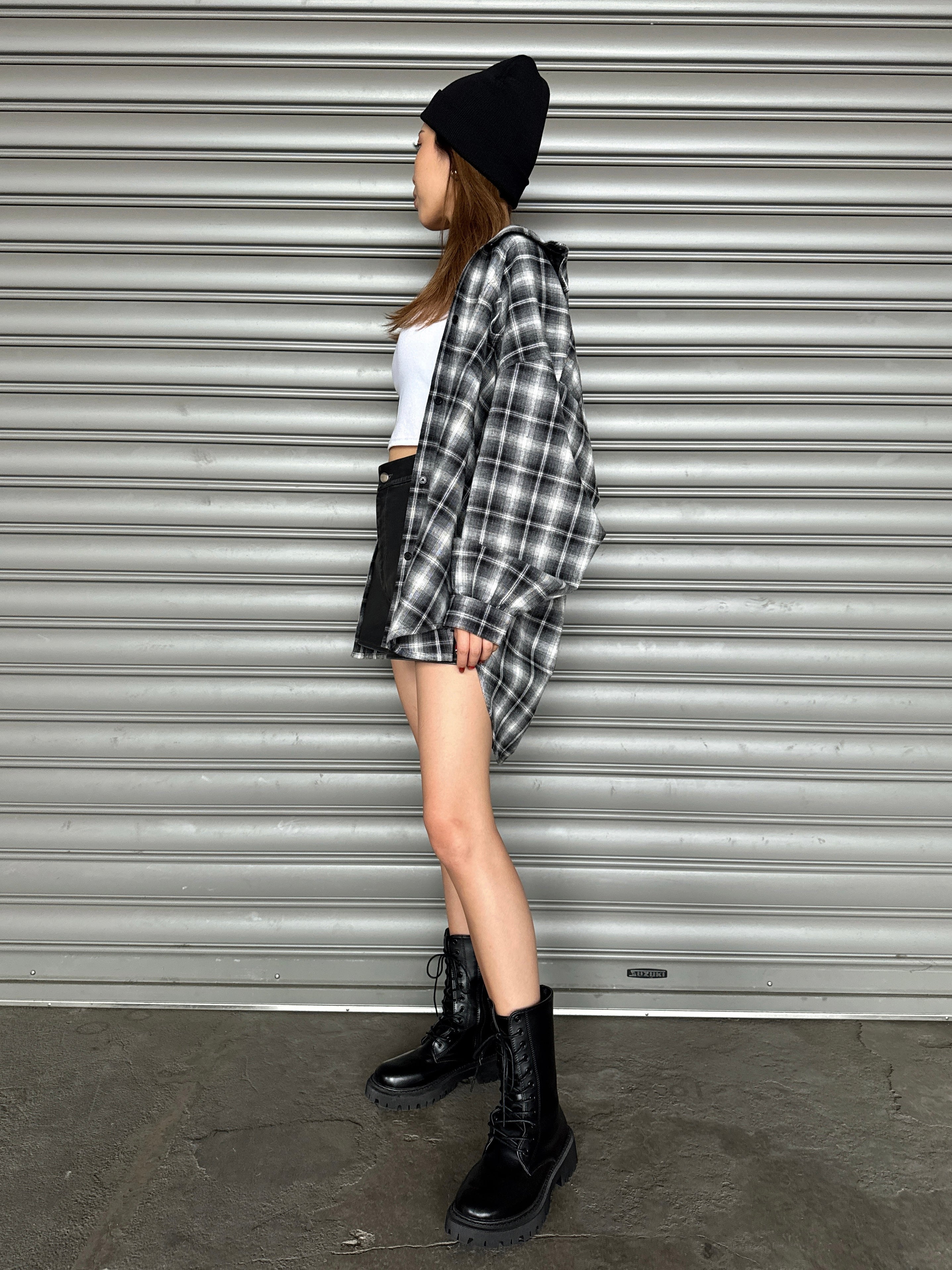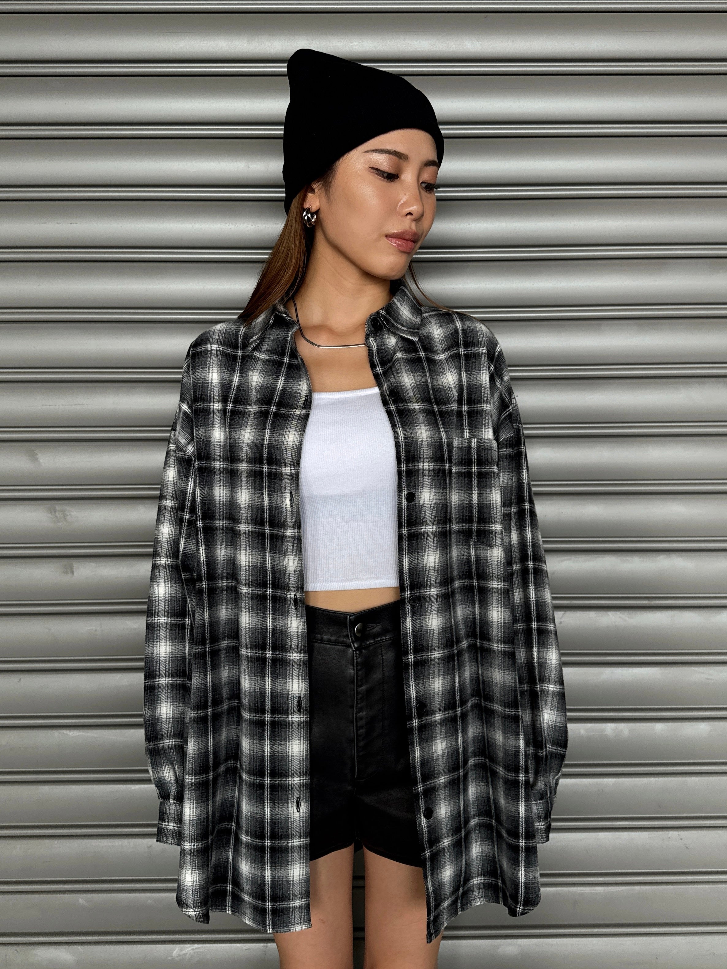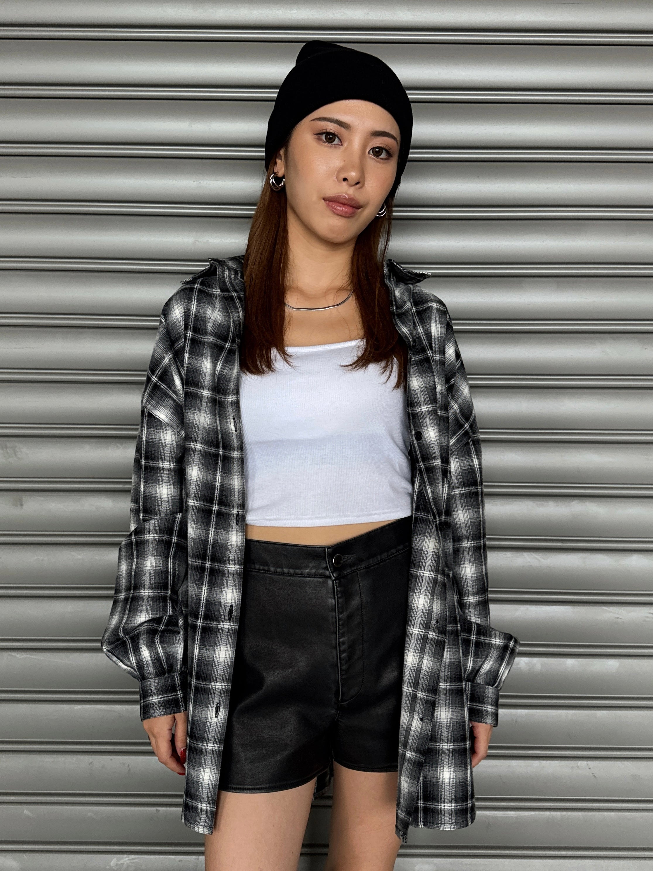 商品説明 ヒップまでしっかり隠れるBIGシルエットが今っぽいチェック柄シャツ。