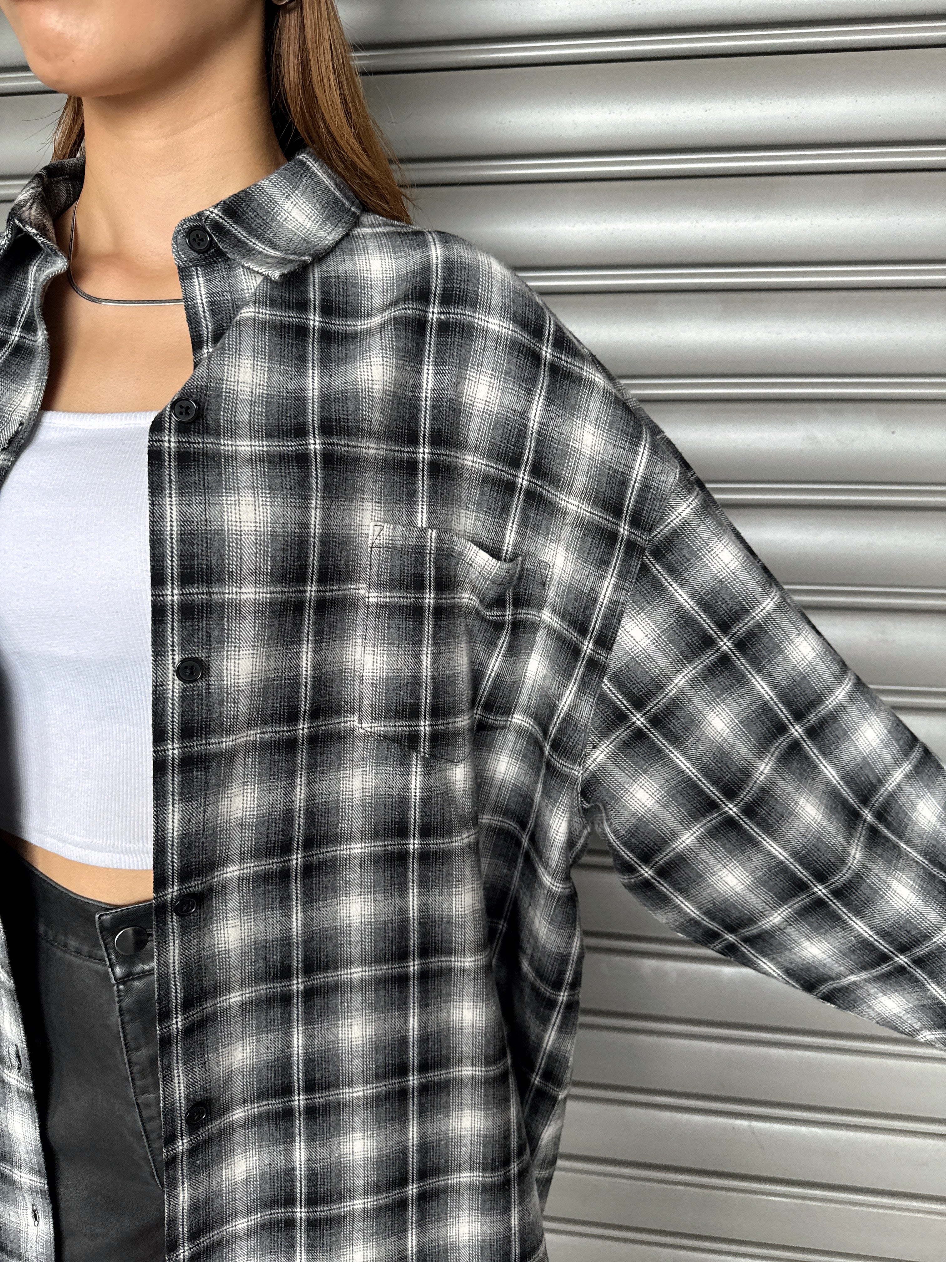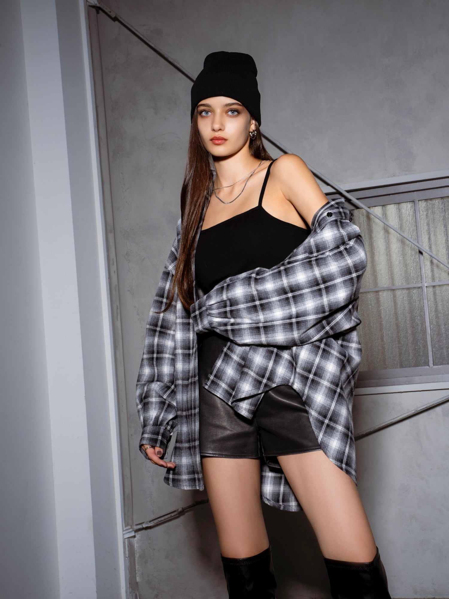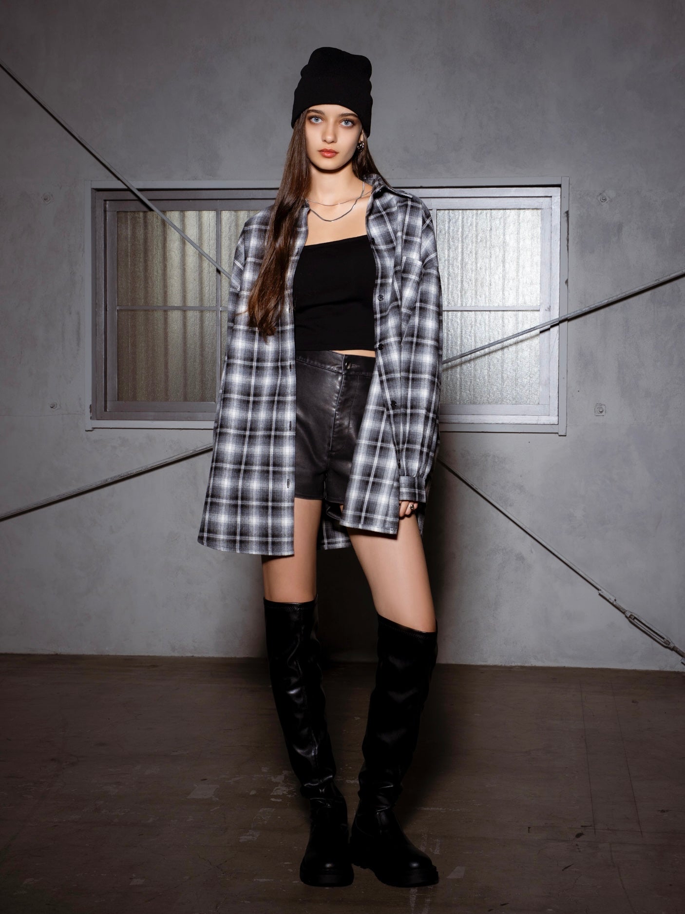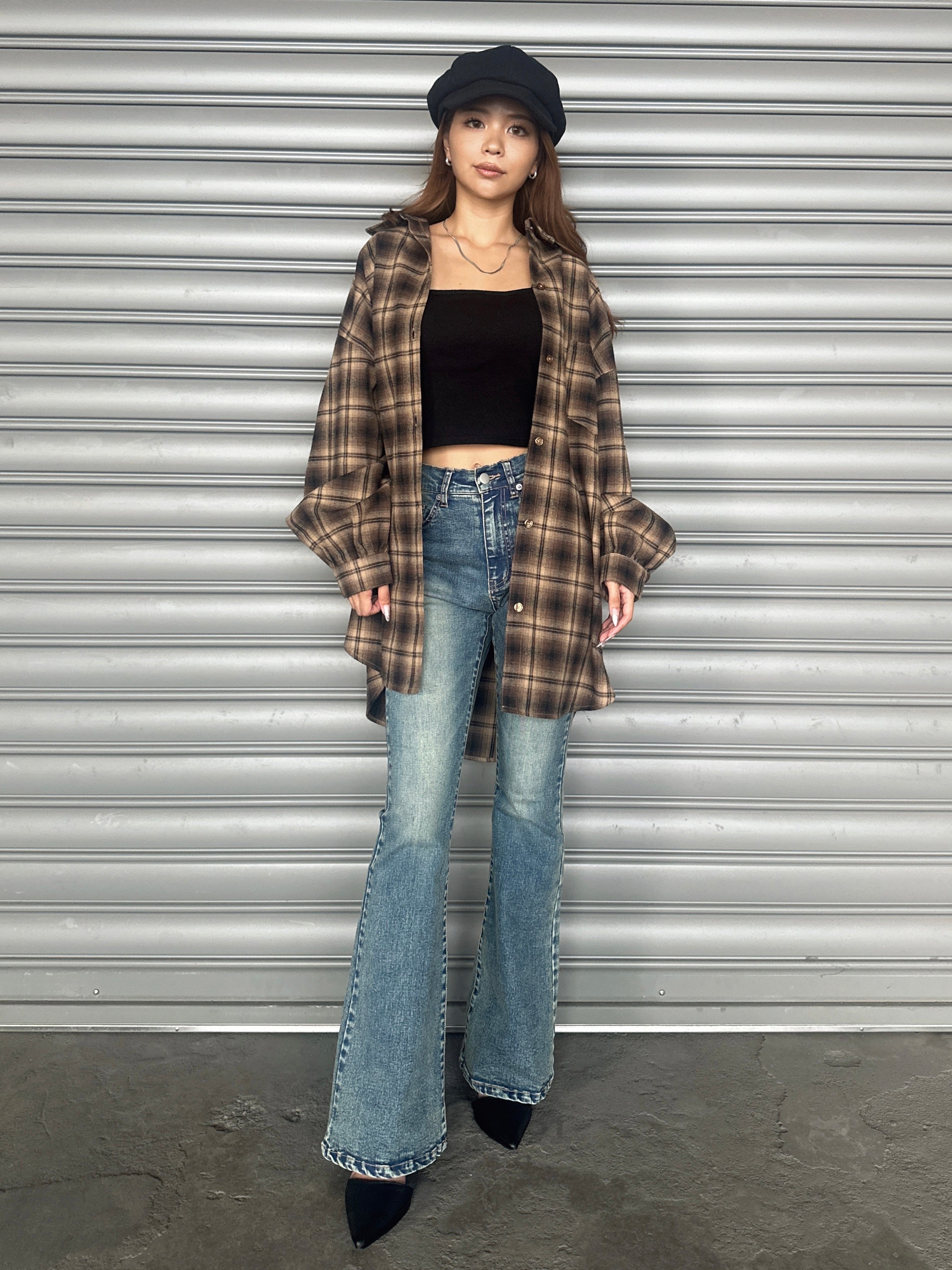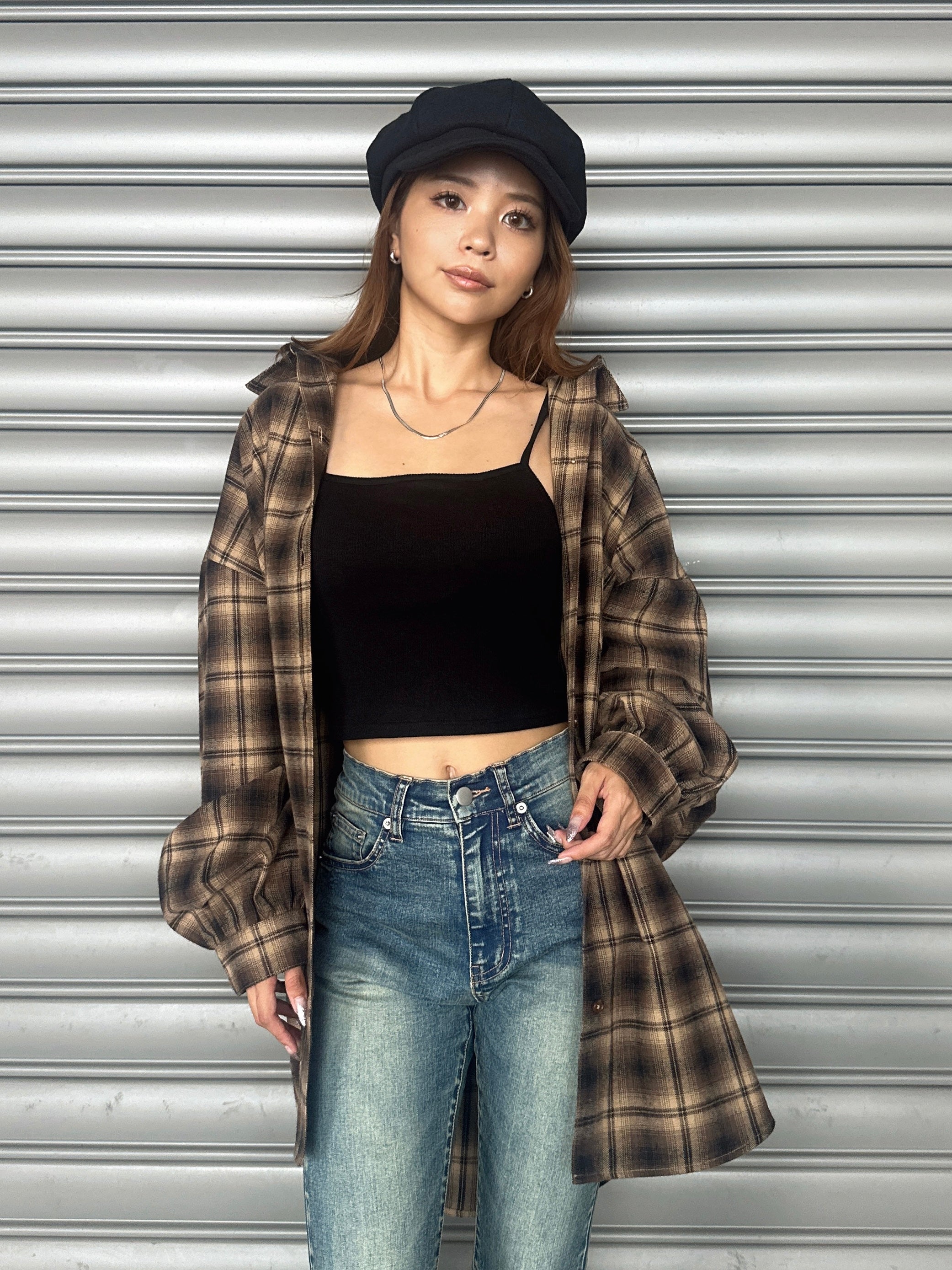 商品説明 ヒップまでしっかり隠れるBIGシルエットが今っぽいチェック柄シャツ。