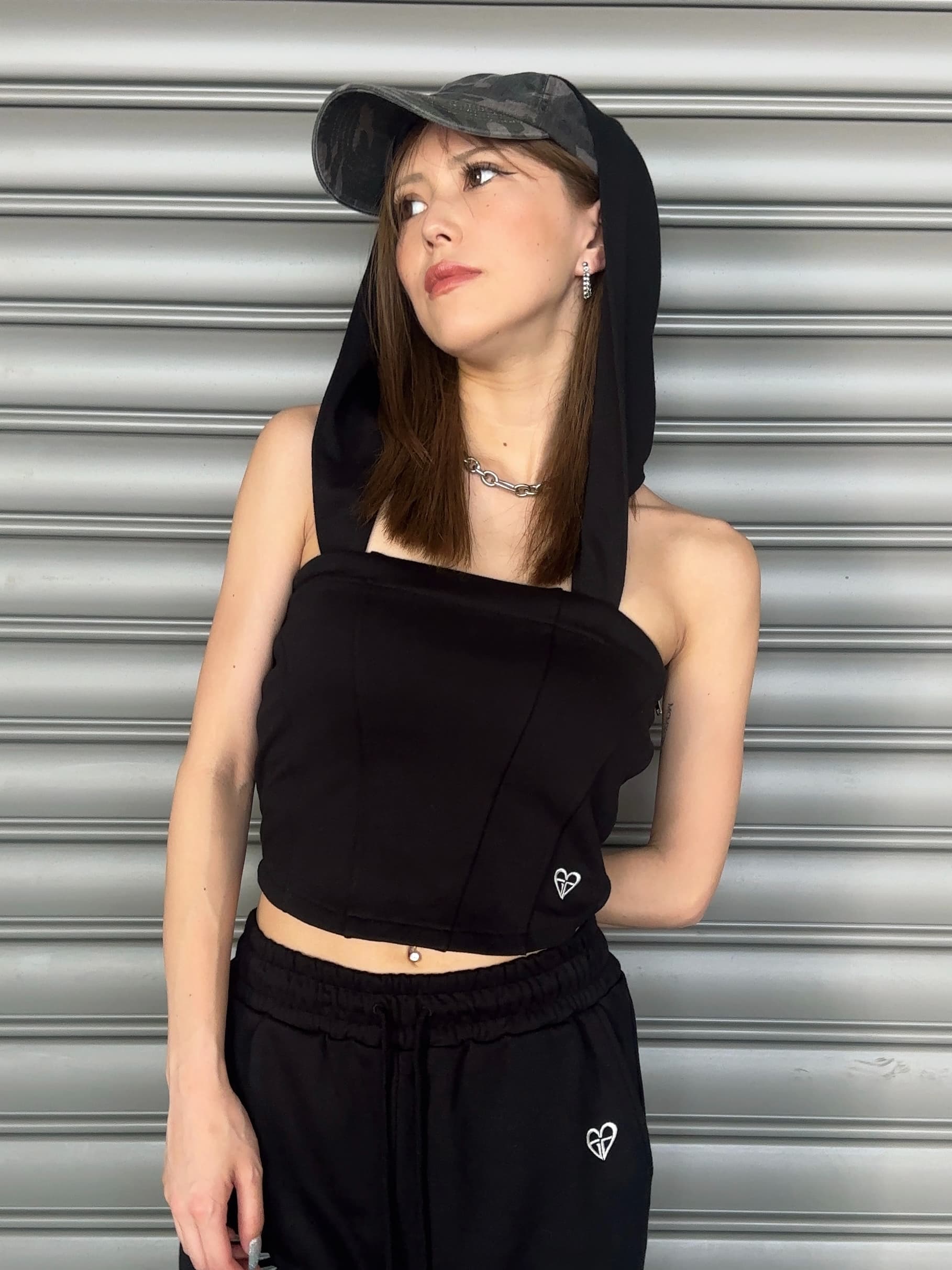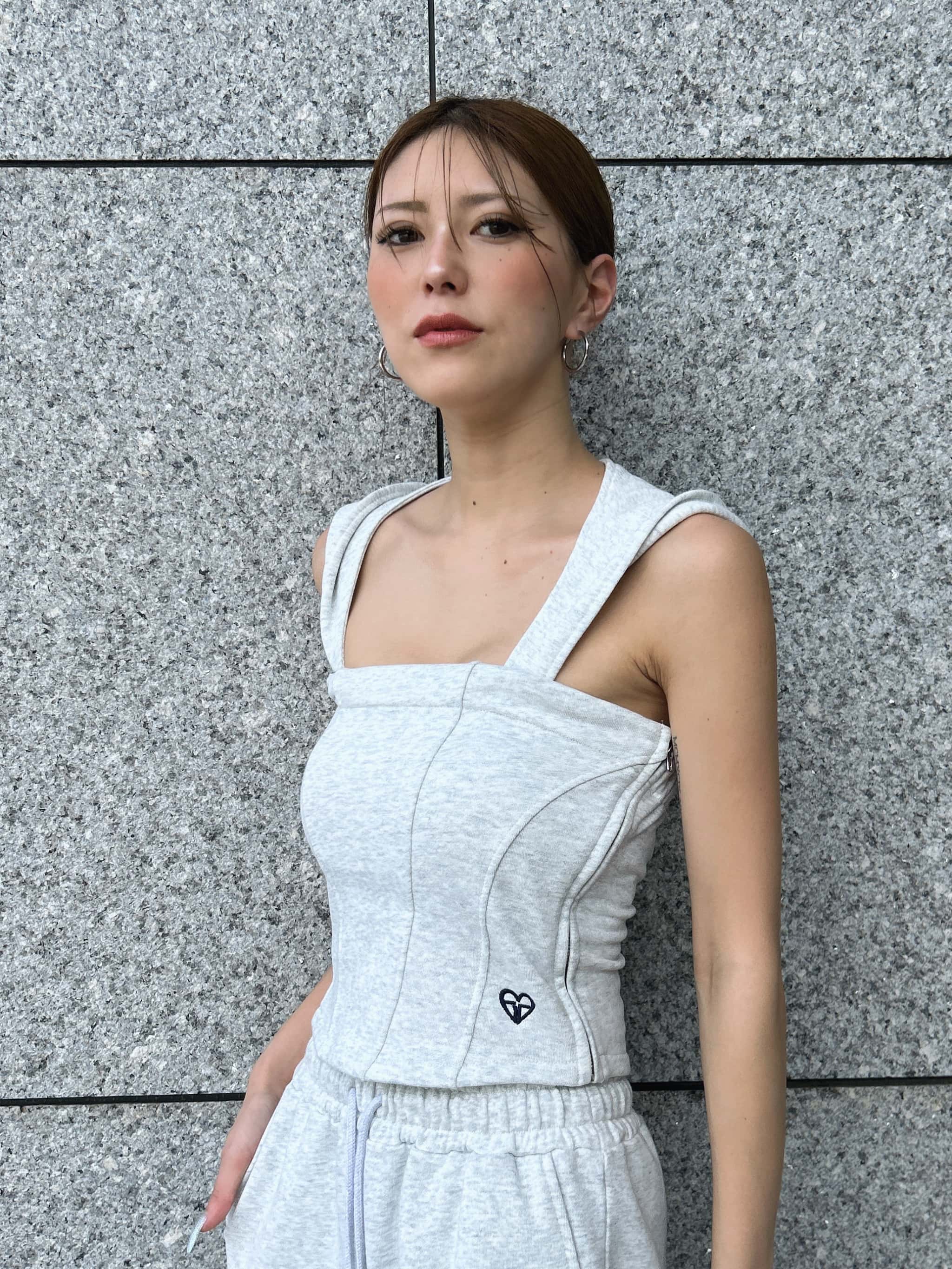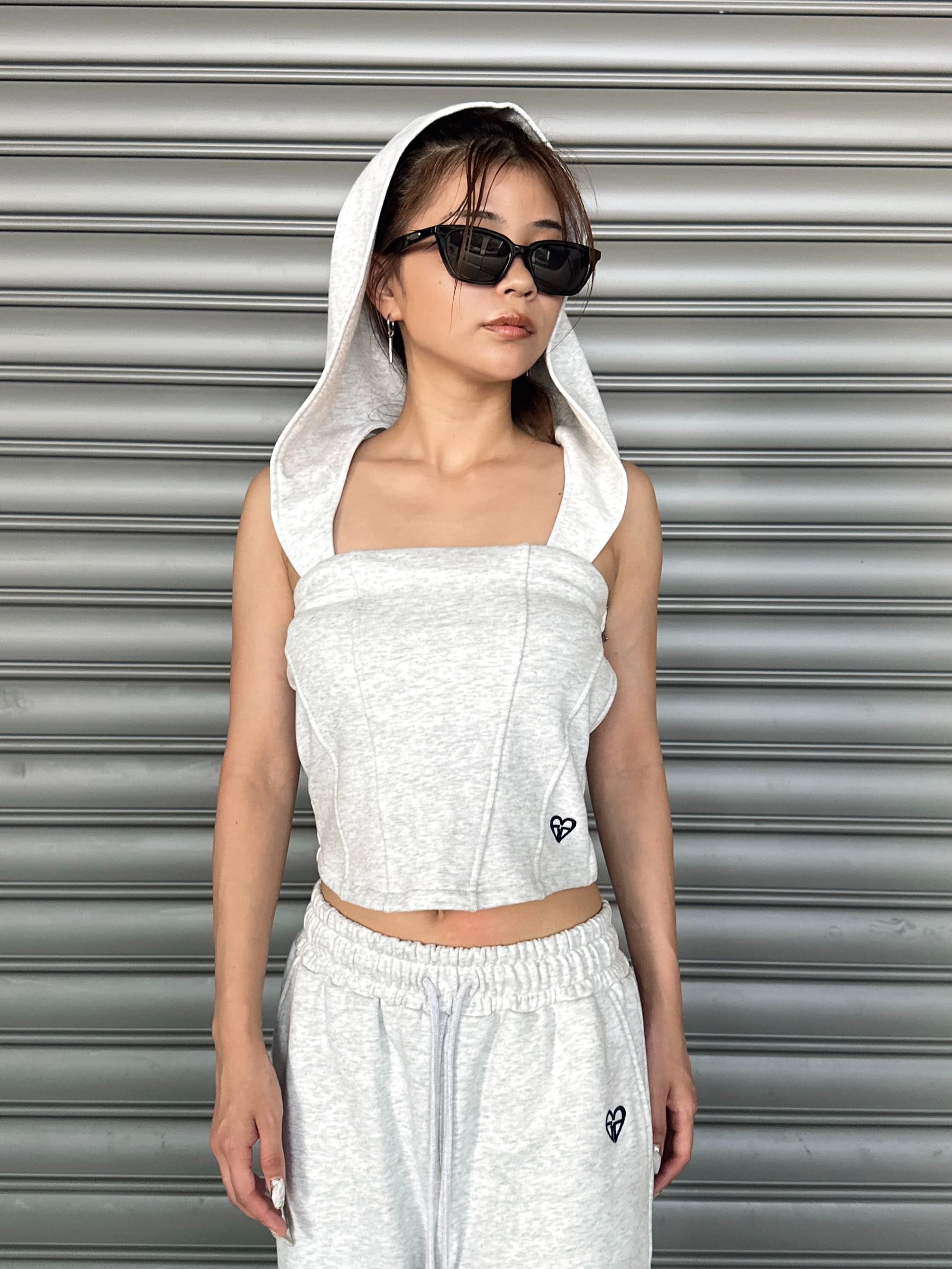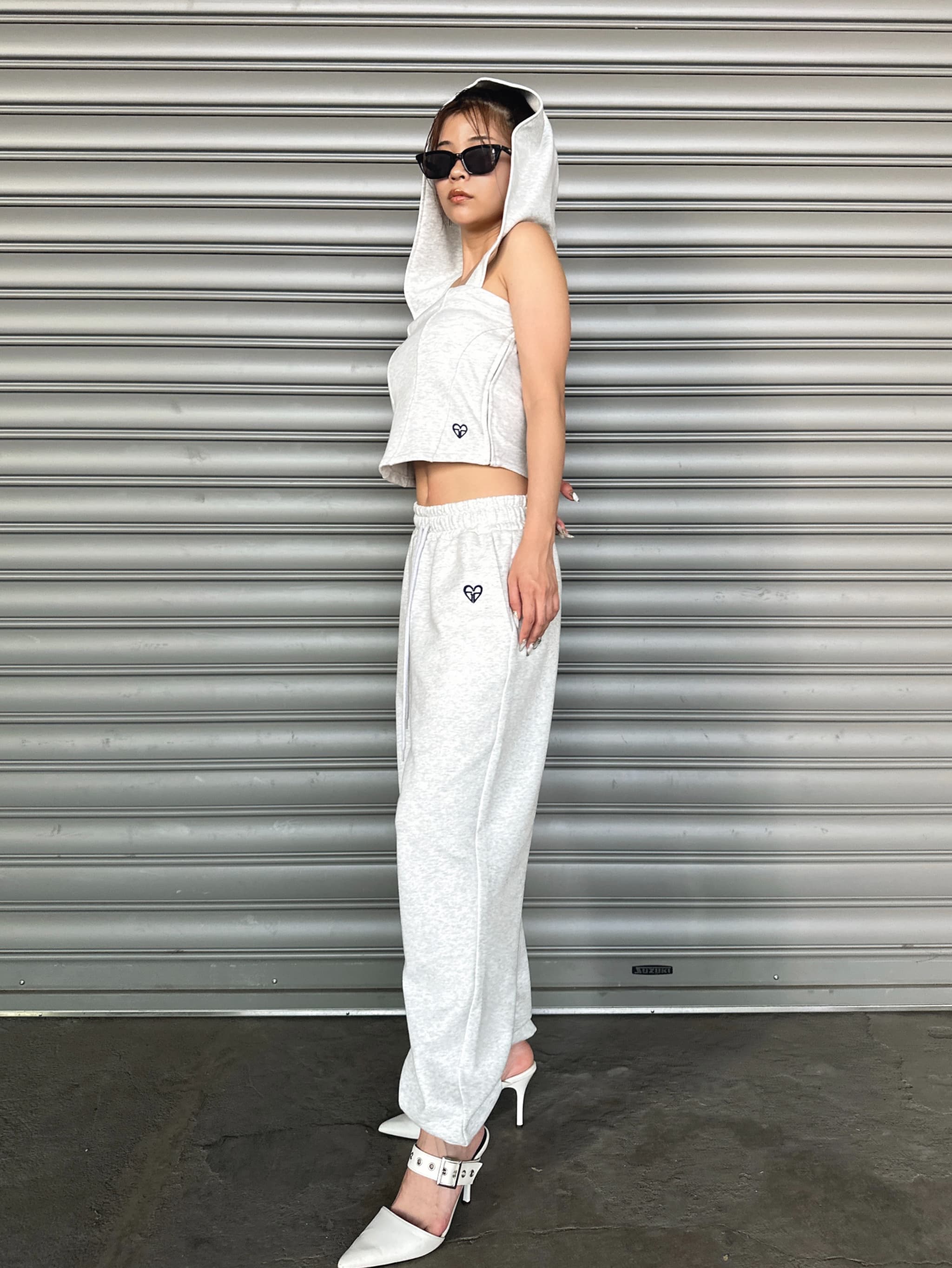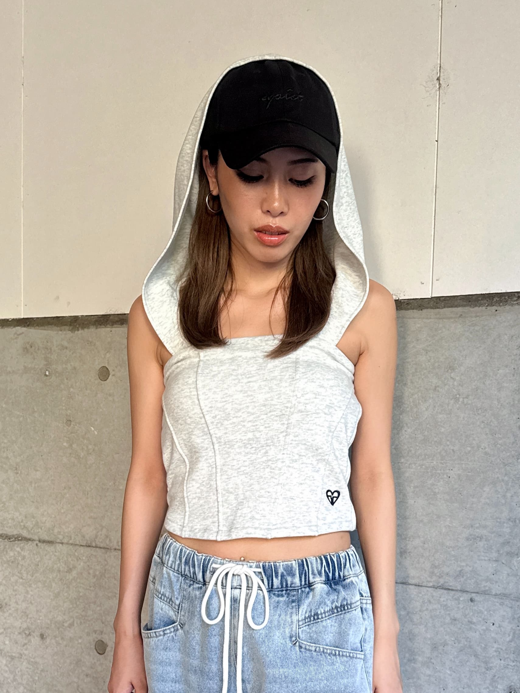 商品説明 フロントの切り替えデザインと左裾上のオリジナルHEARTロゴ刺繍がワンポイントになったフード付き裏毛ベアトップス。