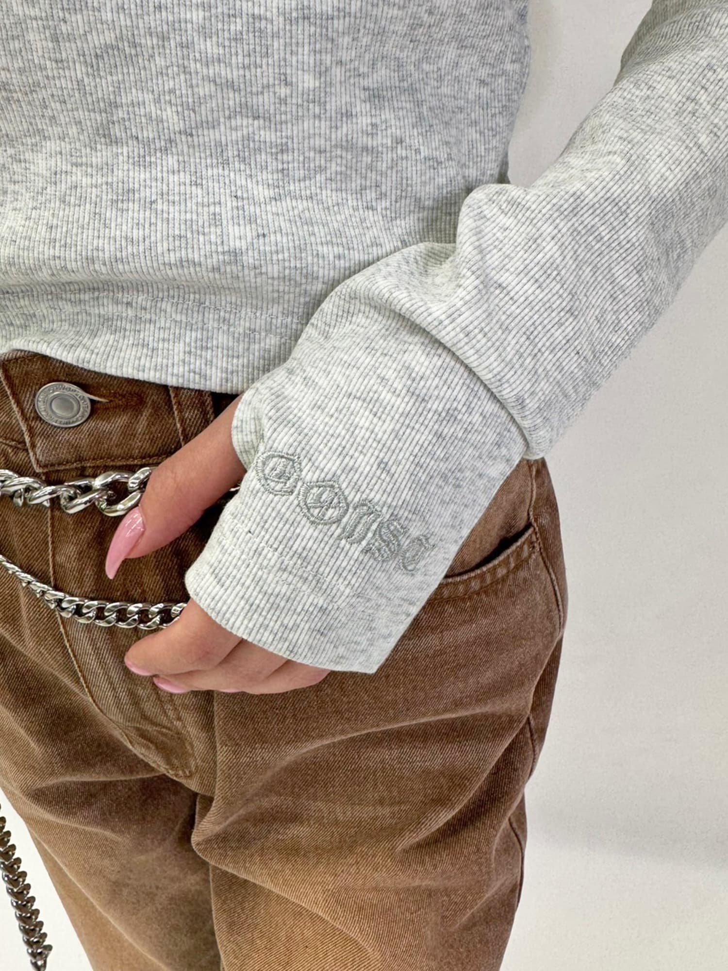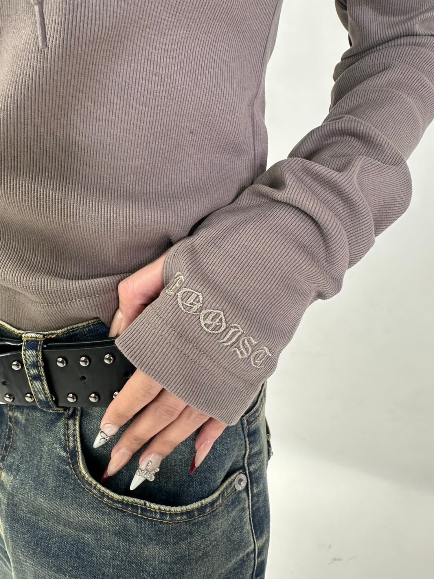 - ボトルネックホイルプリントリブトップス– EGOIST