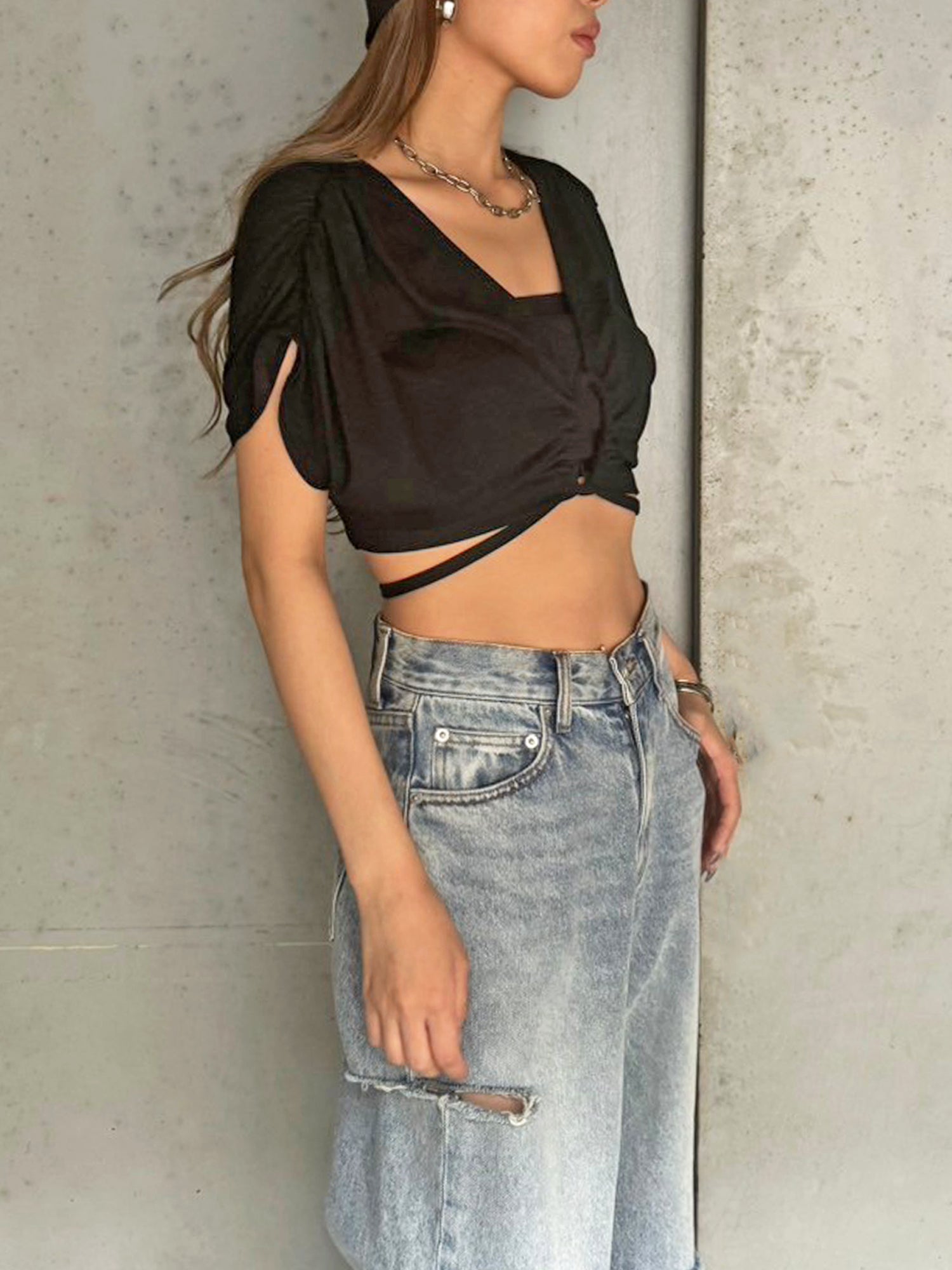 - フロントドロストショートトップス– EGOIST