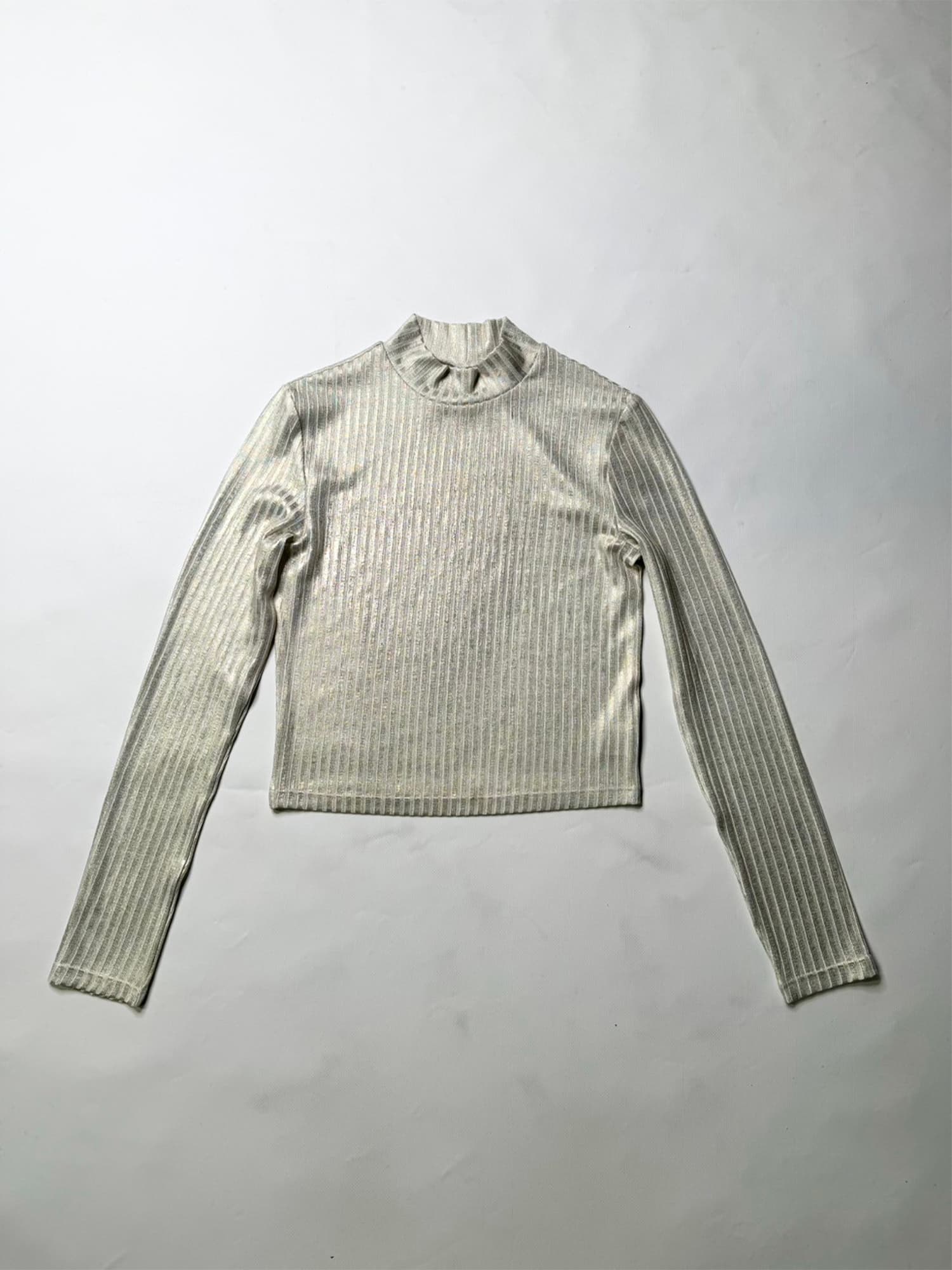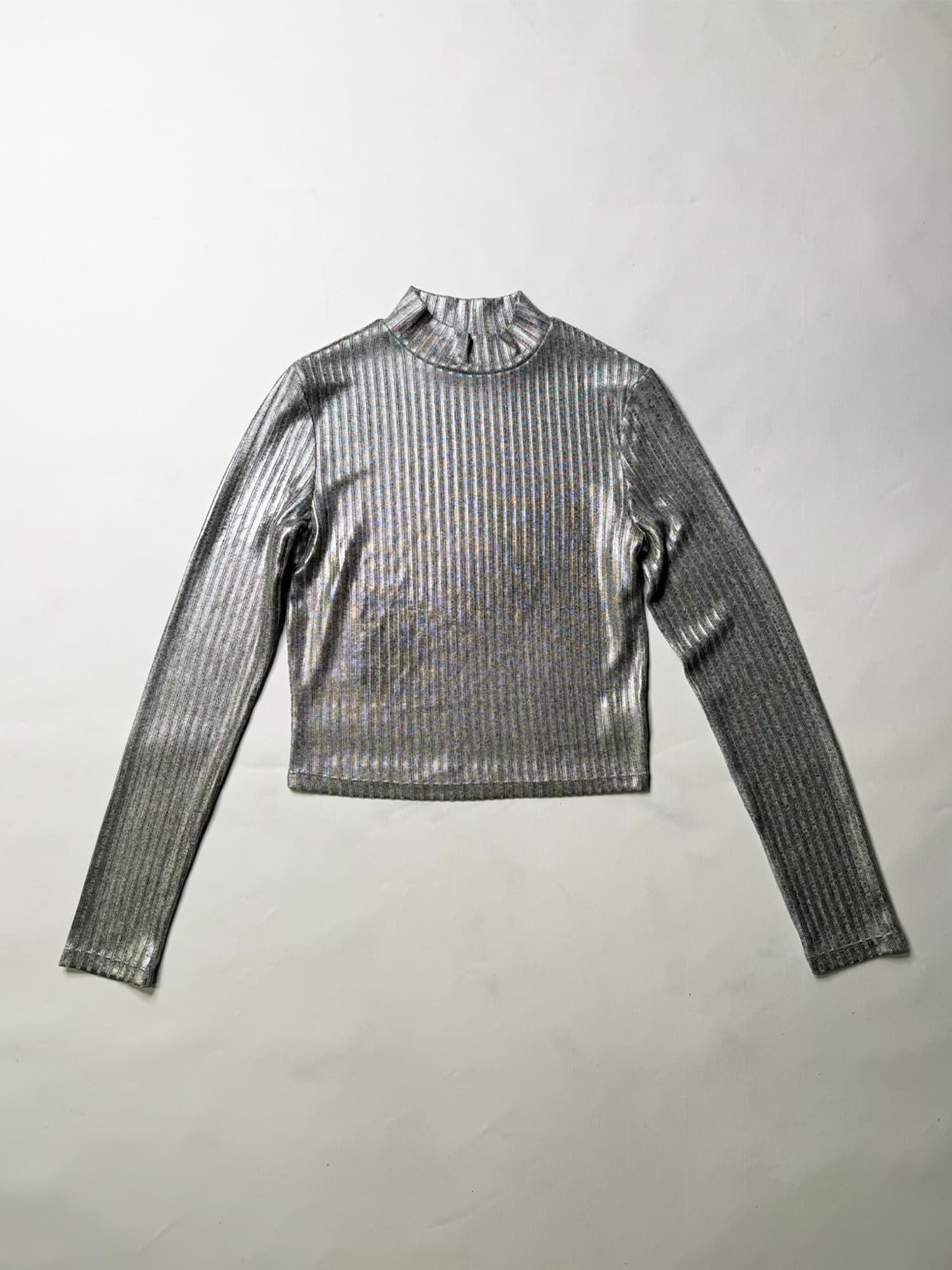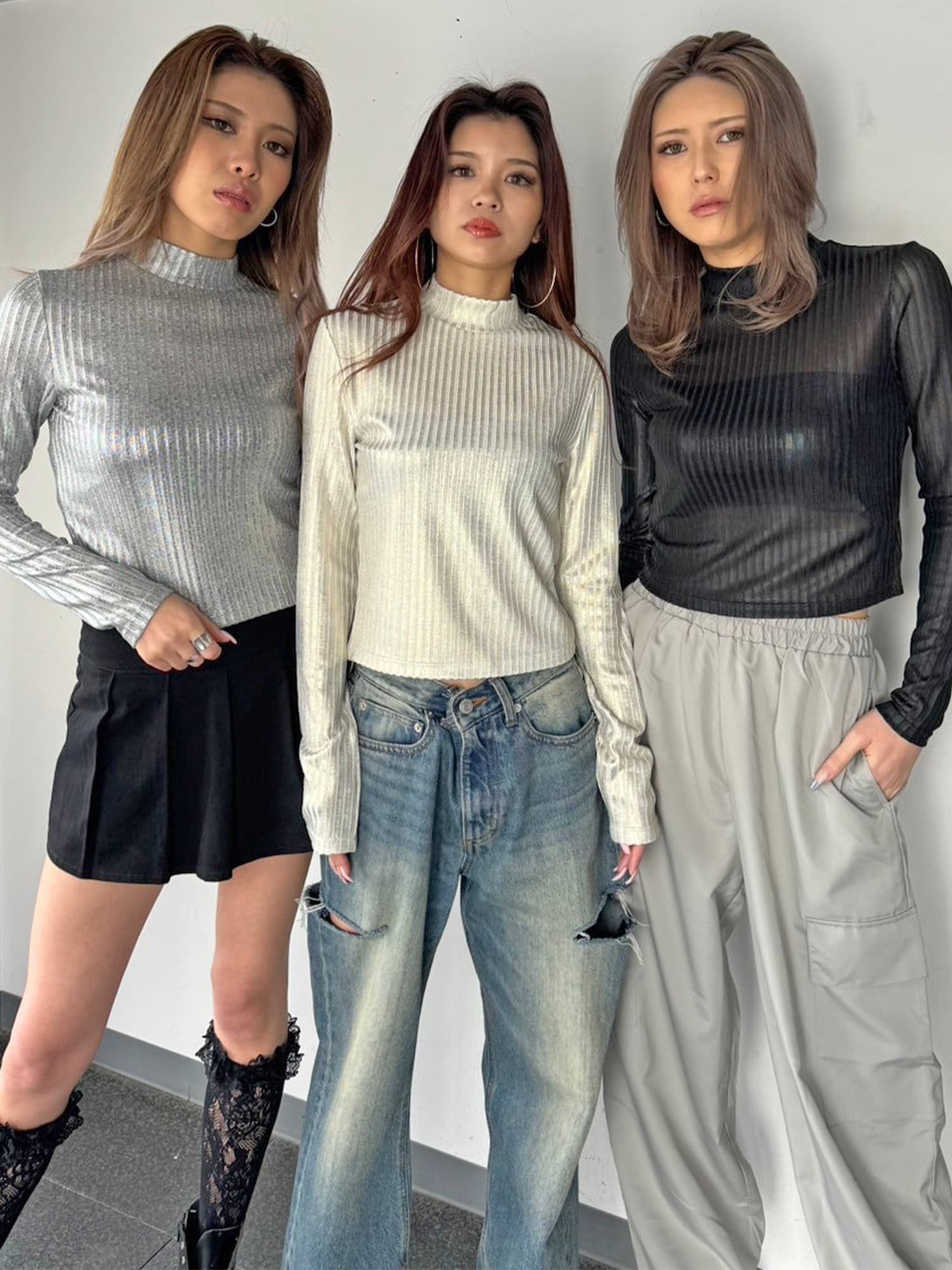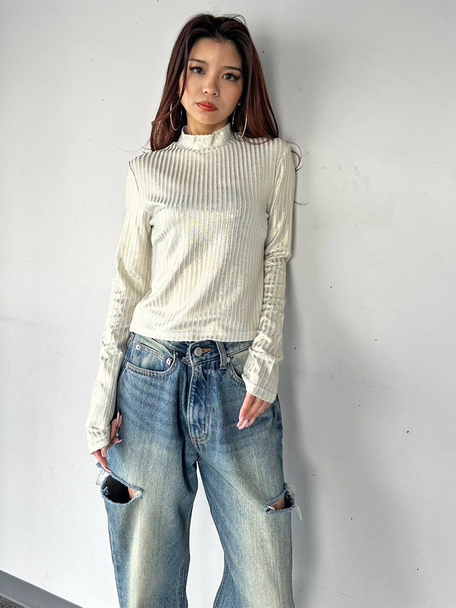 - ボトルネックホイルプリントリブトップス– EGOIST
