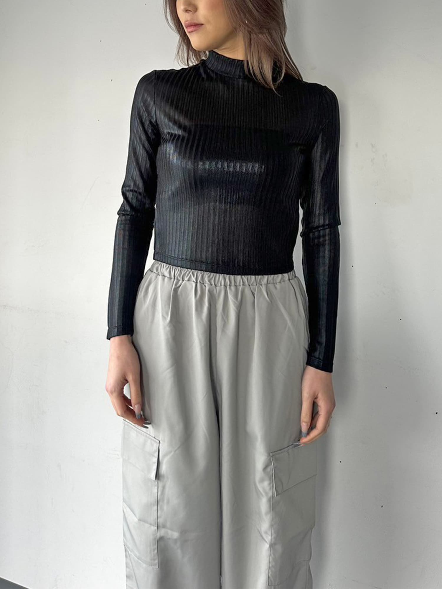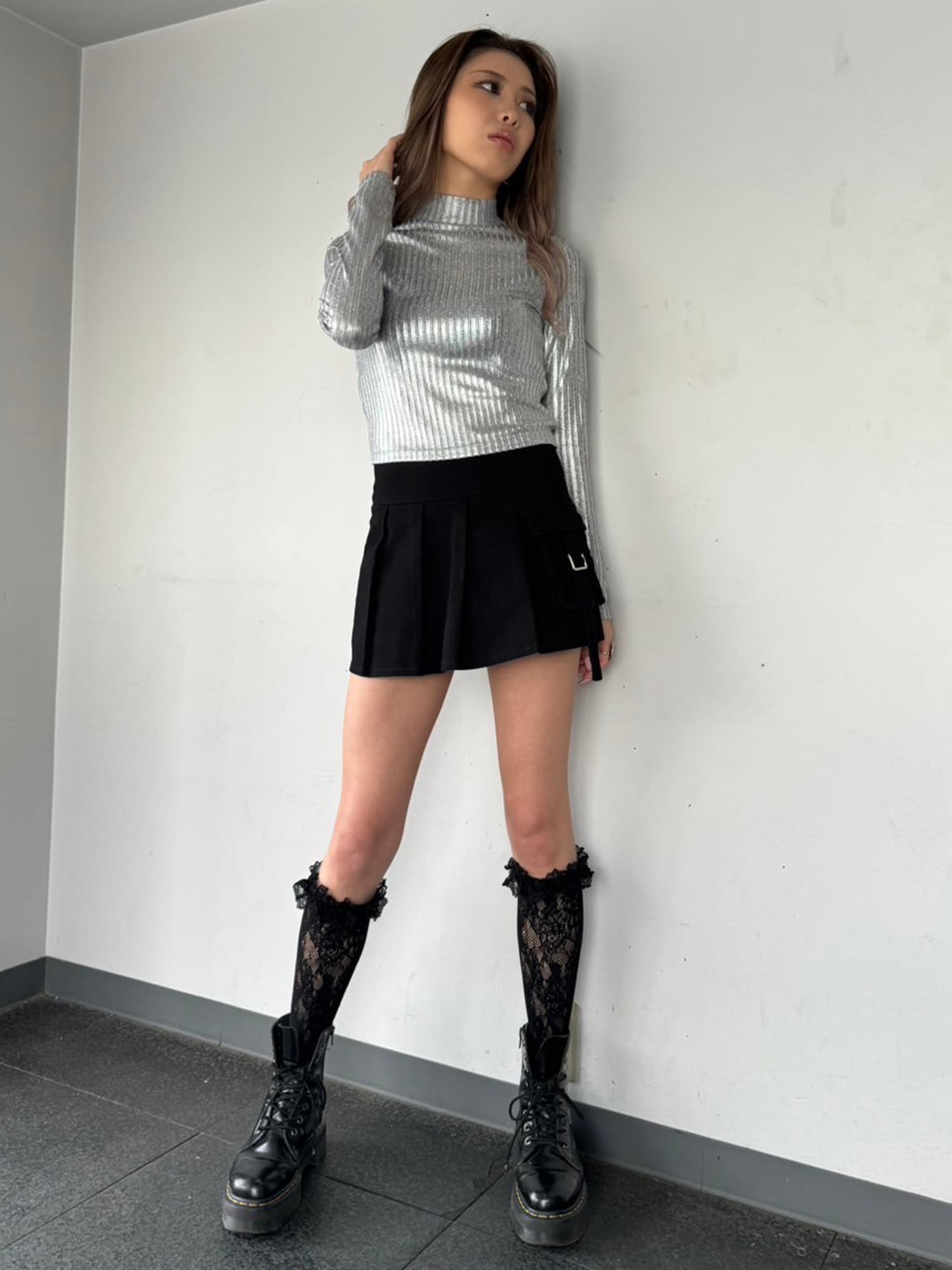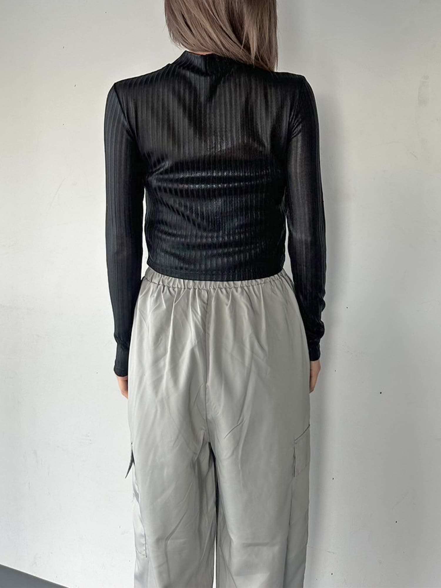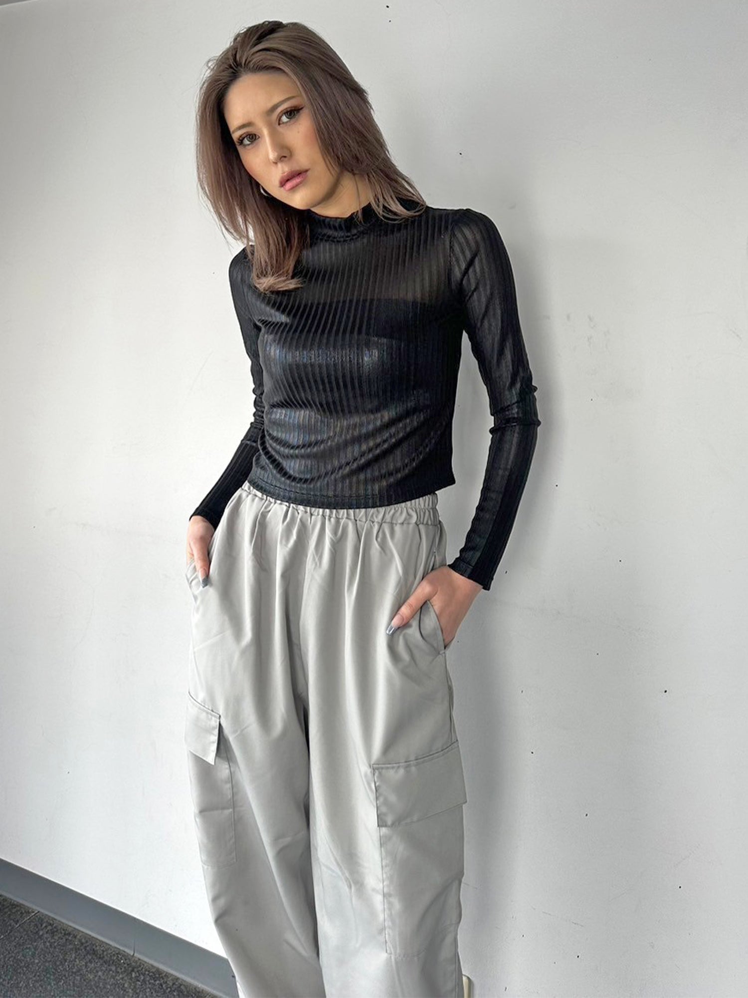 - ボトルネックホイルプリントリブトップス– EGOIST
