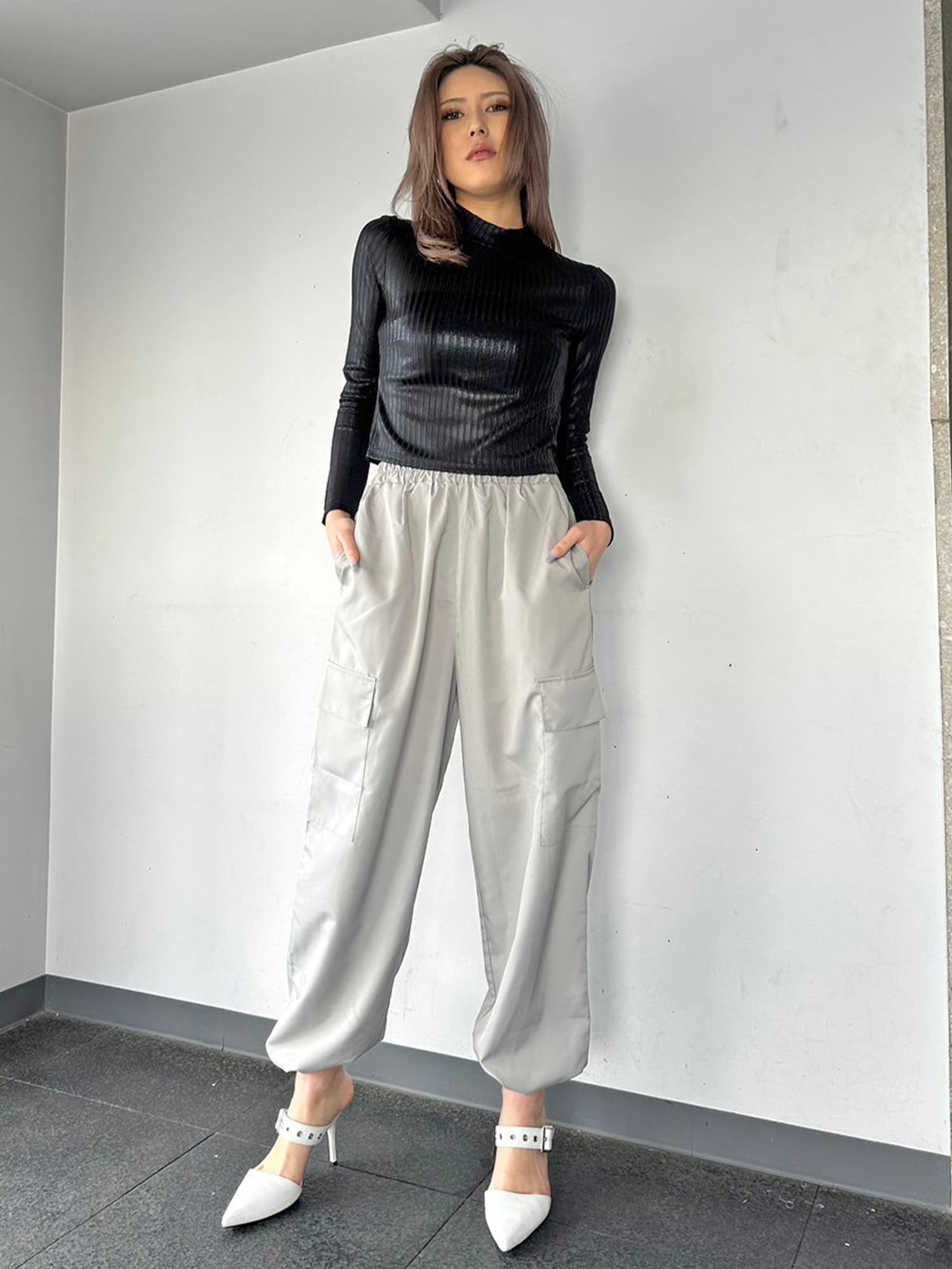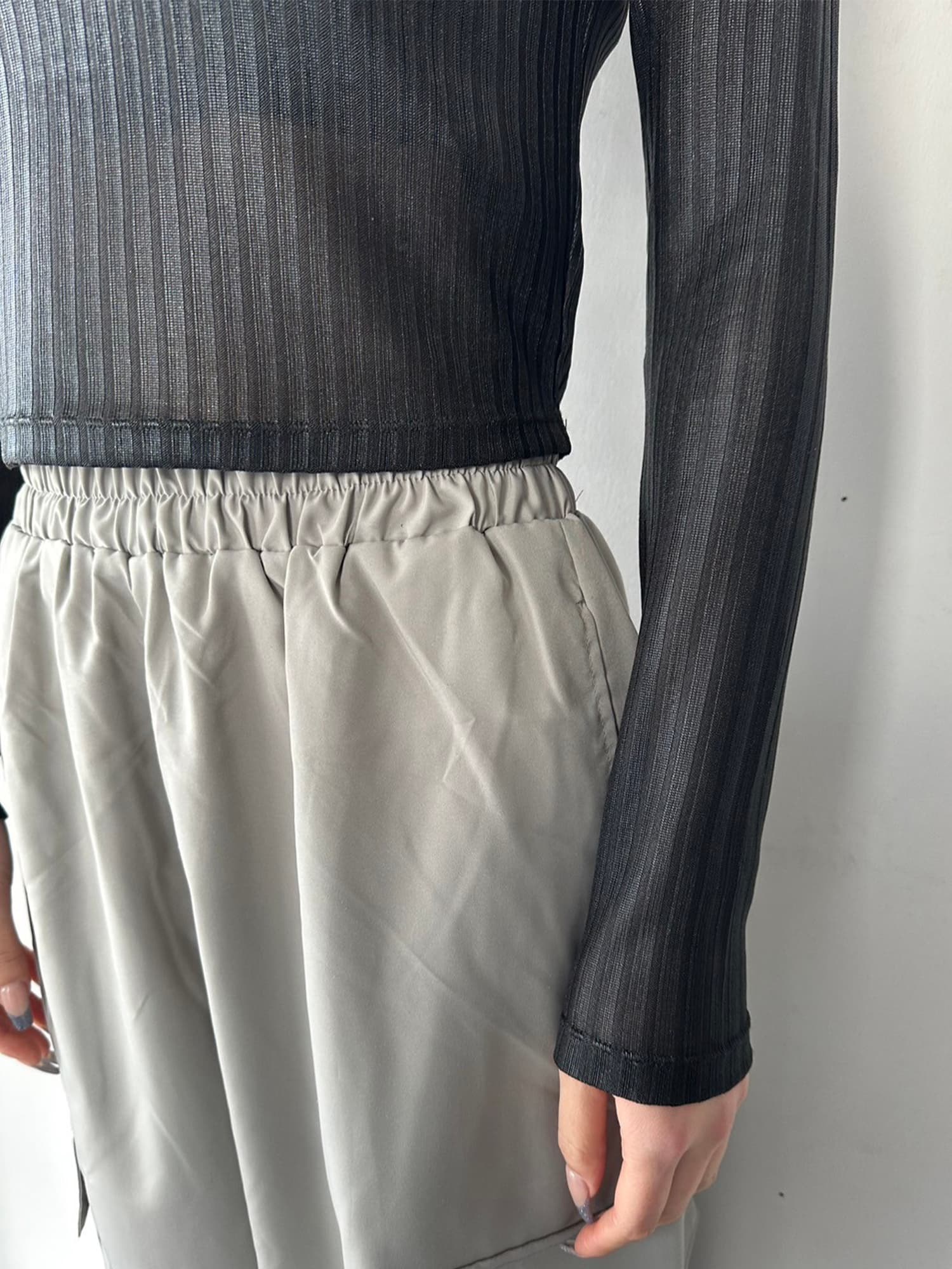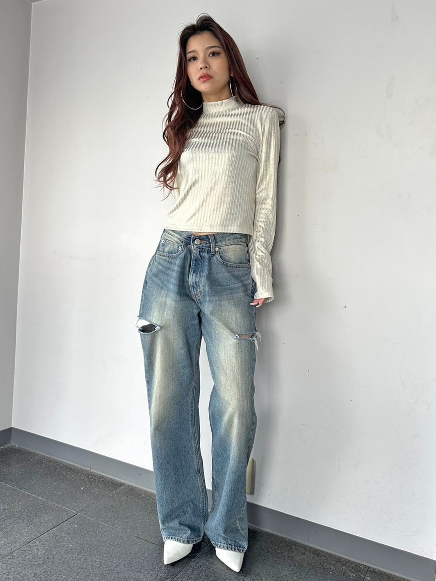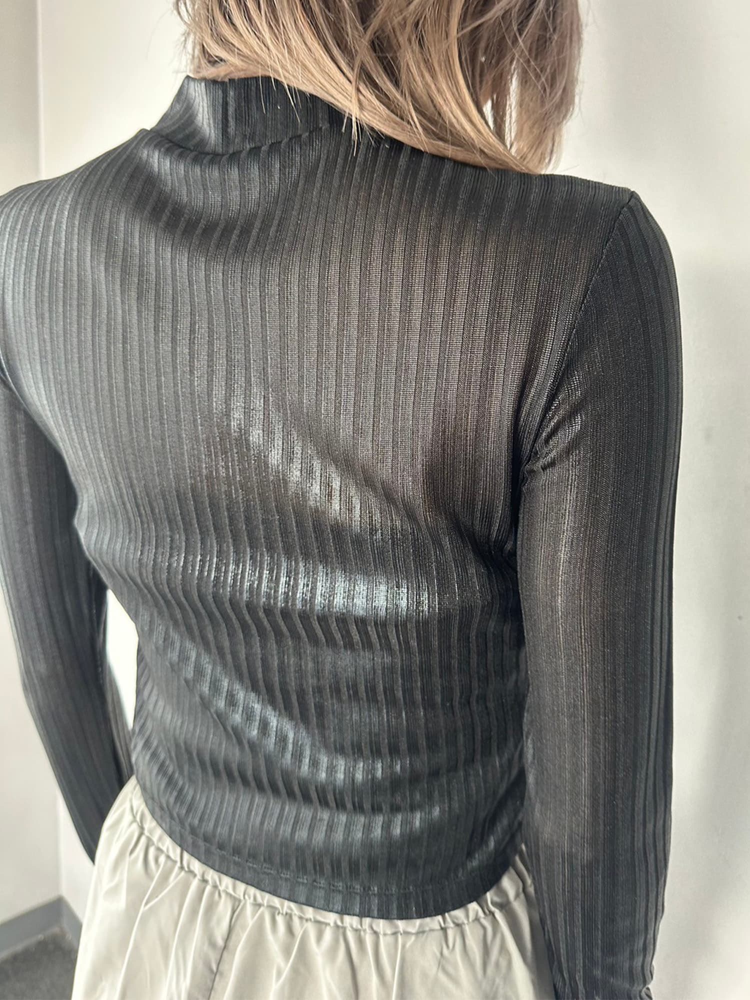 - ボトルネックホイルプリントリブトップス– EGOIST