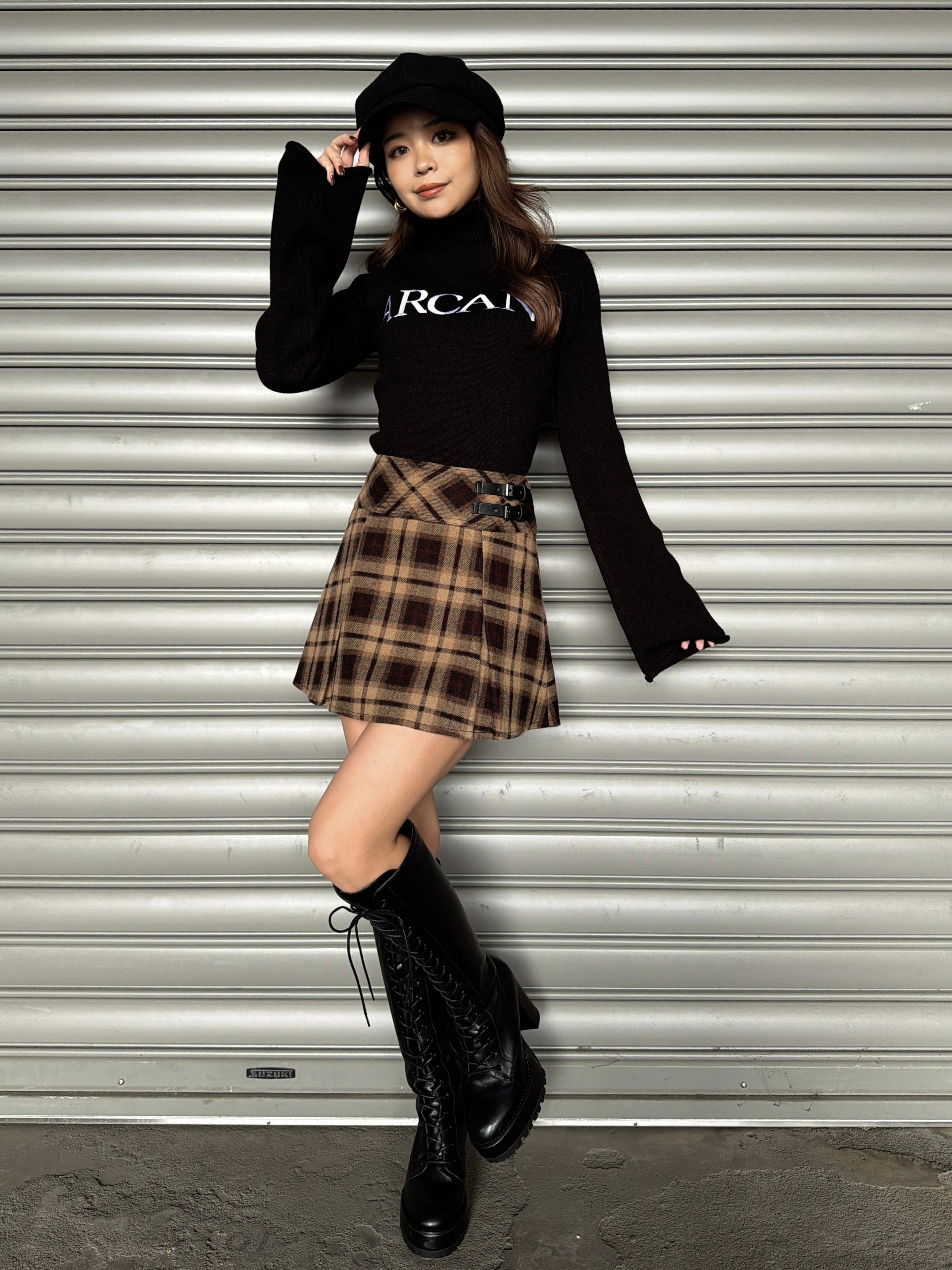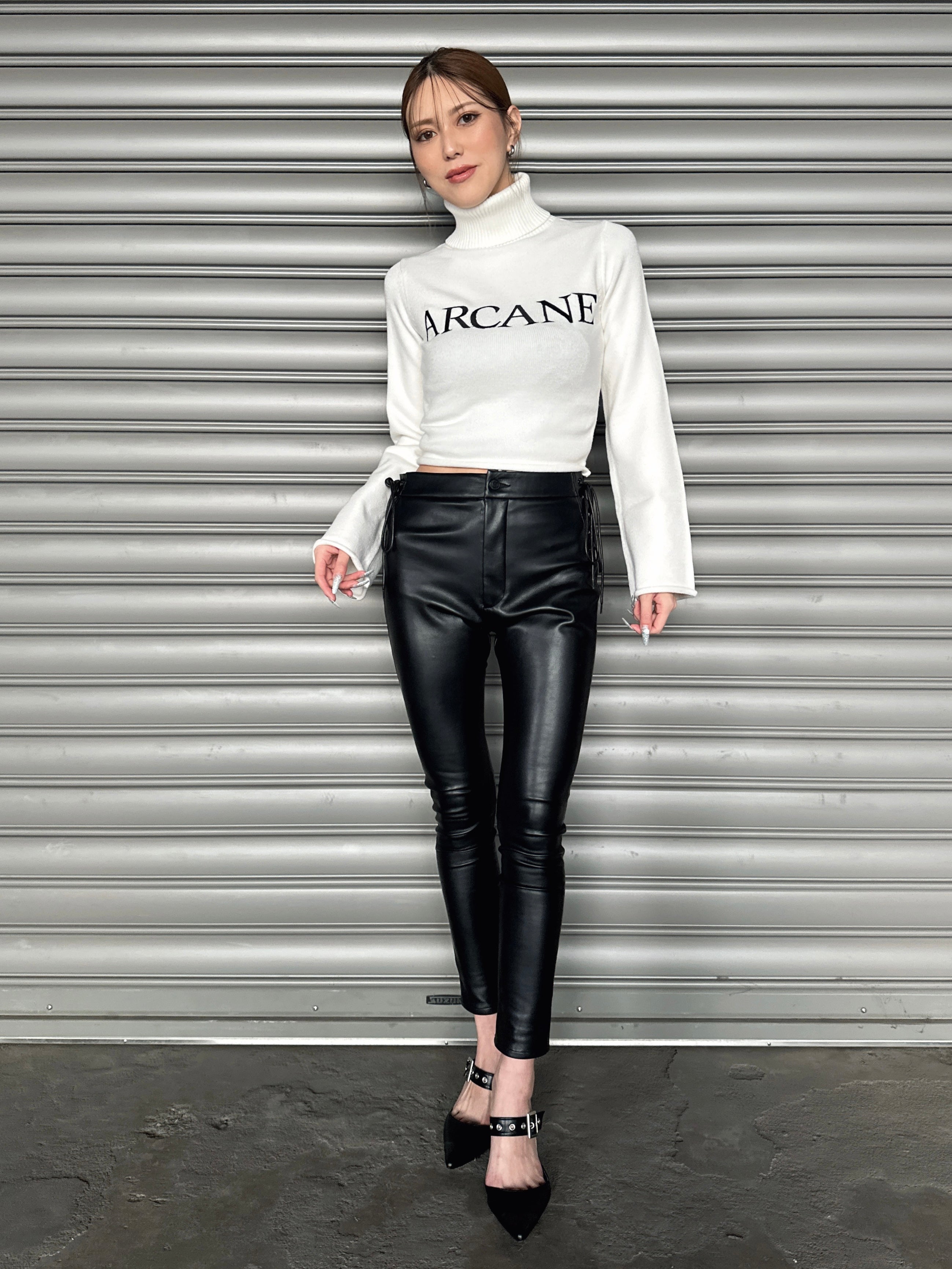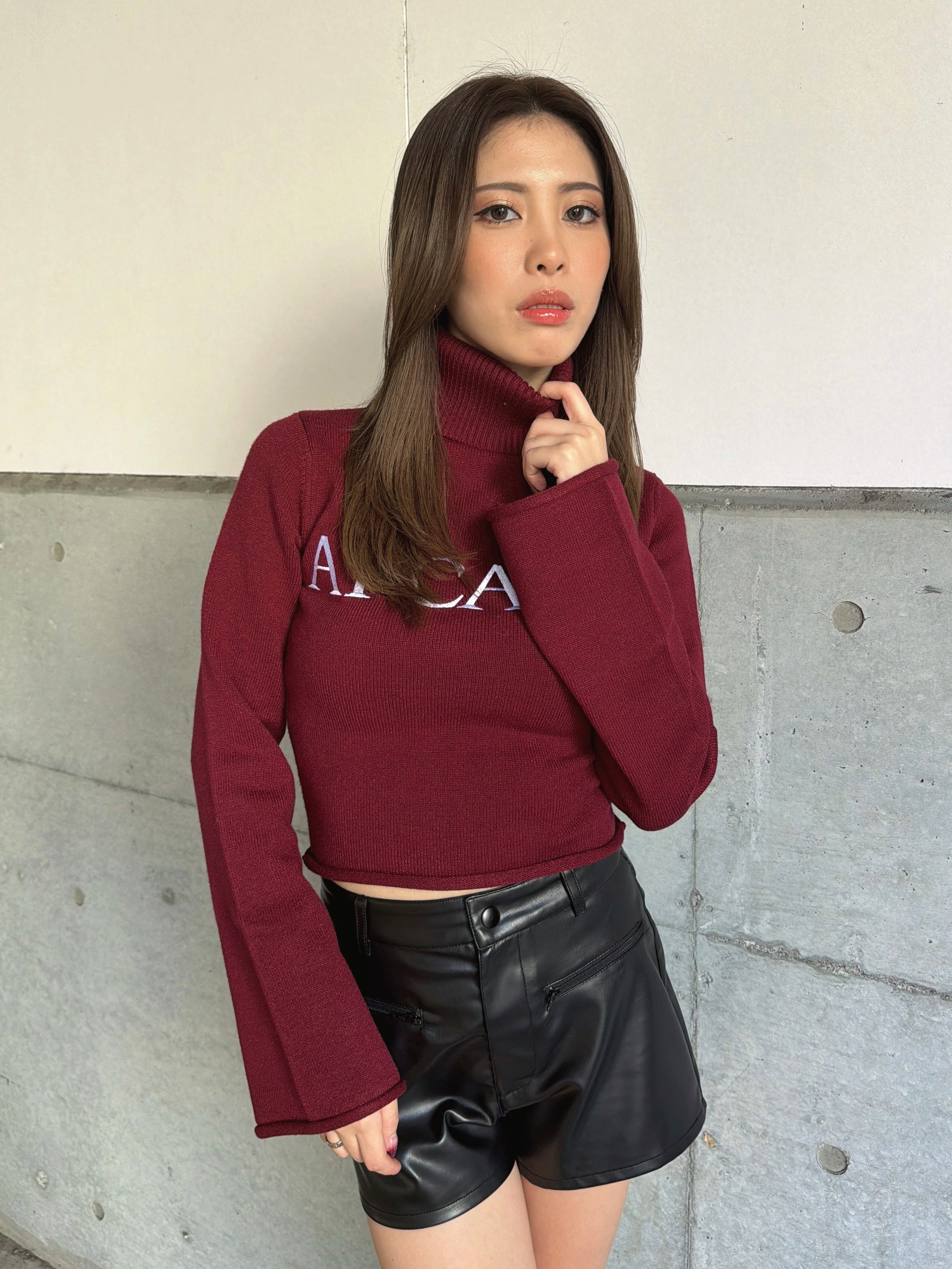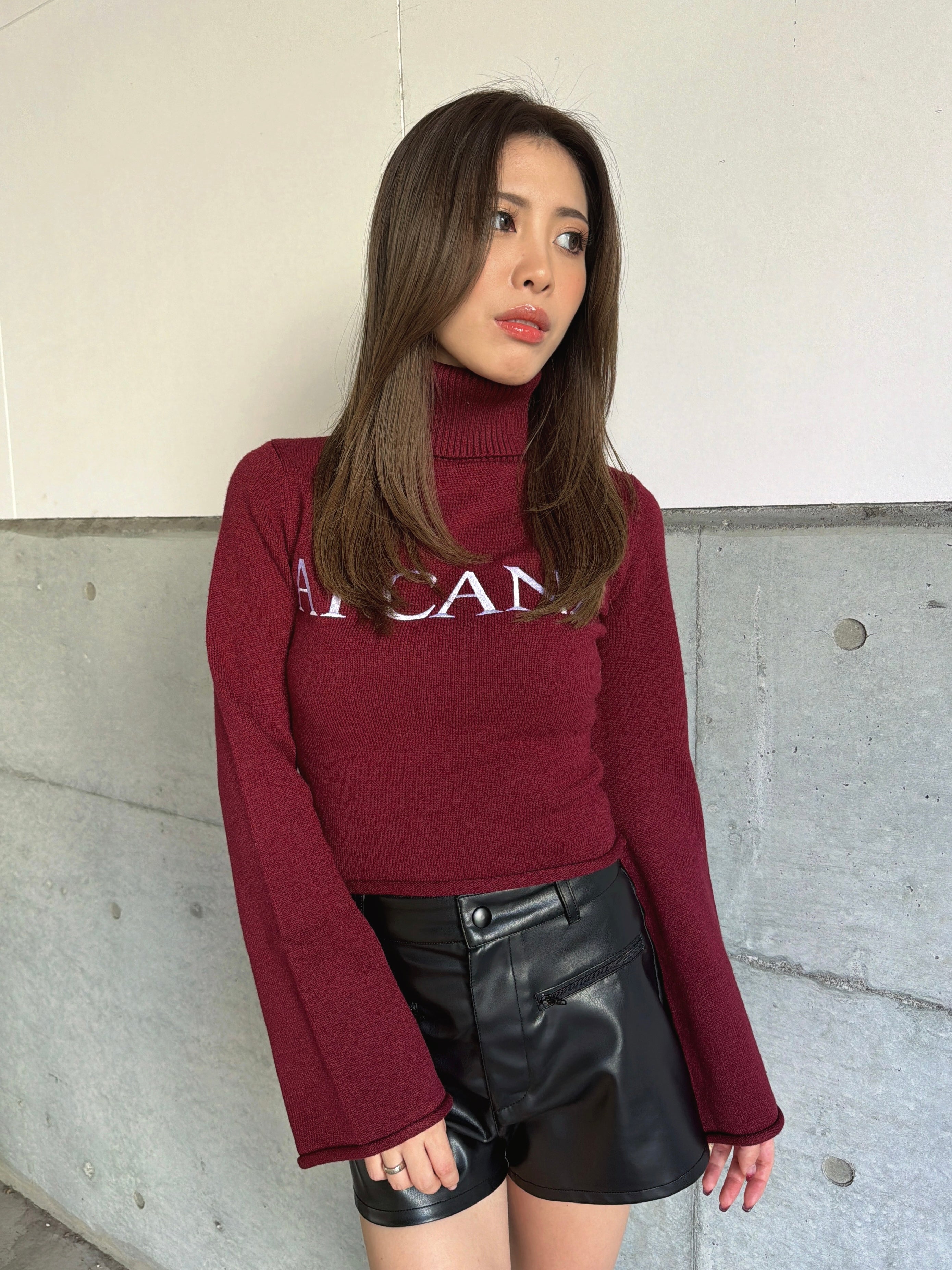 もちっと柔らかくフィット感のある糸を使用した、ショート丈タートルネックニットトップス。フロントには【ARCANE】(アーケイン:秘密の/神秘的な) という意味を持つロゴ刺繍を施しています。ロゴのフォントは大人っぽさを意識して、華奢で綺麗めな明朝体を選んでいます。袖口に向かって徐々に広がるフレアスリーブが女性らしいシルエットを演出。ボディ部分はストレッチ性のある天竺編みで、タートル部分はリブ編みにすることで首元の圧迫感を軽減し、着脱もしやすい仕様にしました。程よい厚みのある生地感はインナー使いにも最適。ジャスト丈なので、フルレングスからミニボトムまで幅広いボトムと相性抜群です。着回しができるので一枚は持っていたい万能アイテムです。