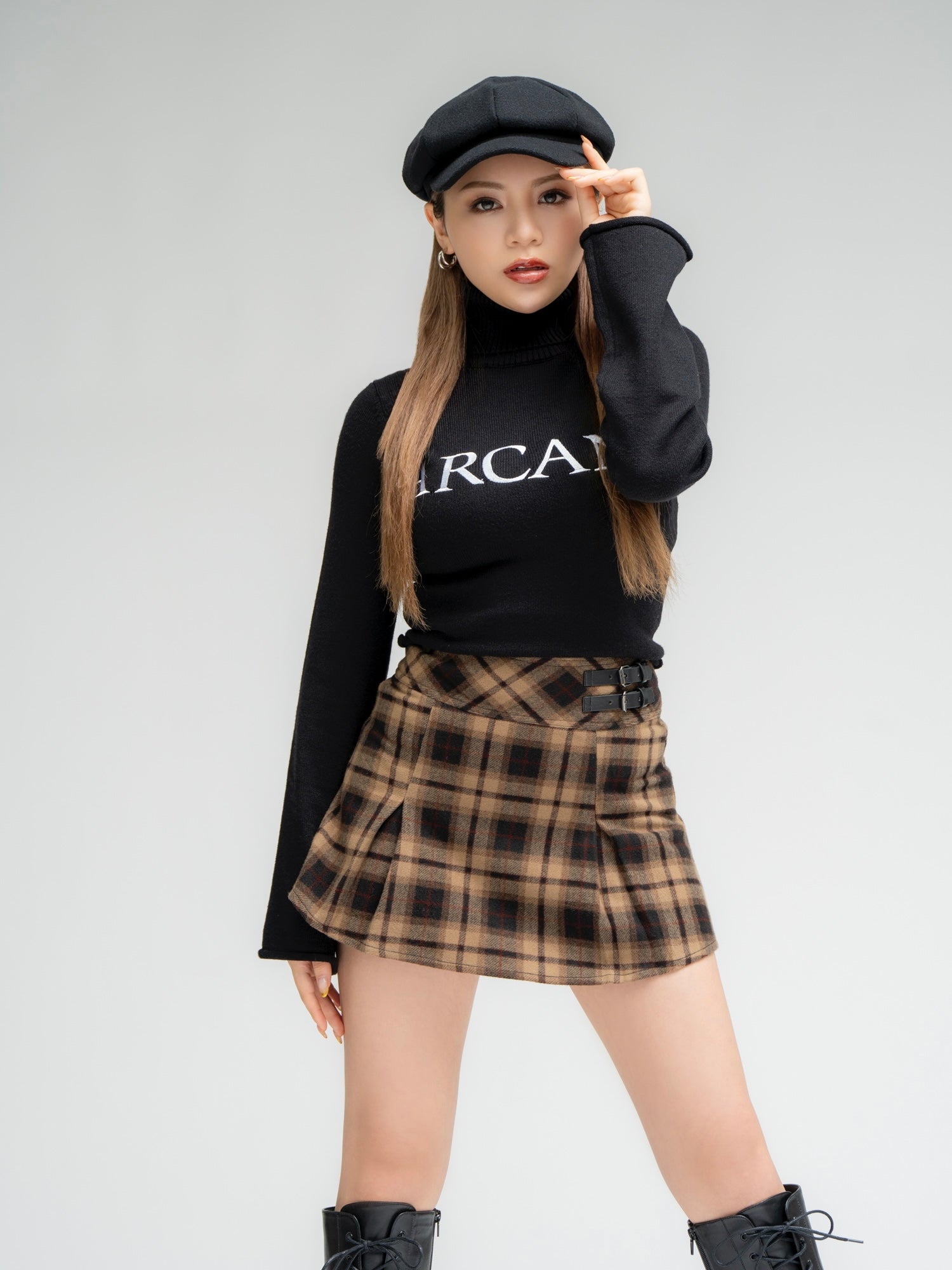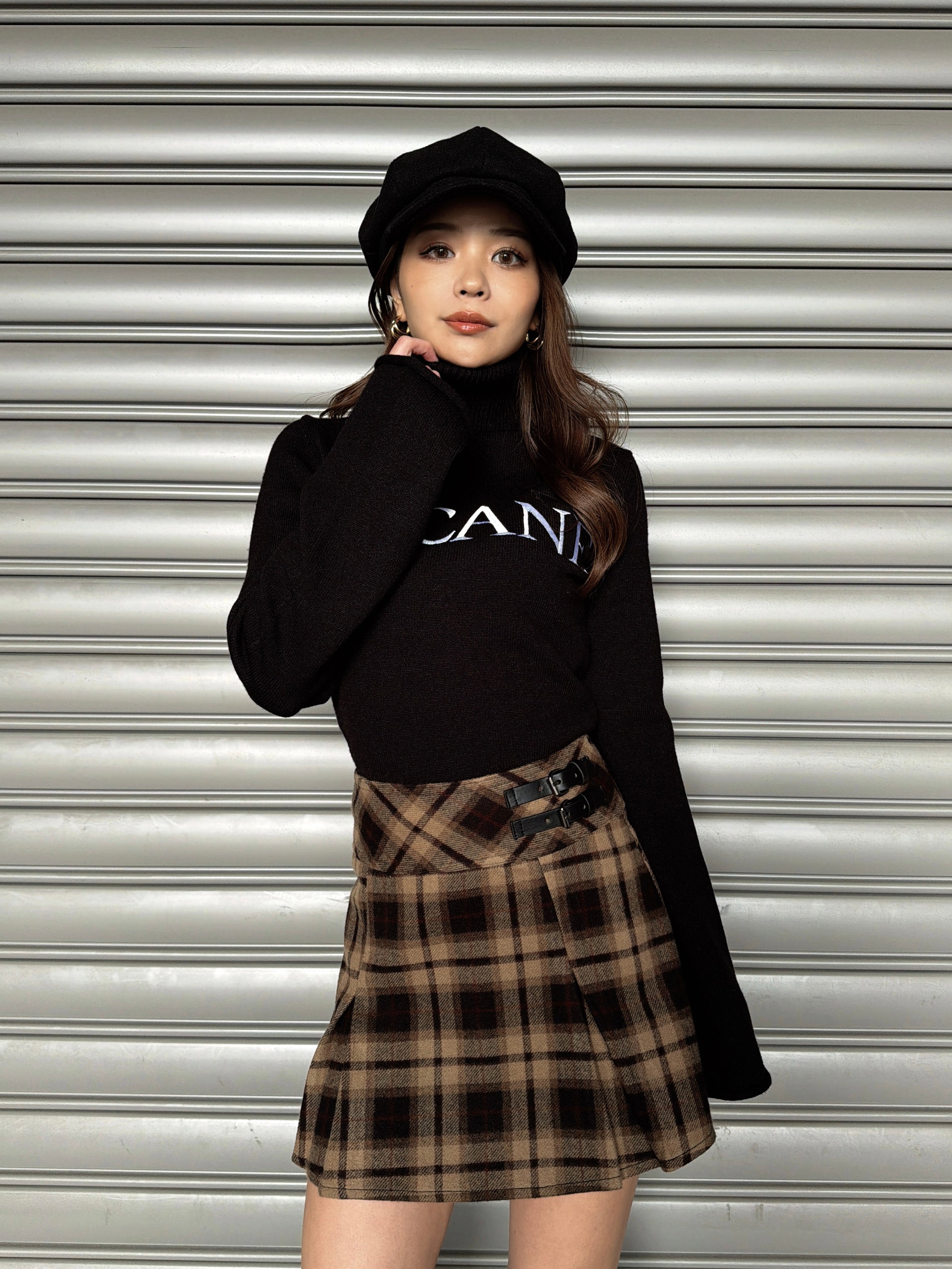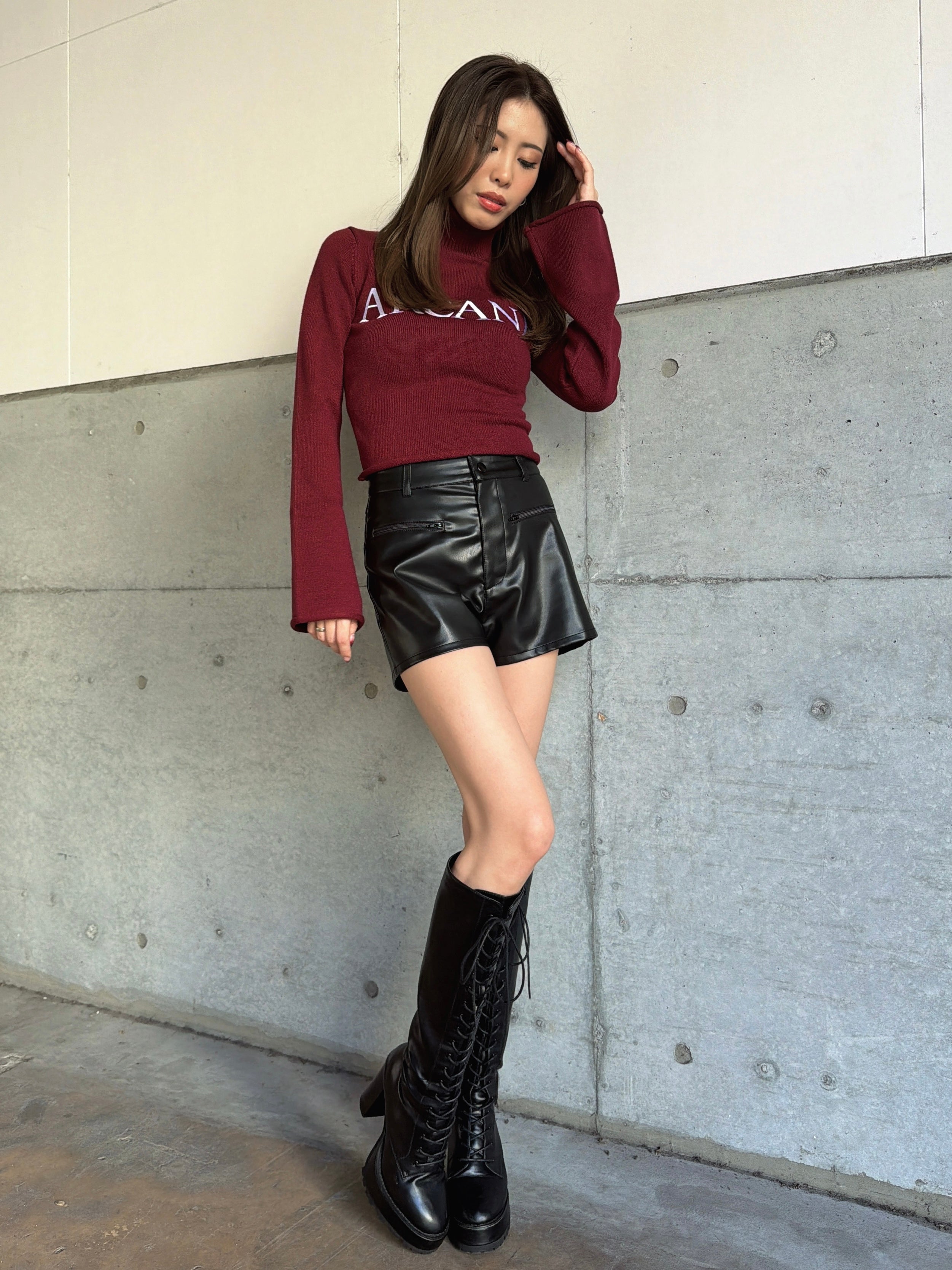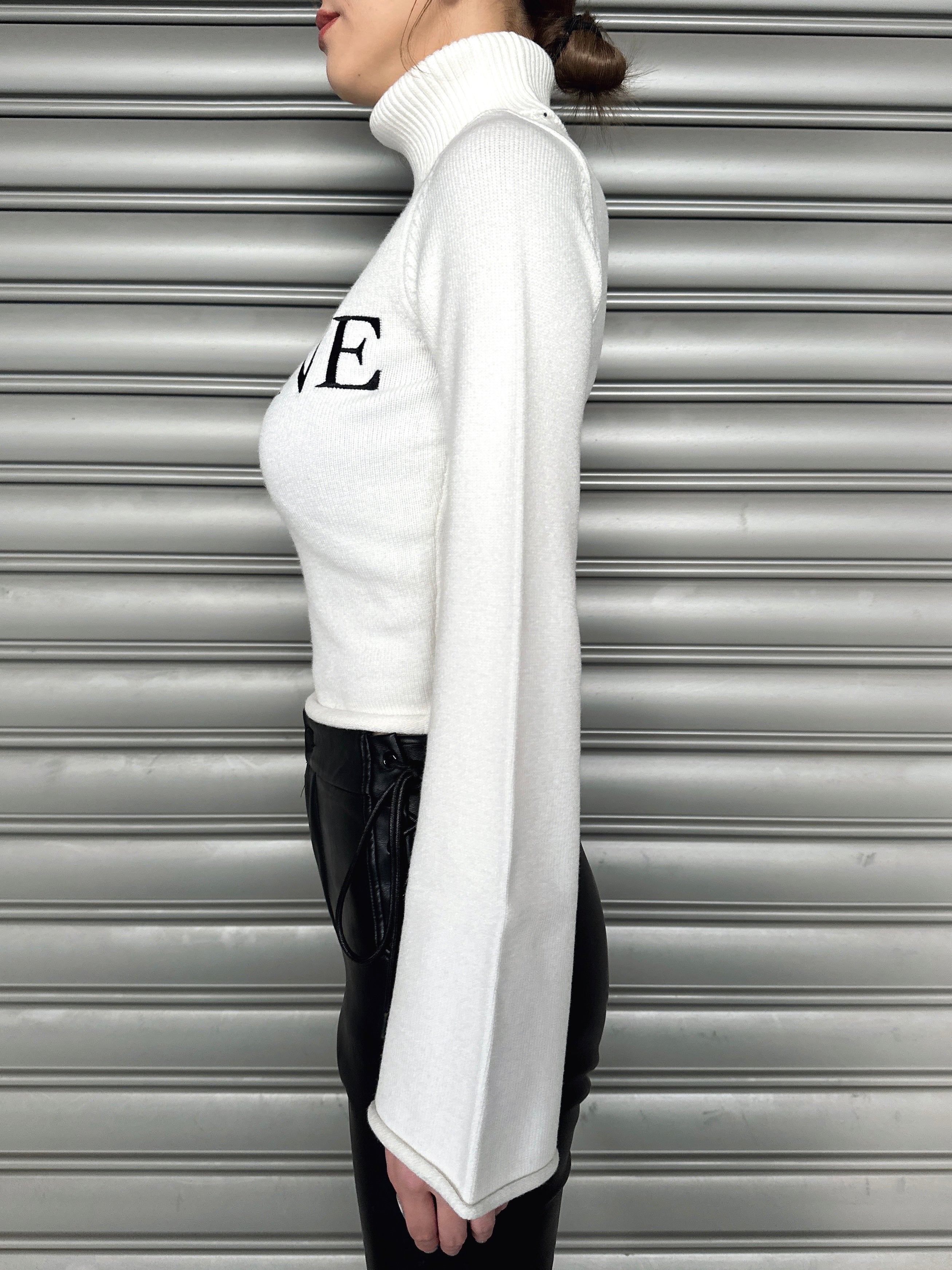もちっと柔らかくフィット感のある糸を使用した、ショート丈タートルネックニットトップス。フロントには【ARCANE】(アーケイン:秘密の/神秘的な) という意味を持つロゴ刺繍を施しています。ロゴのフォントは大人っぽさを意識して、華奢で綺麗めな明朝体を選んでいます。袖口に向かって徐々に広がるフレアスリーブが女性らしいシルエットを演出。ボディ部分はストレッチ性のある天竺編みで、タートル部分はリブ編みにすることで首元の圧迫感を軽減し、着脱もしやすい仕様にしました。程よい厚みのある生地感はインナー使いにも最適。ジャスト丈なので、フルレングスからミニボトムまで幅広いボトムと相性抜群です。着回しができるので一枚は持っていたい万能アイテムです。