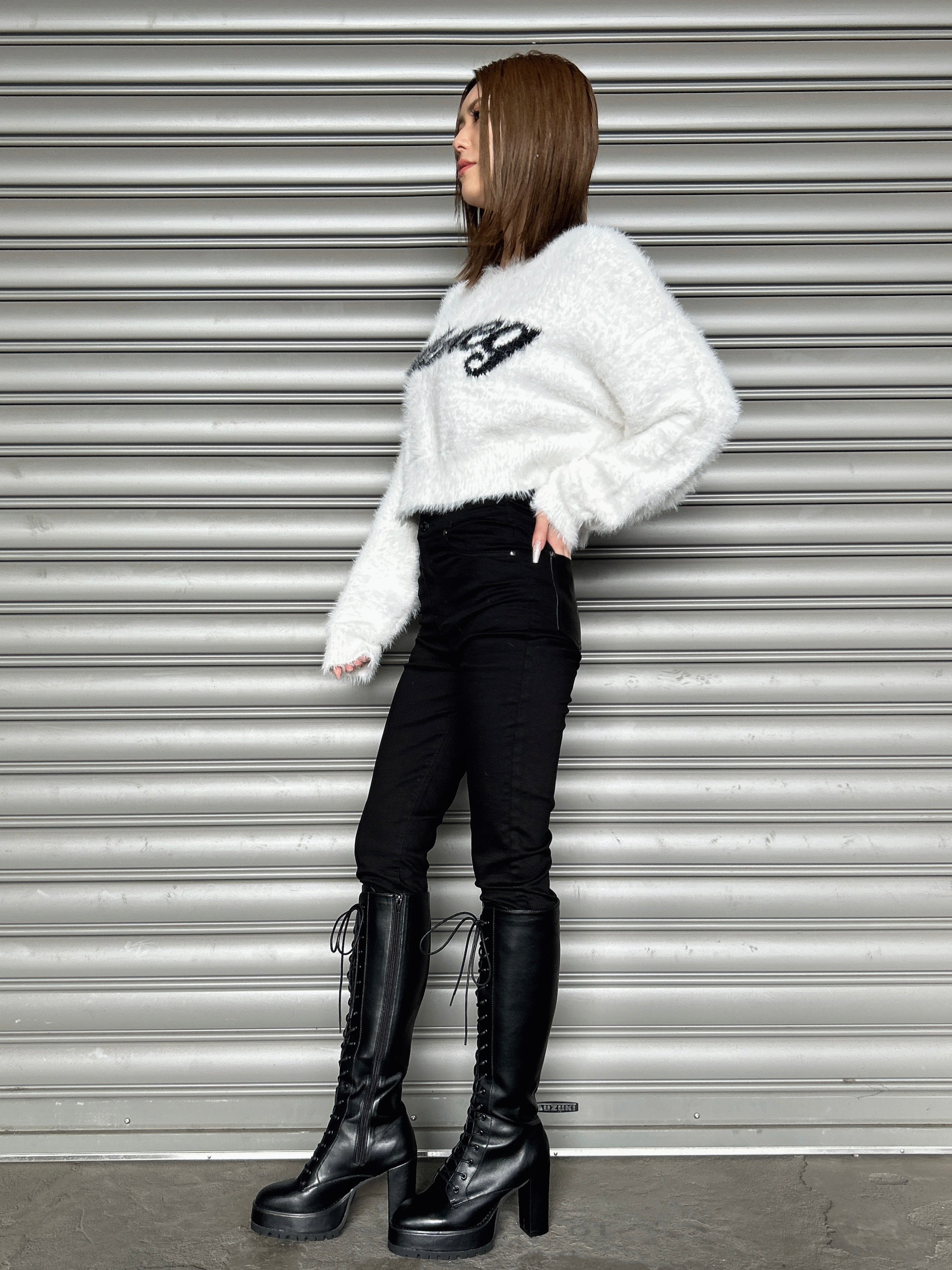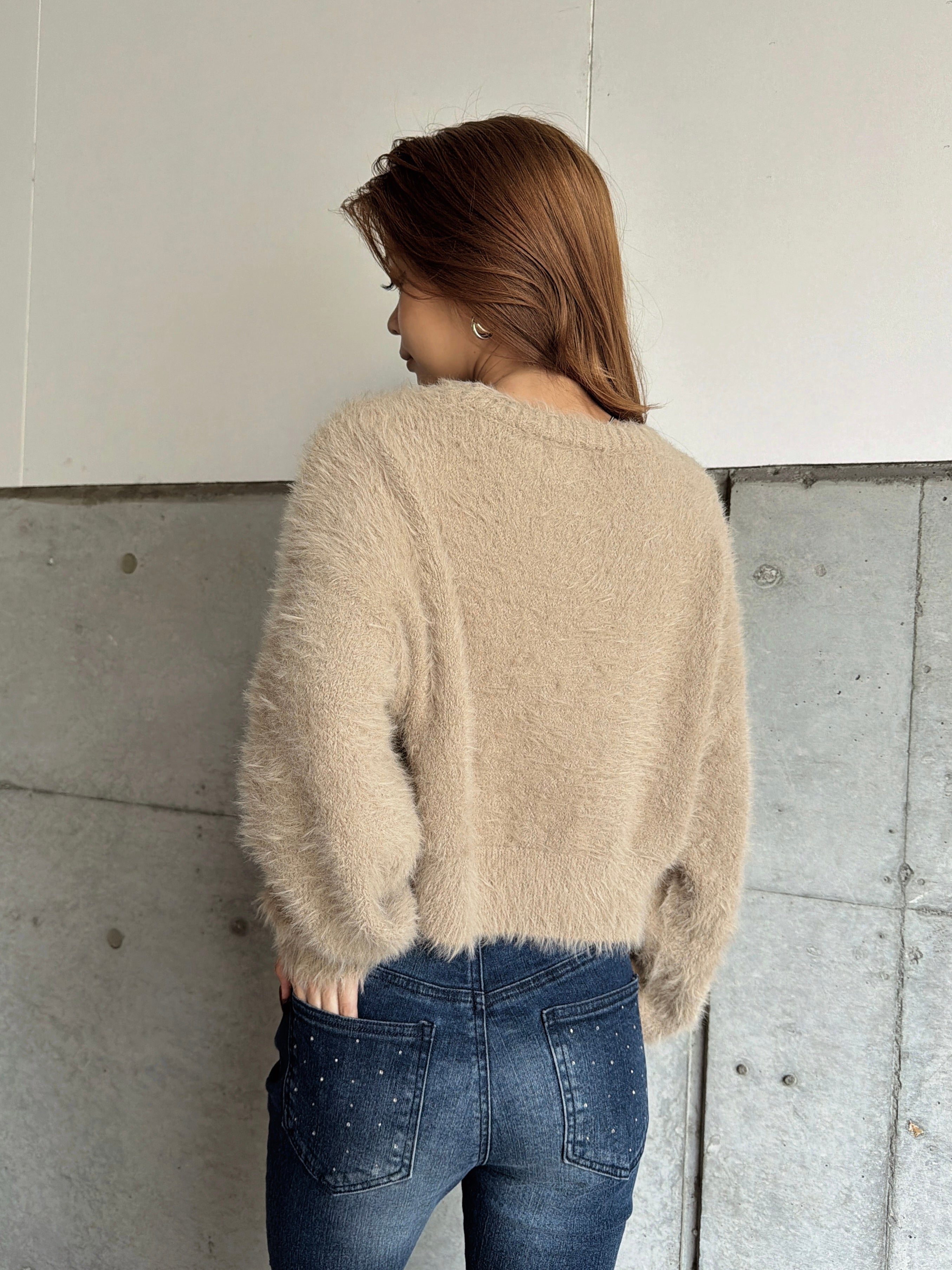 思わず触れたくなるようなシャギーの柔らかな質感が魅力的なニットトップス。フロントロゴ【glameg】はEGOISTのブランドコンセプトであるglam sexyの【glam】とEGOISTの【EG】を掛け合わせた造語にしました。カジュアルになりすぎないよう筆記体ロゴにし、上品で落ち着いた雰囲気に。毛足が長すぎず、程よいボリューム感なので着膨れせずに着用できるのも嬉しいポイント。ショート丈でトレンド感を取り入れつつ、上質なシャギーニット素材で大人っぽく仕上げた一枚です。存在感のあるシャギーニットは一枚で旬なスタイリングが完成するので重宝すること間違いなし。ハイウエストボトムとの相性も良く、スタイルアップ効果抜群です。
