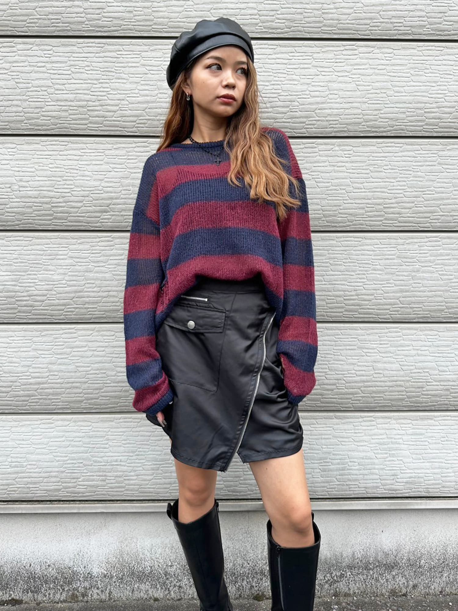 - 2パターン編地デザインニットTOP– EGOIST