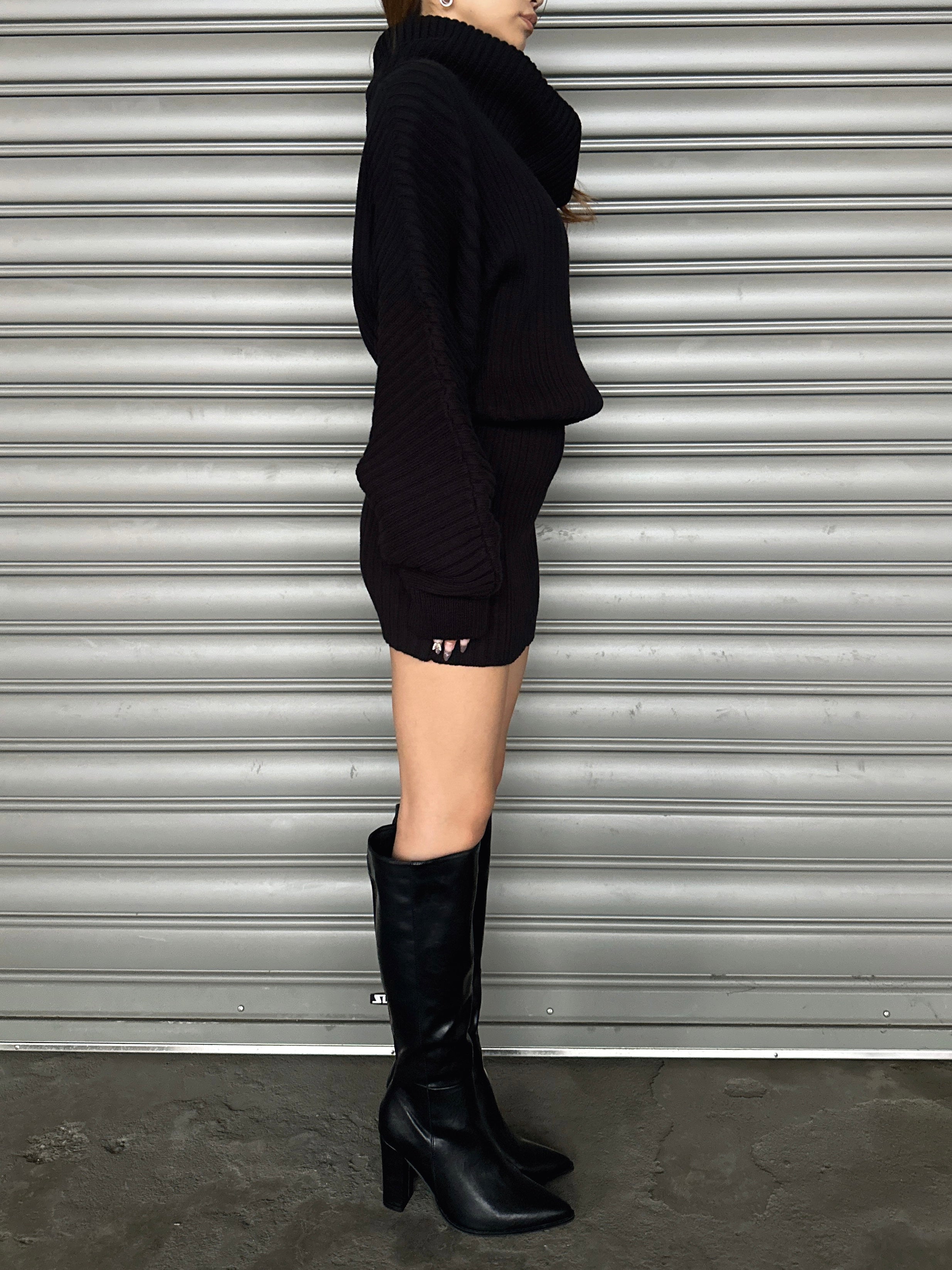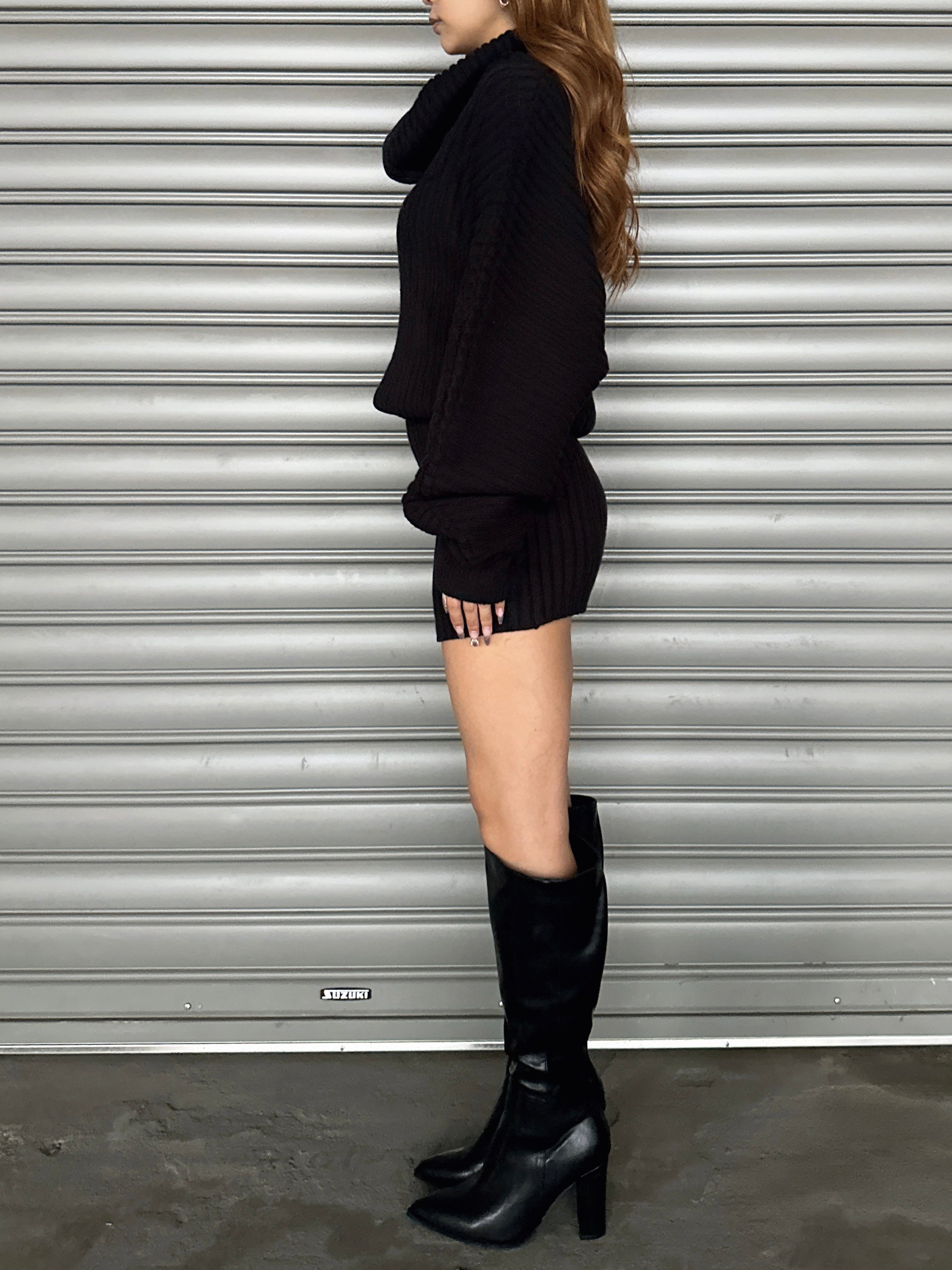 商品説明 EGOIST27周年を記念し、2003年~2008年のSEXY&GLAMAOROUS時代のHIT商品を復刻版として再現しました。折り返しタートルとオフショルの2WAYで着用出来るニットミニワンピース。身頃部分はリブの縦ラインでスリムなボディを強調。厚手ニットなので下着のラインが響きにくいです。袖はドルマンスリーブでボリュームを出しました。タートルとオフショルで表情が全く違うので、シーンに合わせて着回しできるのが嬉しいポイント。起毛感のない綿アクリル糸を使用しているので、毛玉にもなりにくく長持ちします。ウエストにはゴム性の糸を絡ませているのでストンと落ちることなく、ウエストでしっかり固定されブラウジングできるようになっています。BLACKの色味が甘さを主張しすぎず、クールにきめてくれます。強さと可愛らしさを兼ね備えたワンピースはまさにEGOISTらしい1着となっています。小物使いで雰囲気もがらりと変わるので、色んなアイテムとの合わせをお楽しみいただけます。