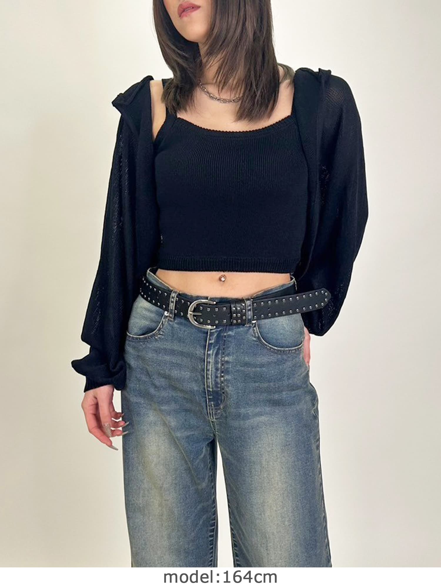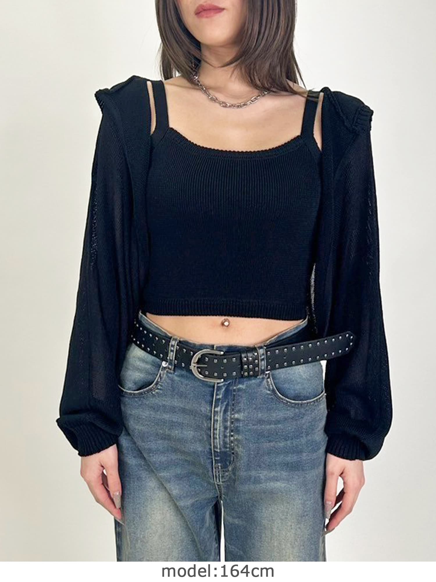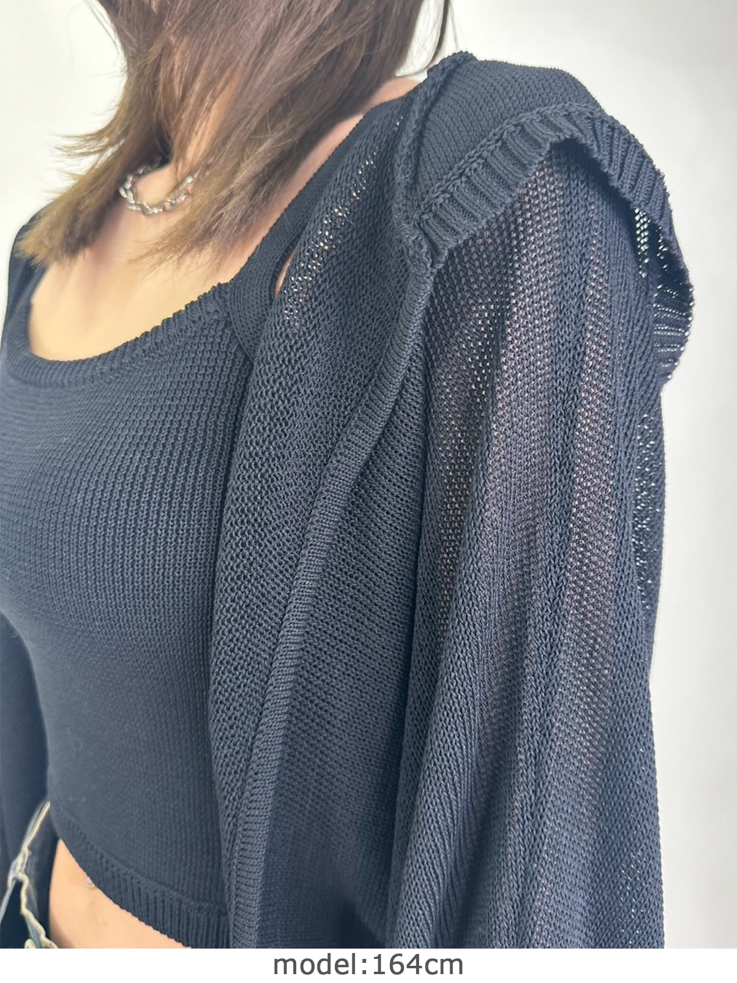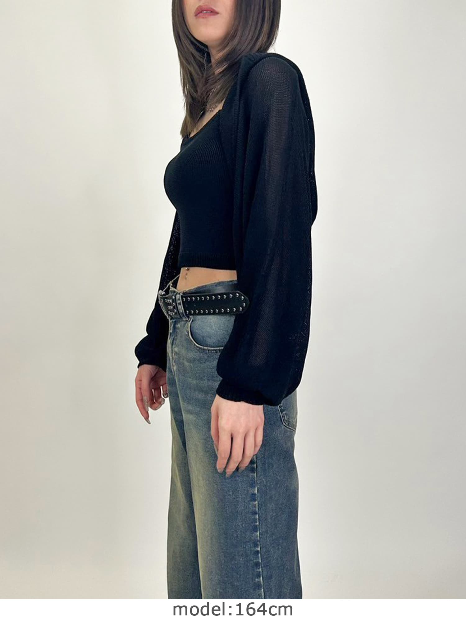 商品説明 清涼感のあるニットを使用した、フード付ニットボレロ。