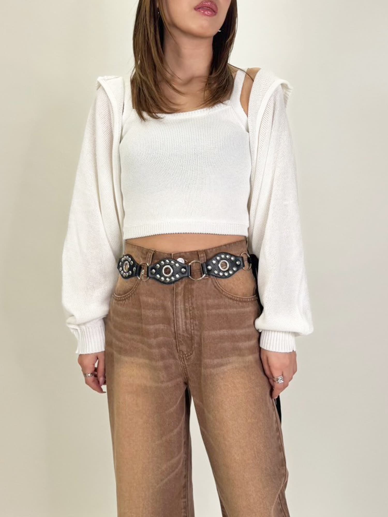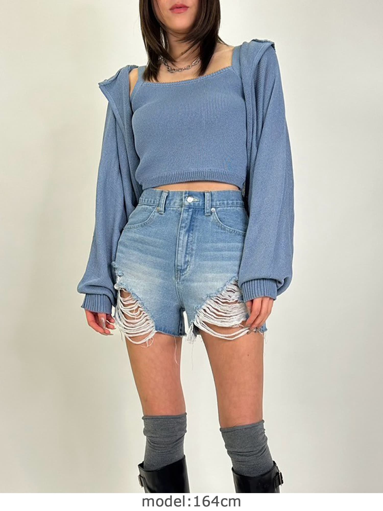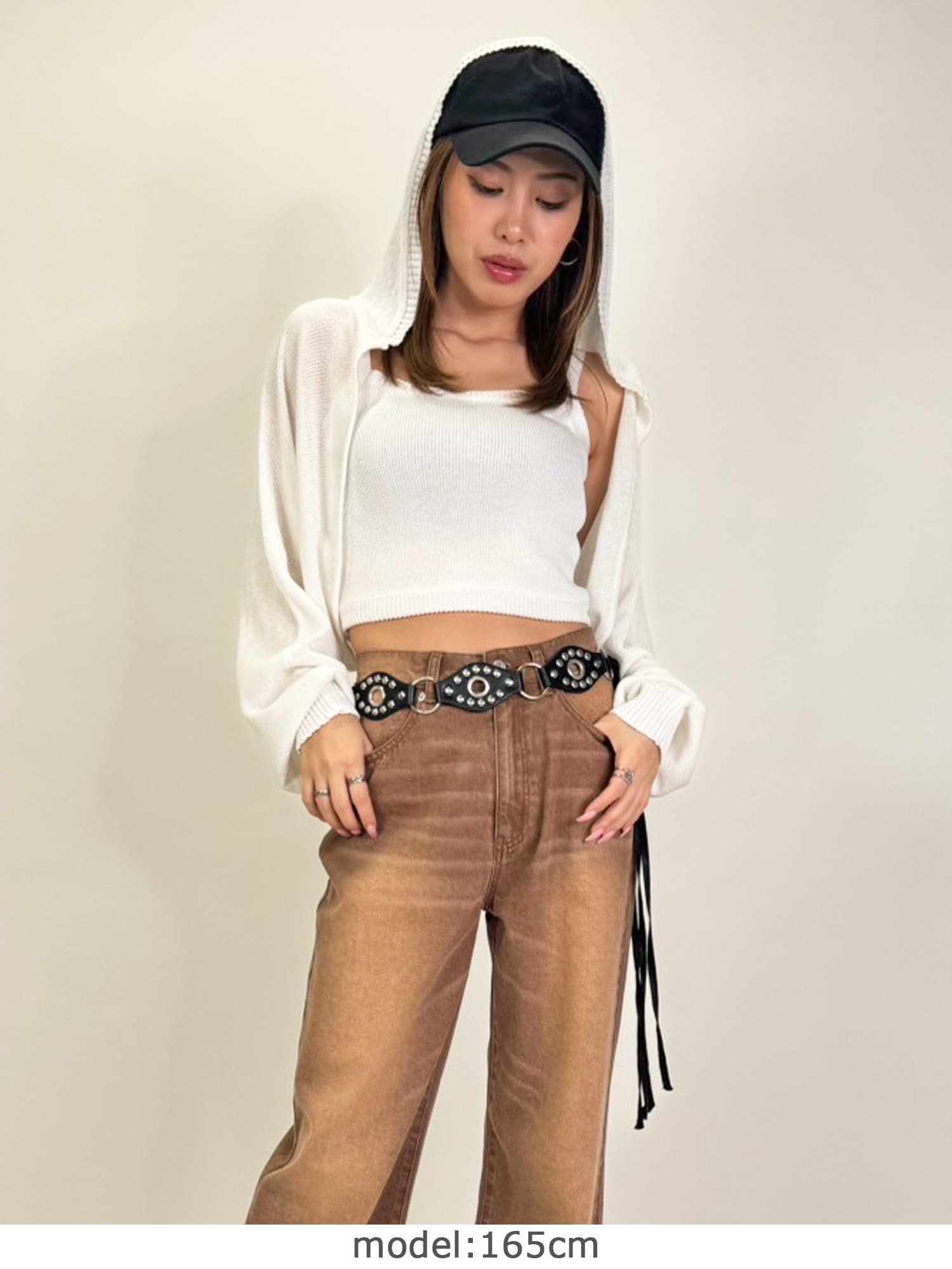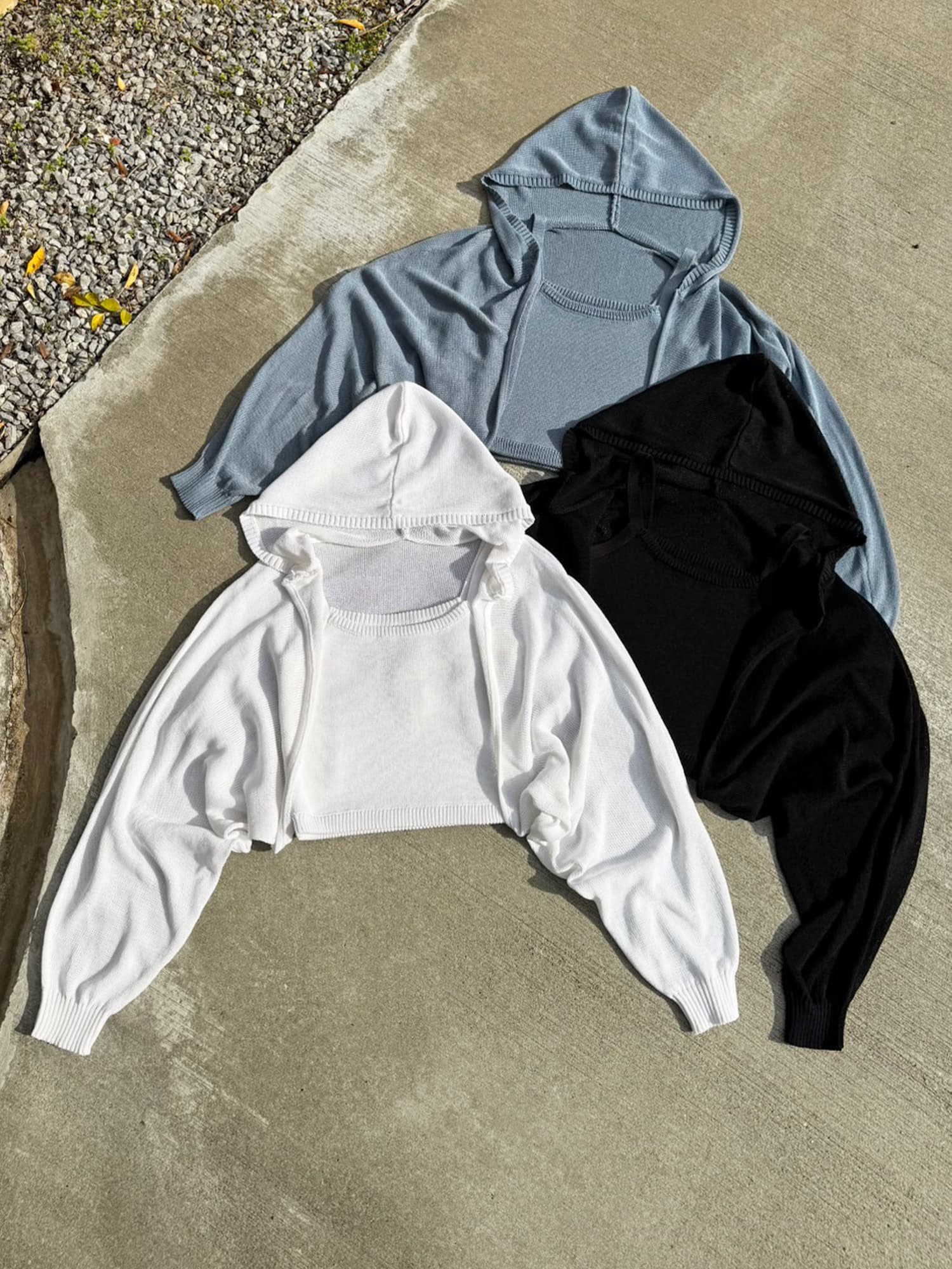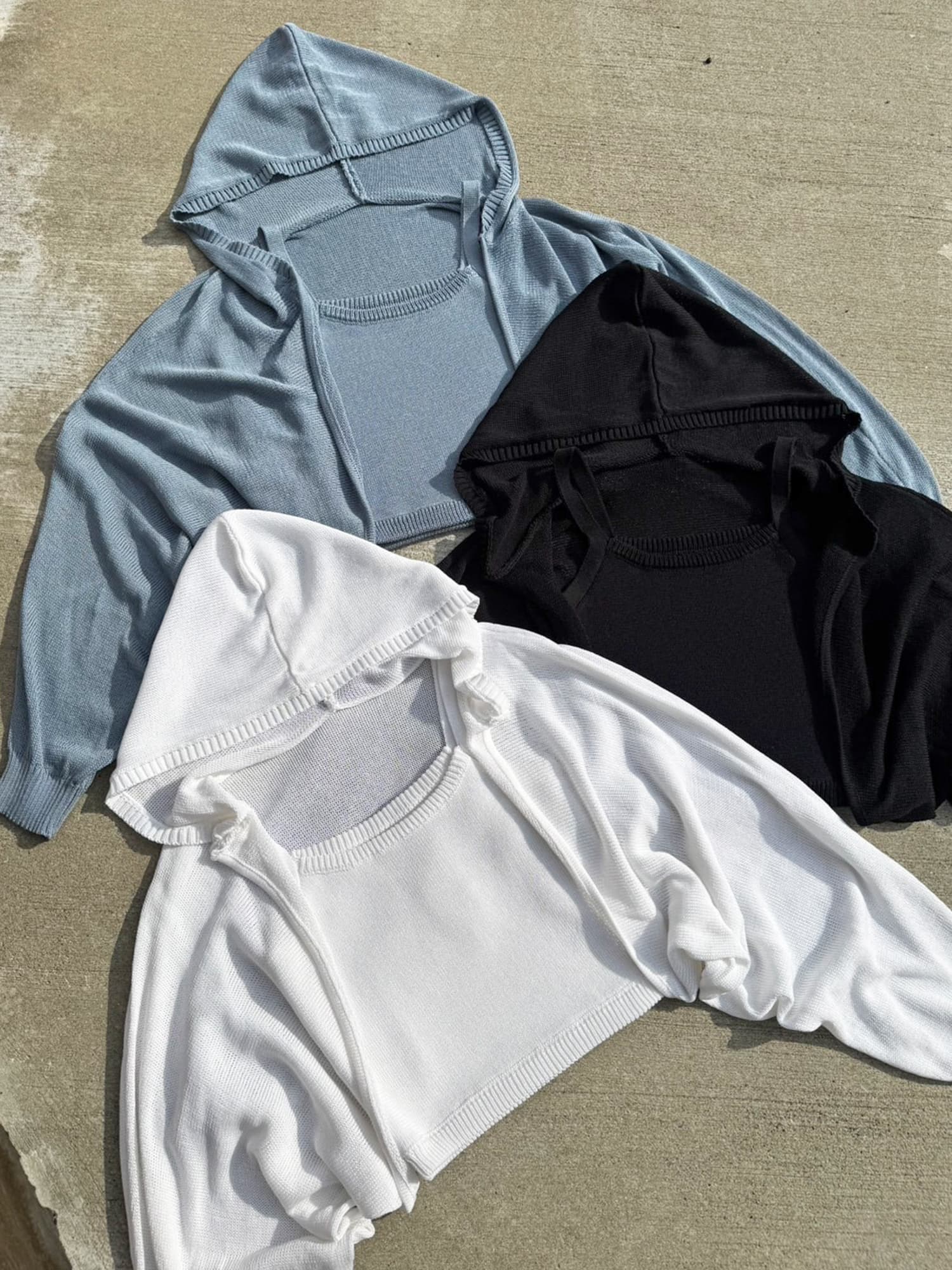 商品説明 清涼感のあるニットを使用した、フード付ニットボレロ。