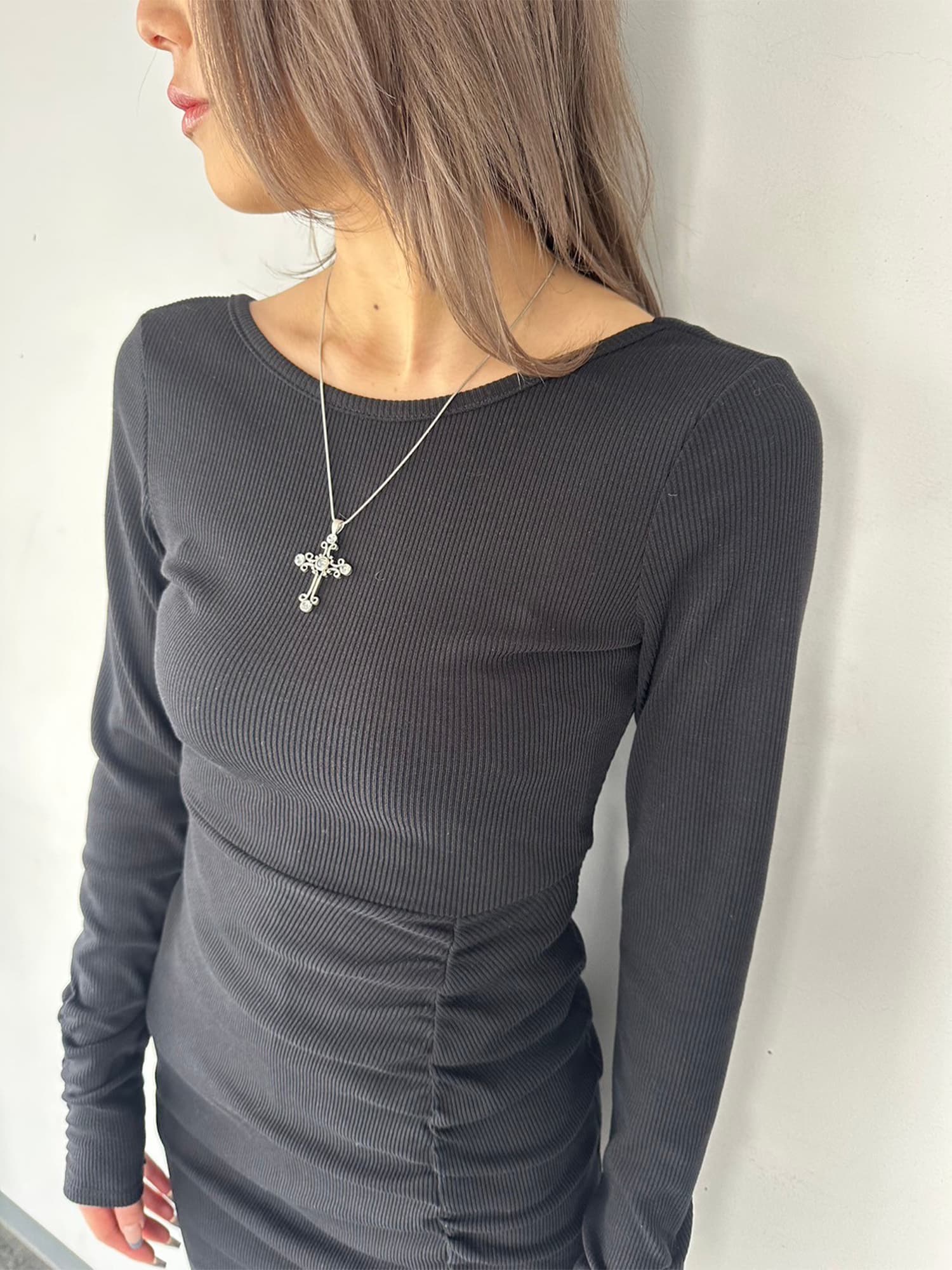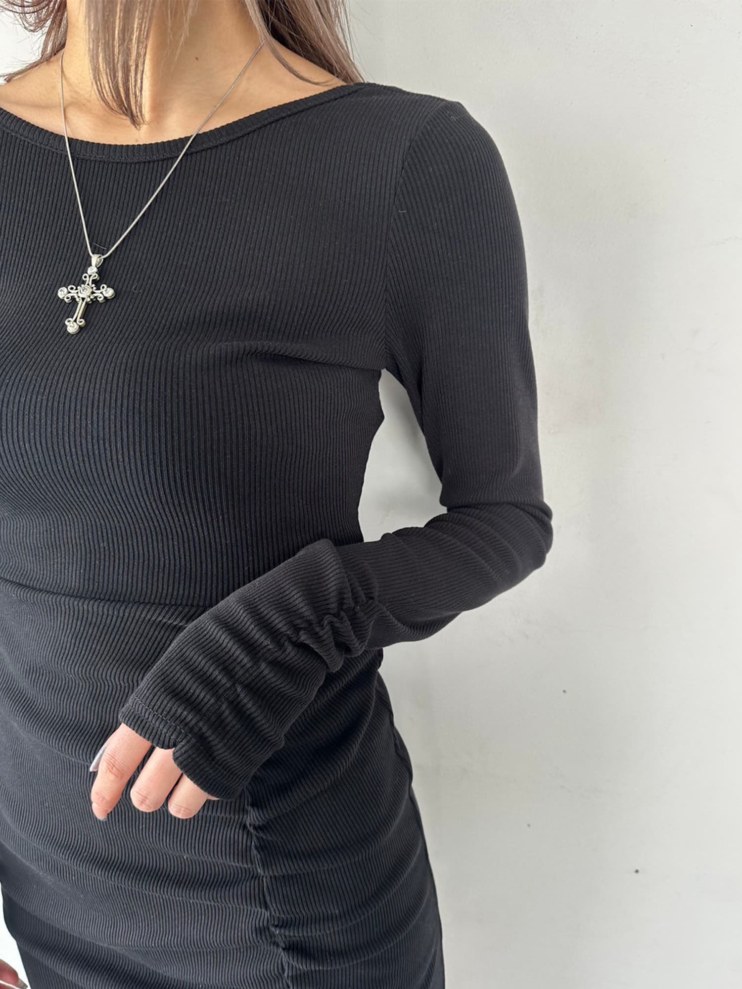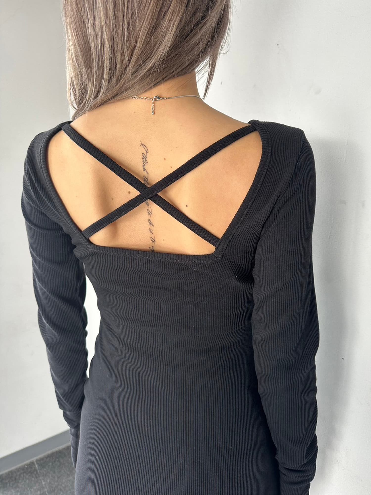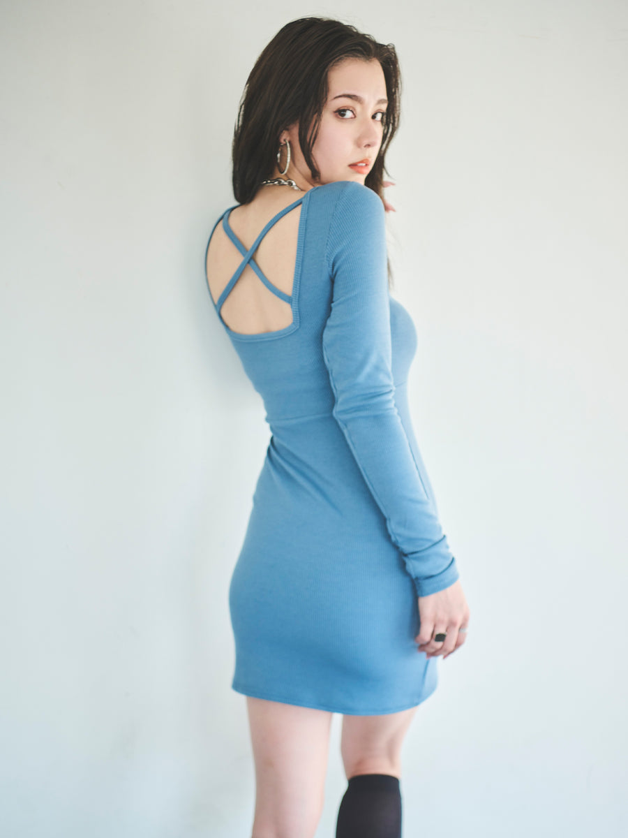 - バックオープンニットワンピース
