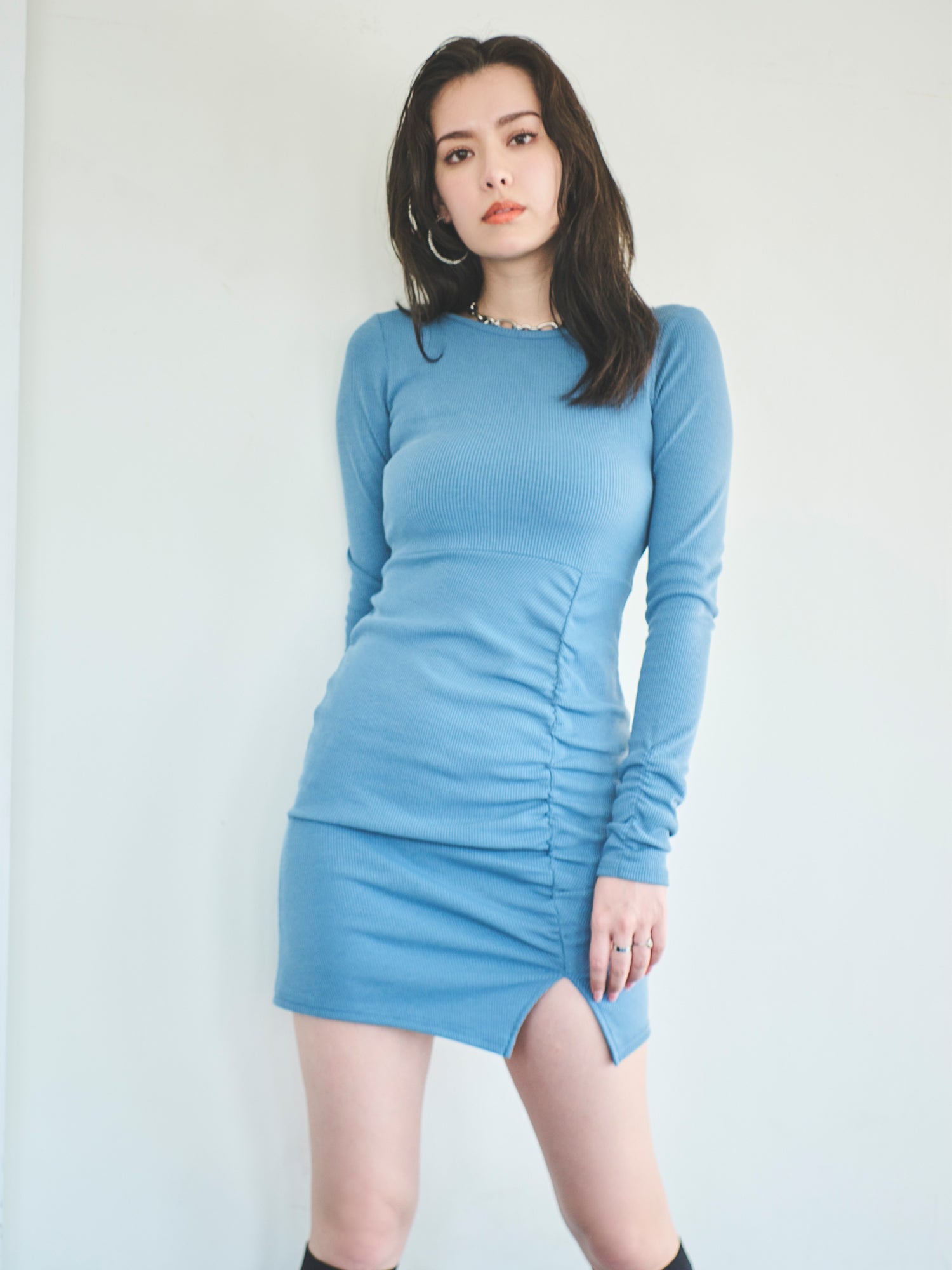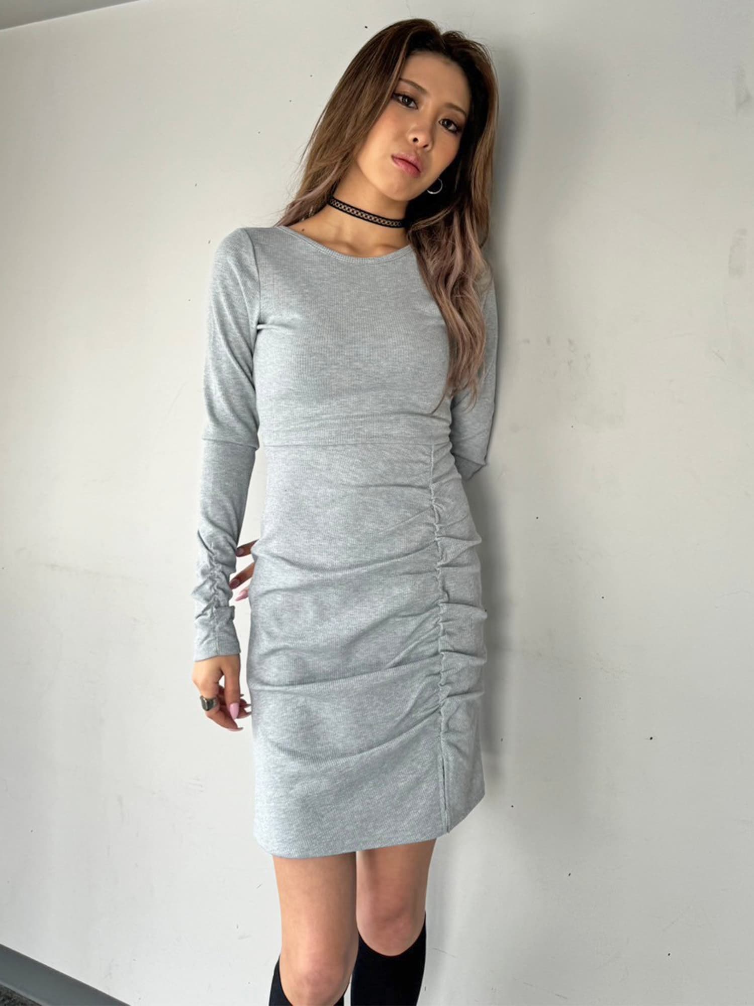 - ギャザーリブミニワンピース