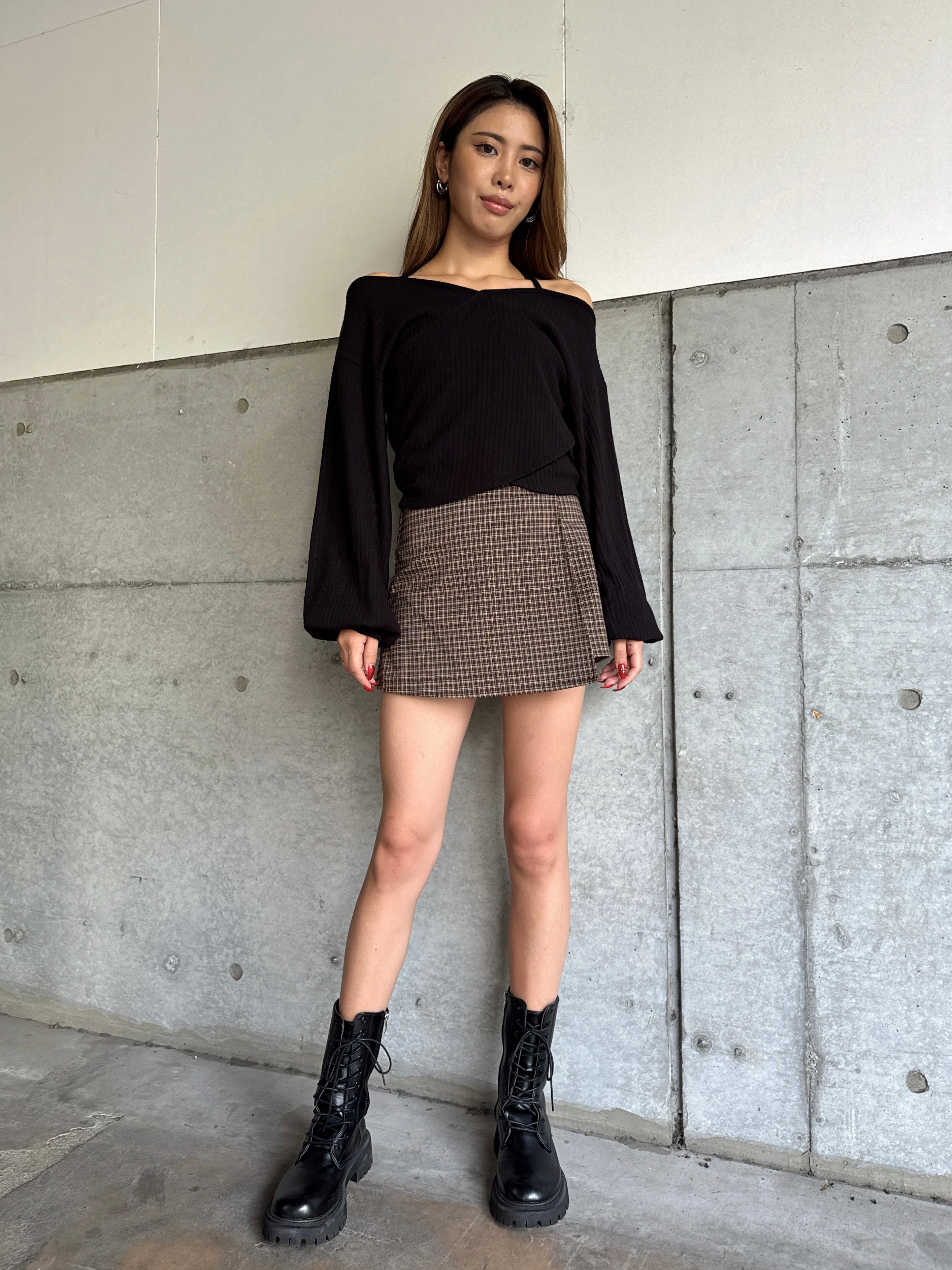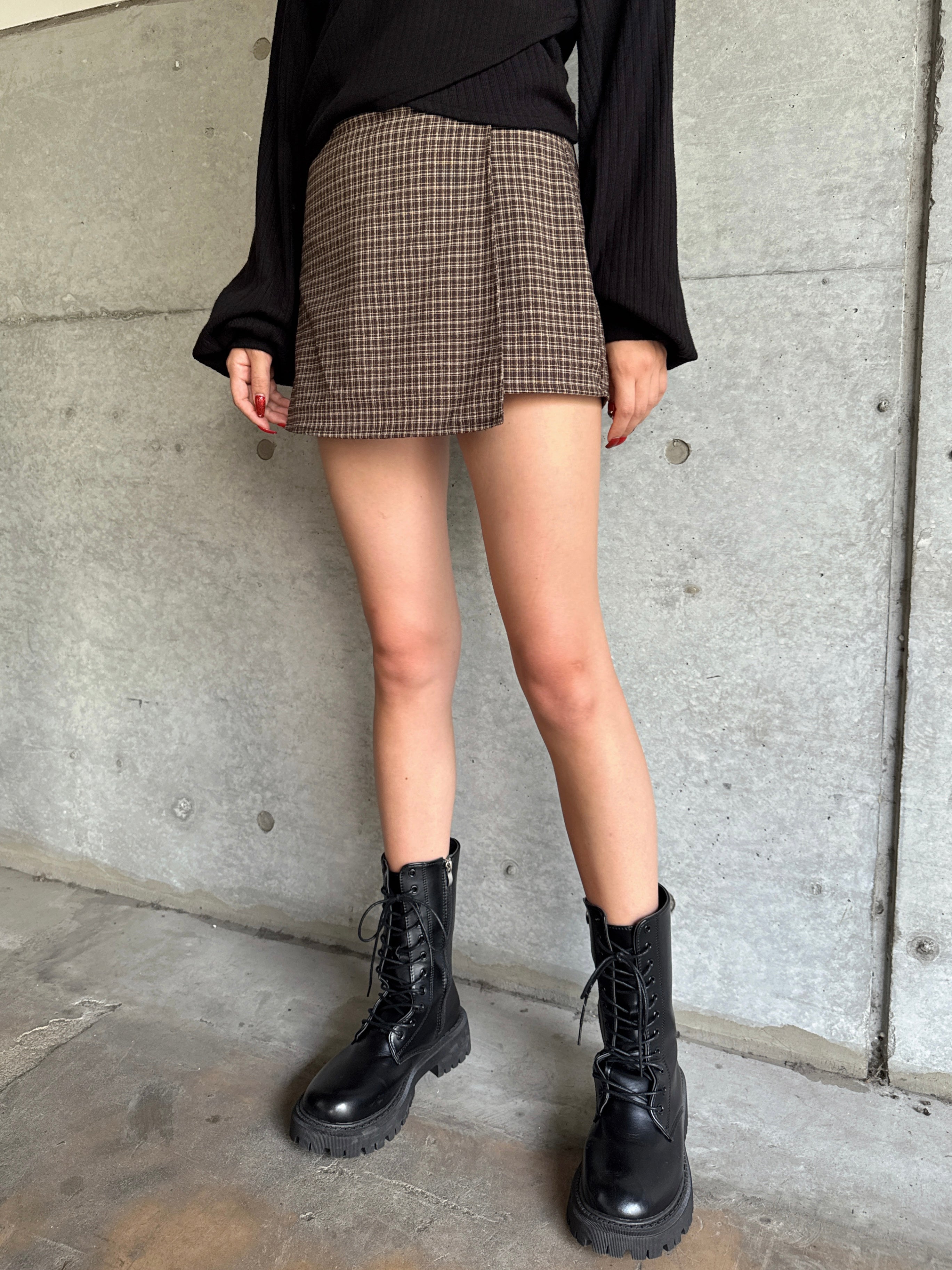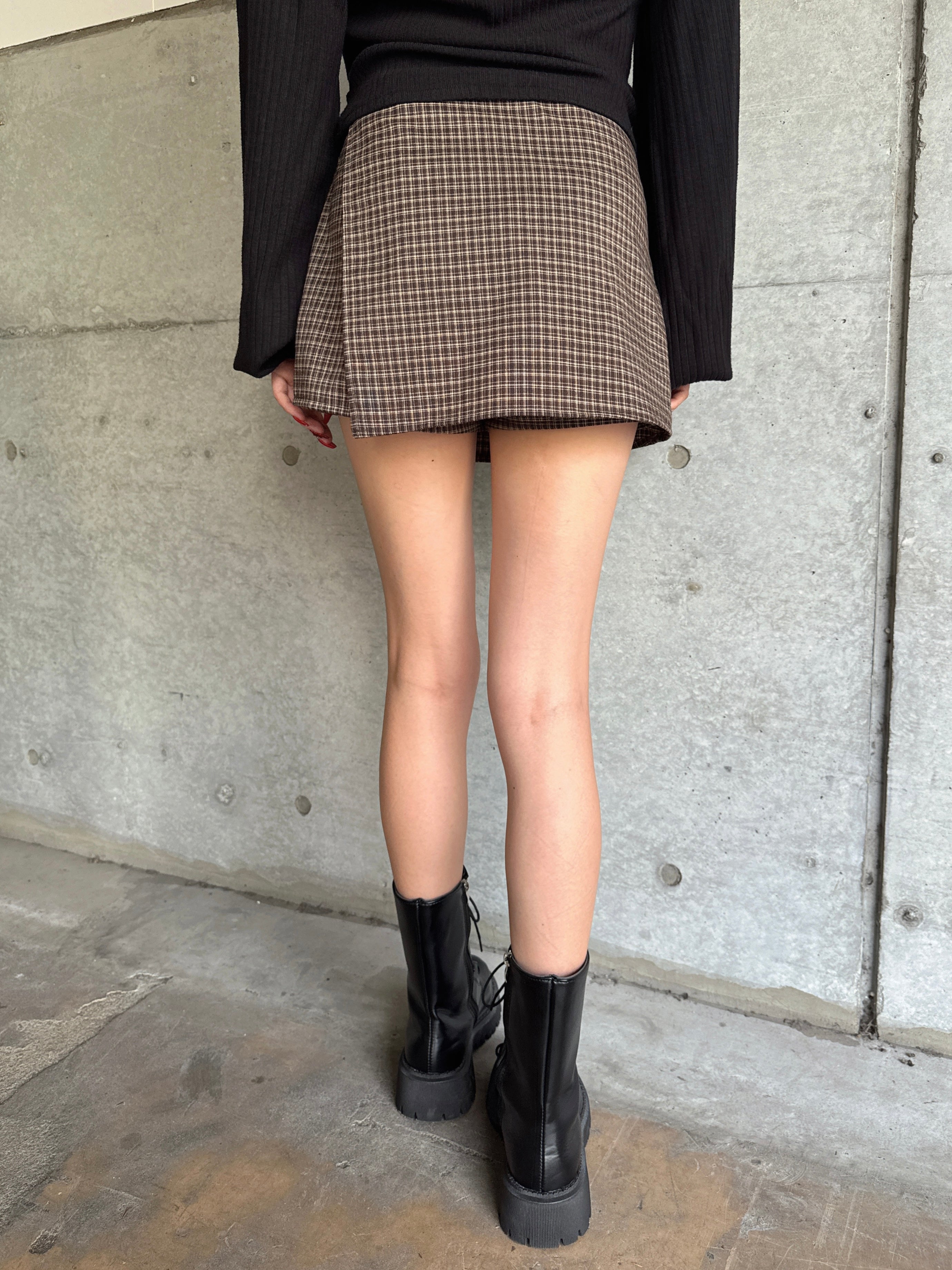 - ラップデザインチェックタイトミニスカート– EGOIST