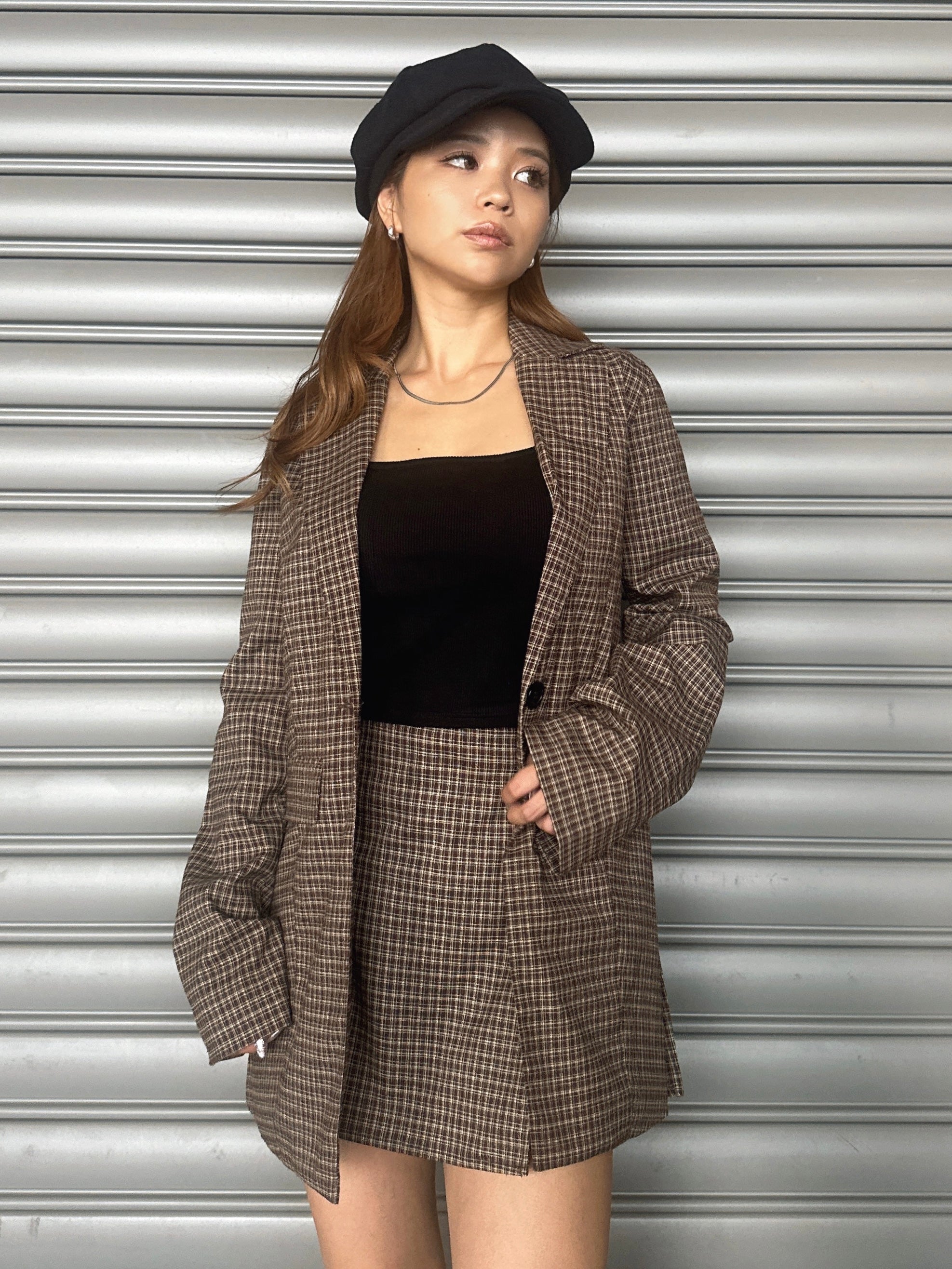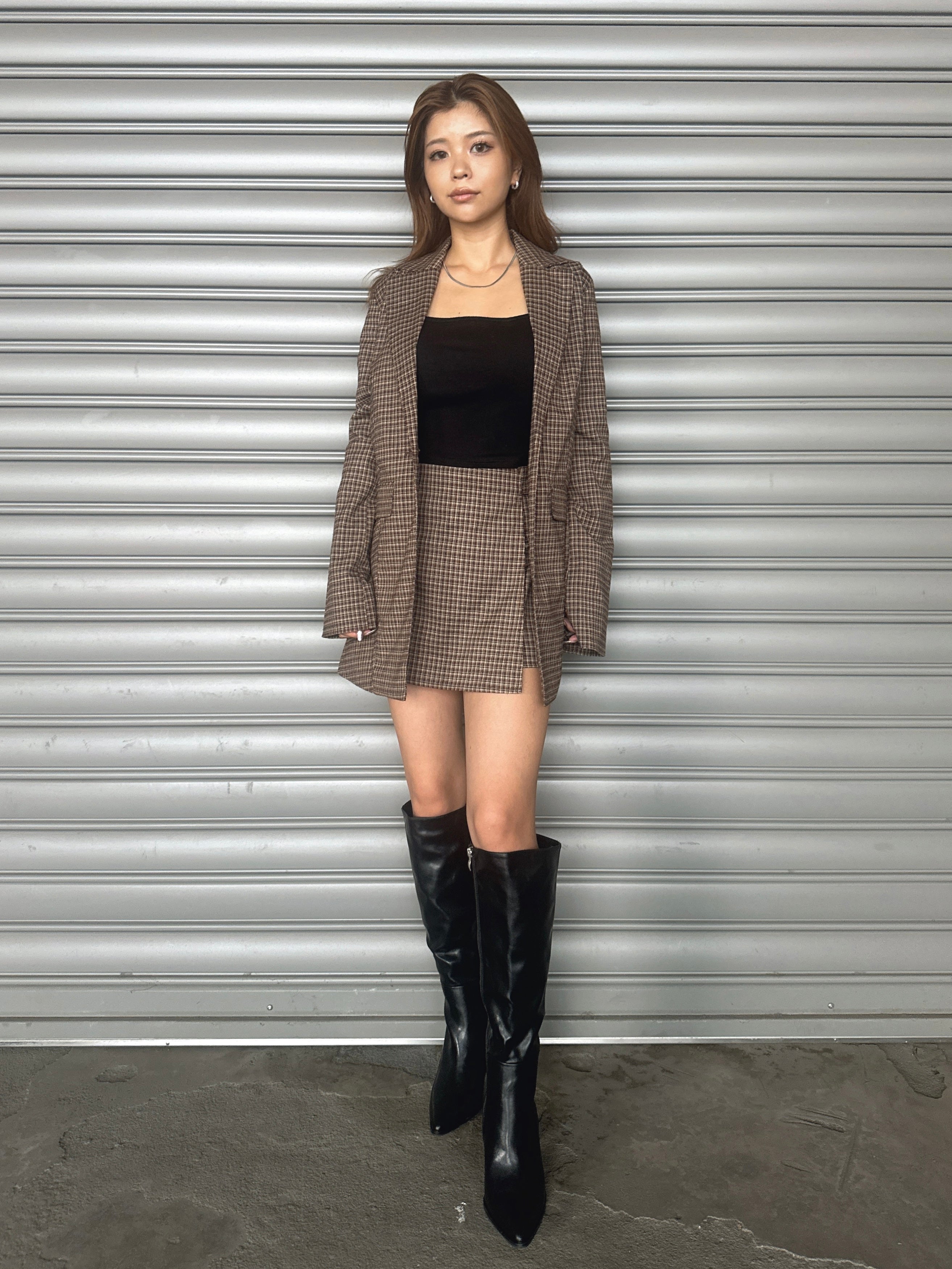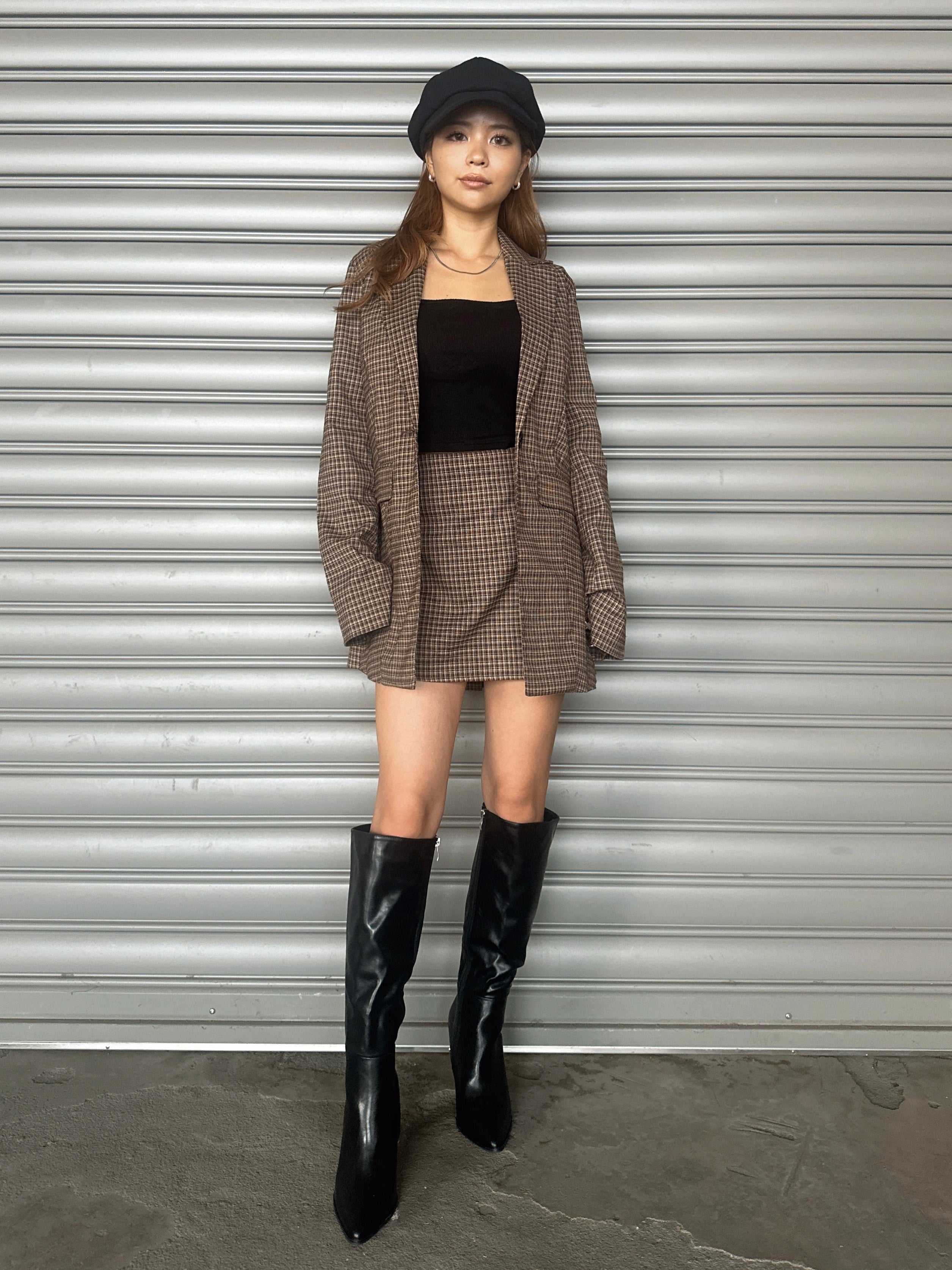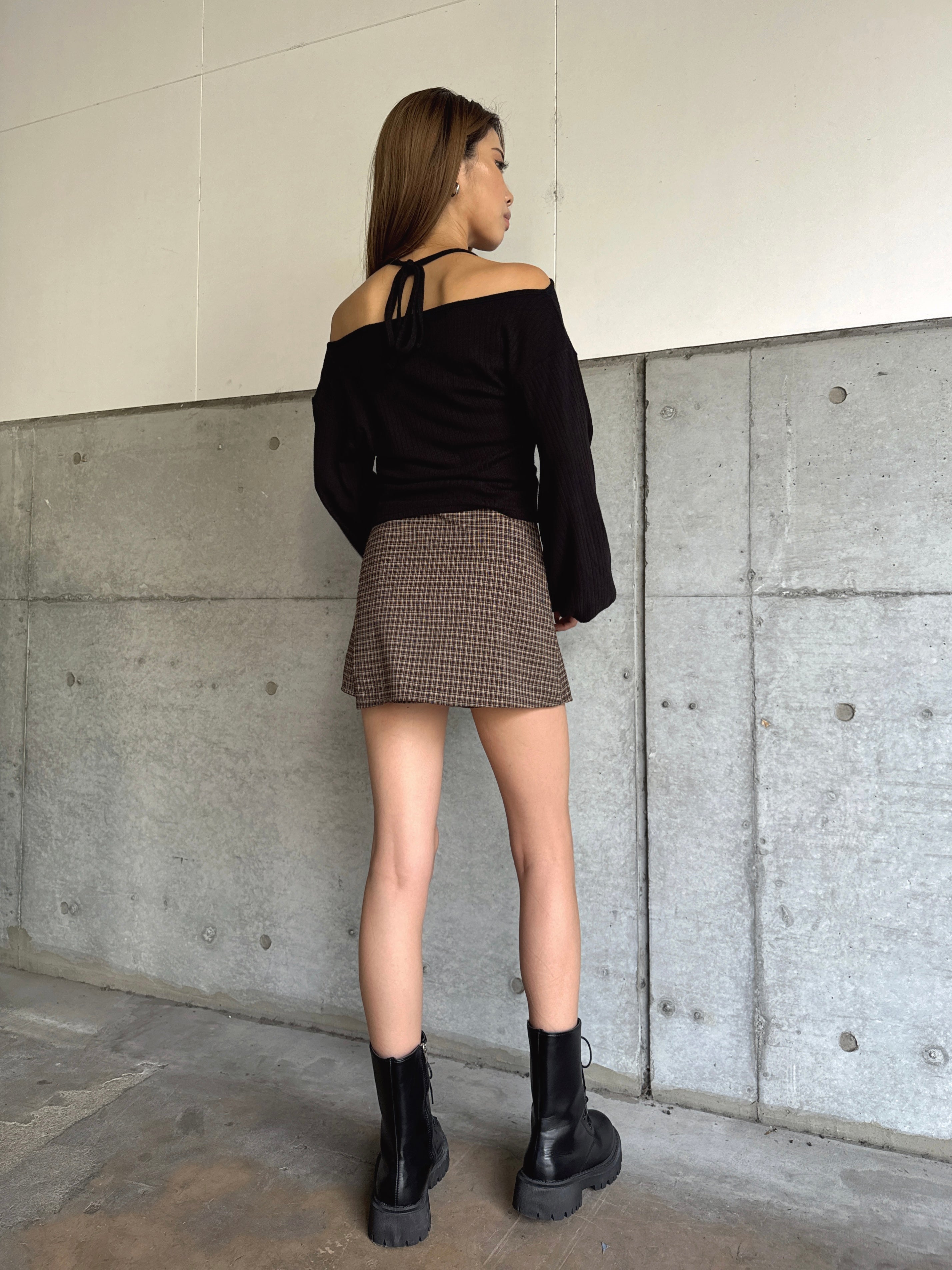 - ラップデザインチェックタイトミニスカート– EGOIST