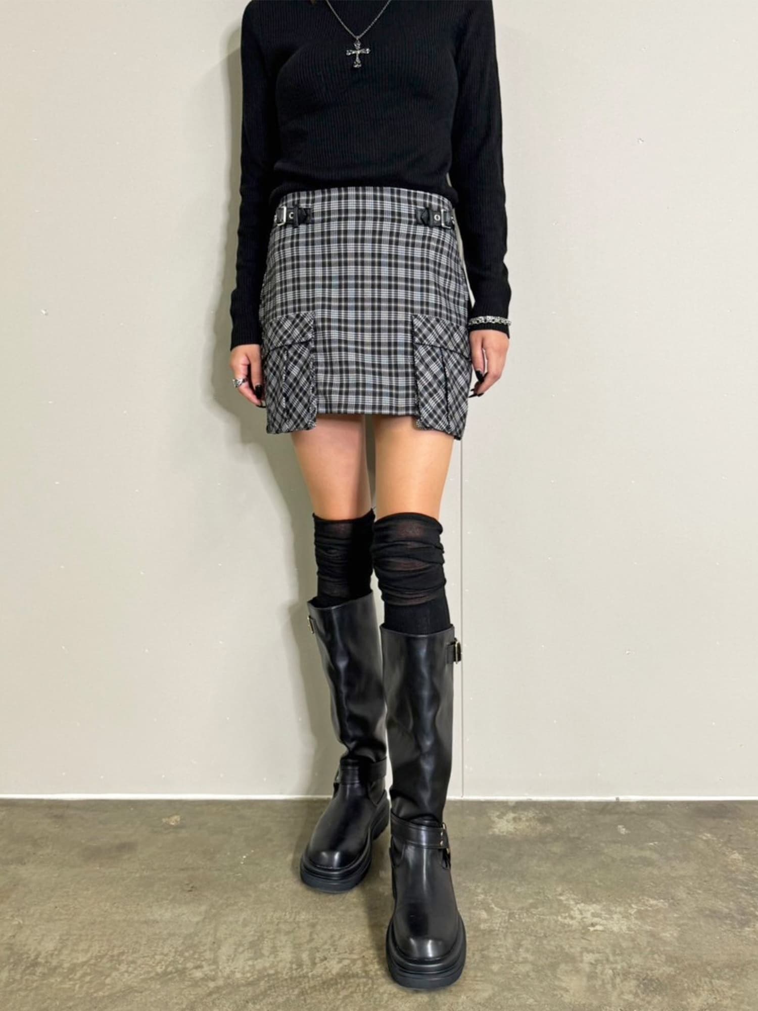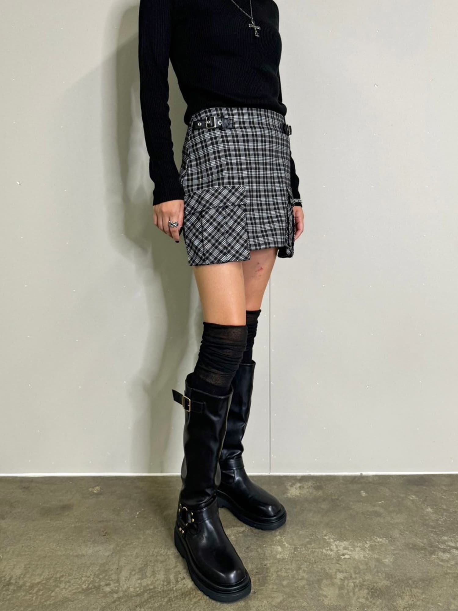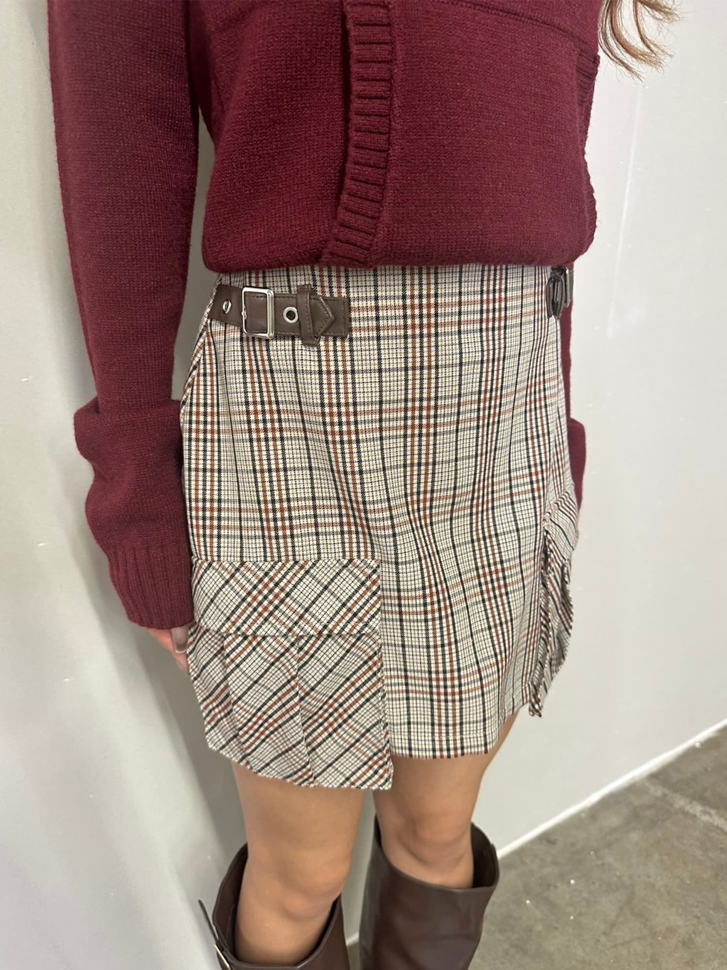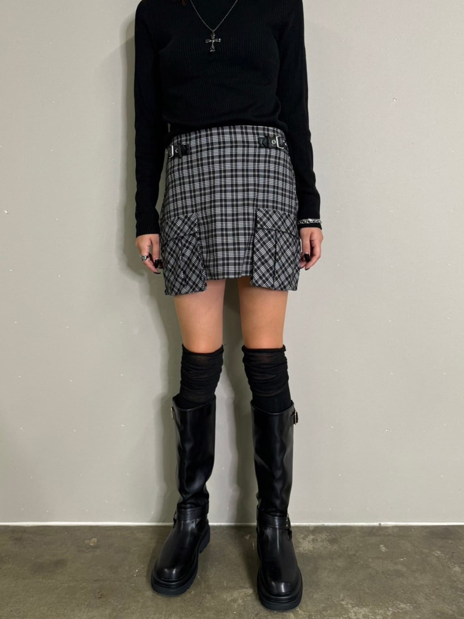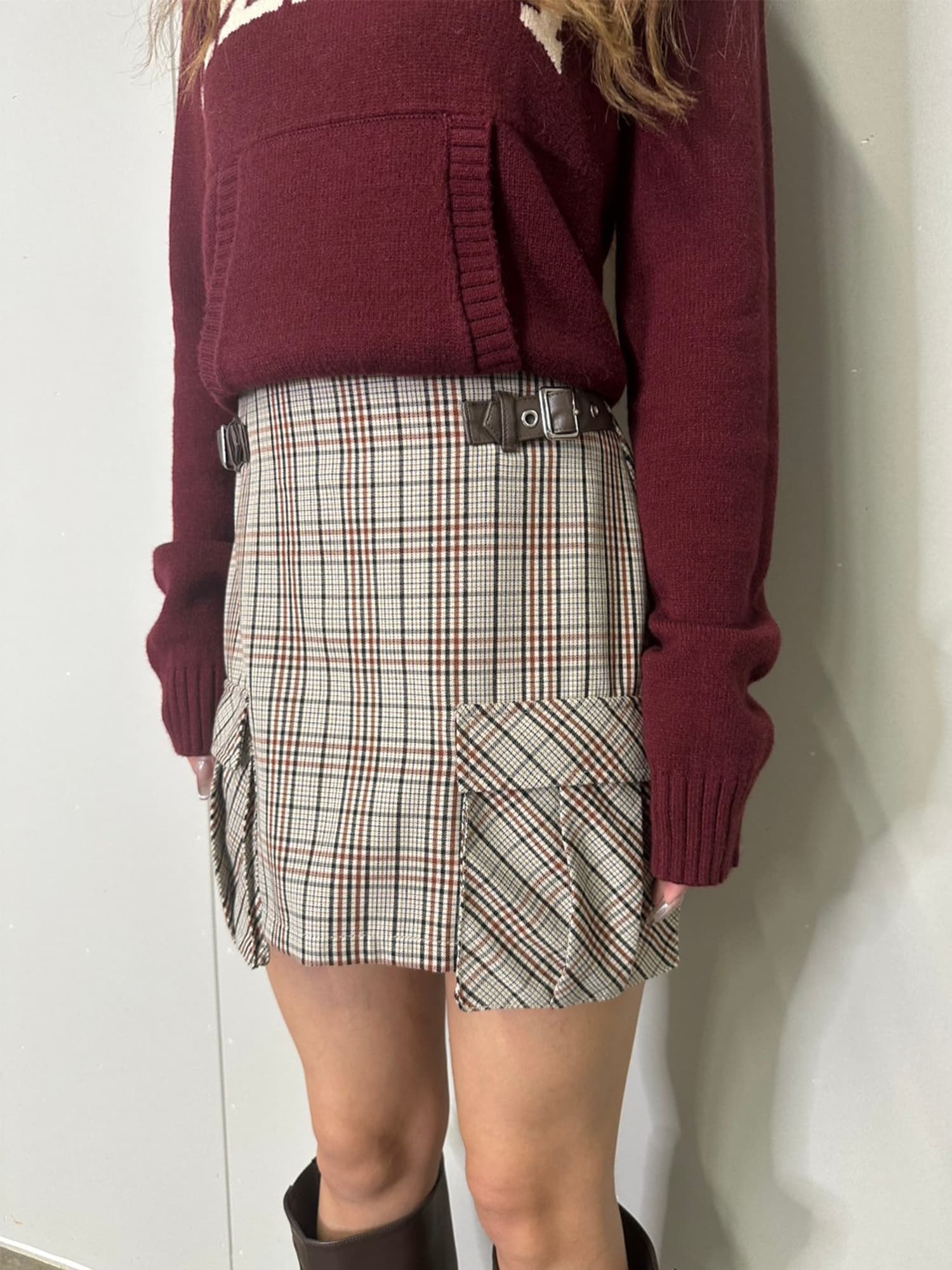 - ラップデザインチェックタイトミニスカート– EGOIST